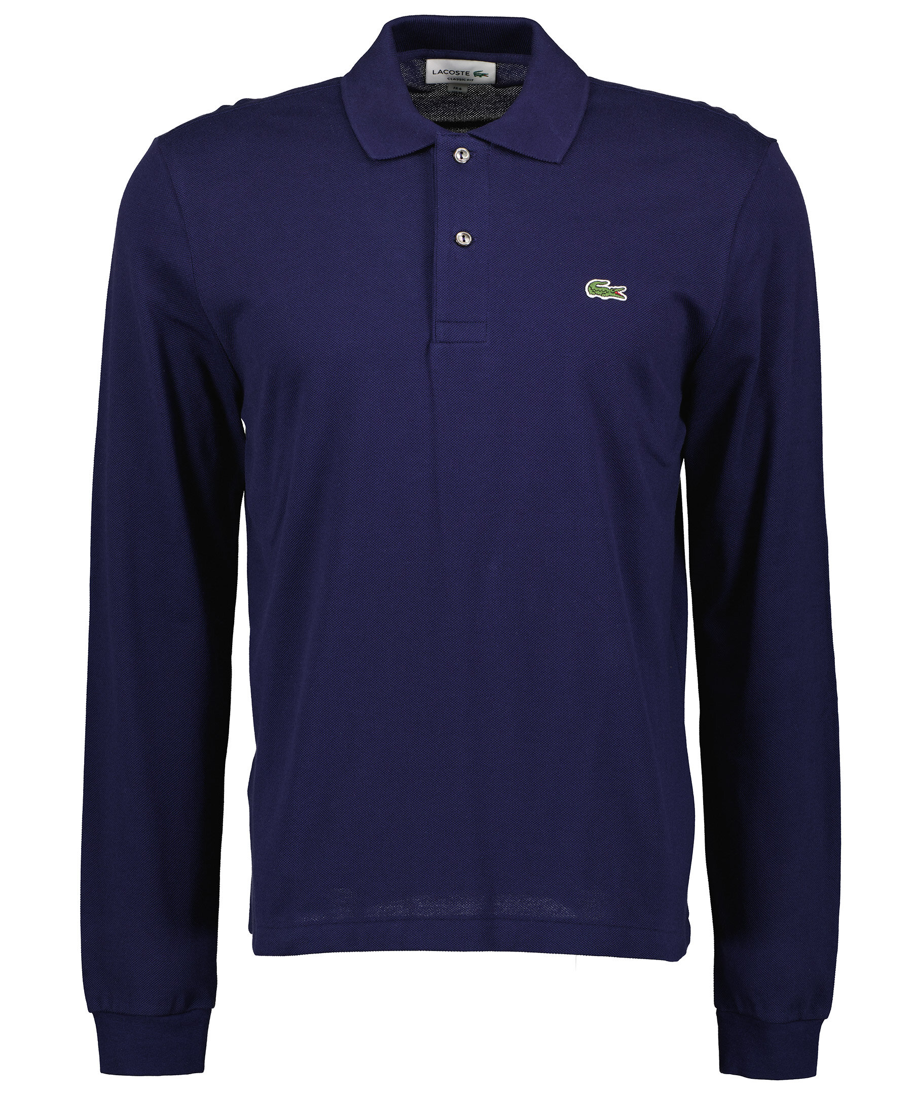 Mörkblå långärmad Pikétröja med Lacoste logga broderad på bröstet, från Lacoste. Tillverkad i 100% Bomull.