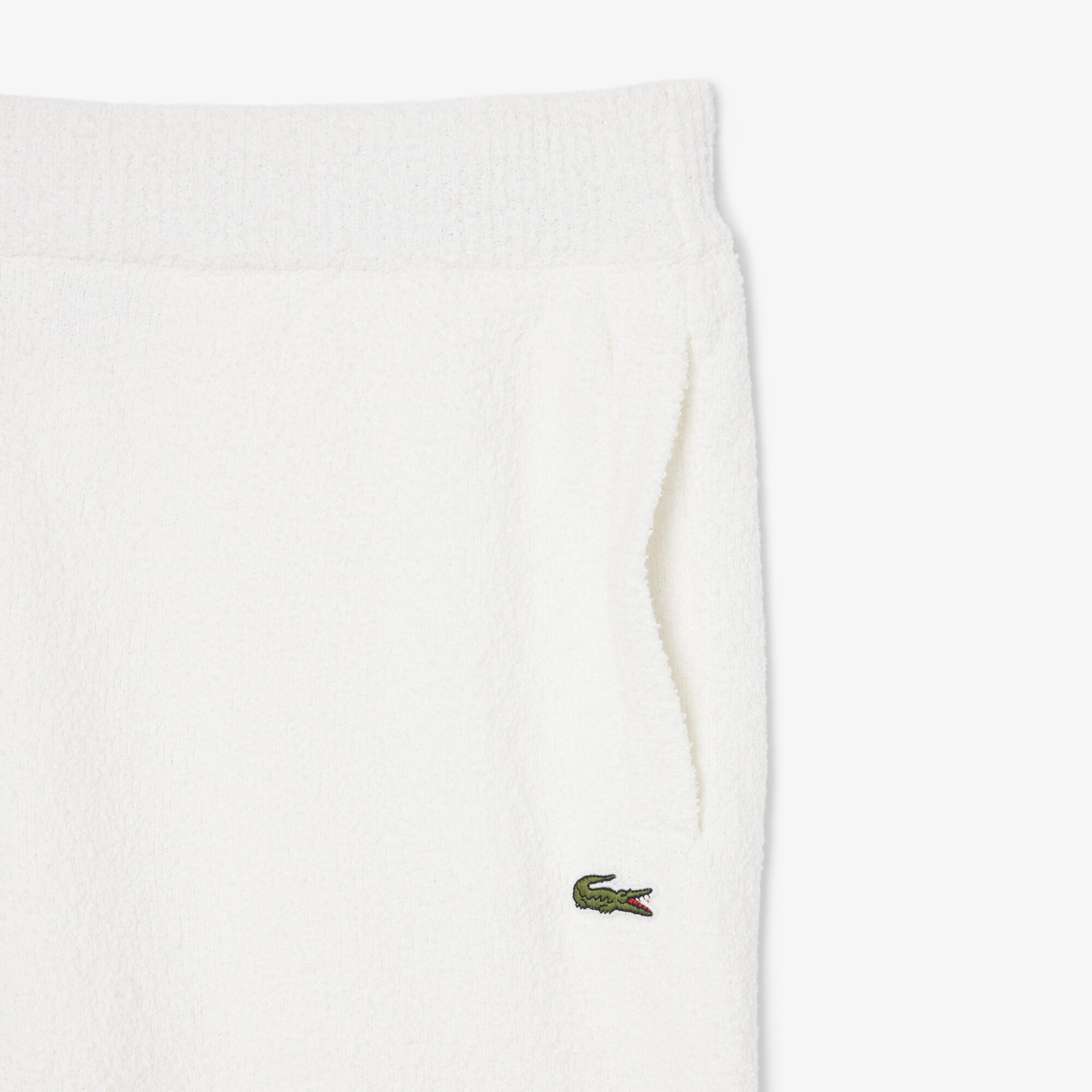 Shorts från Lacoste i mjuk, texturerad boucléstickning med en avslappnad passform. Shortsen har elastisk midja med dragsko, ribbade avslut, sidofickor samt en påsydd broderad krokodil på benet.