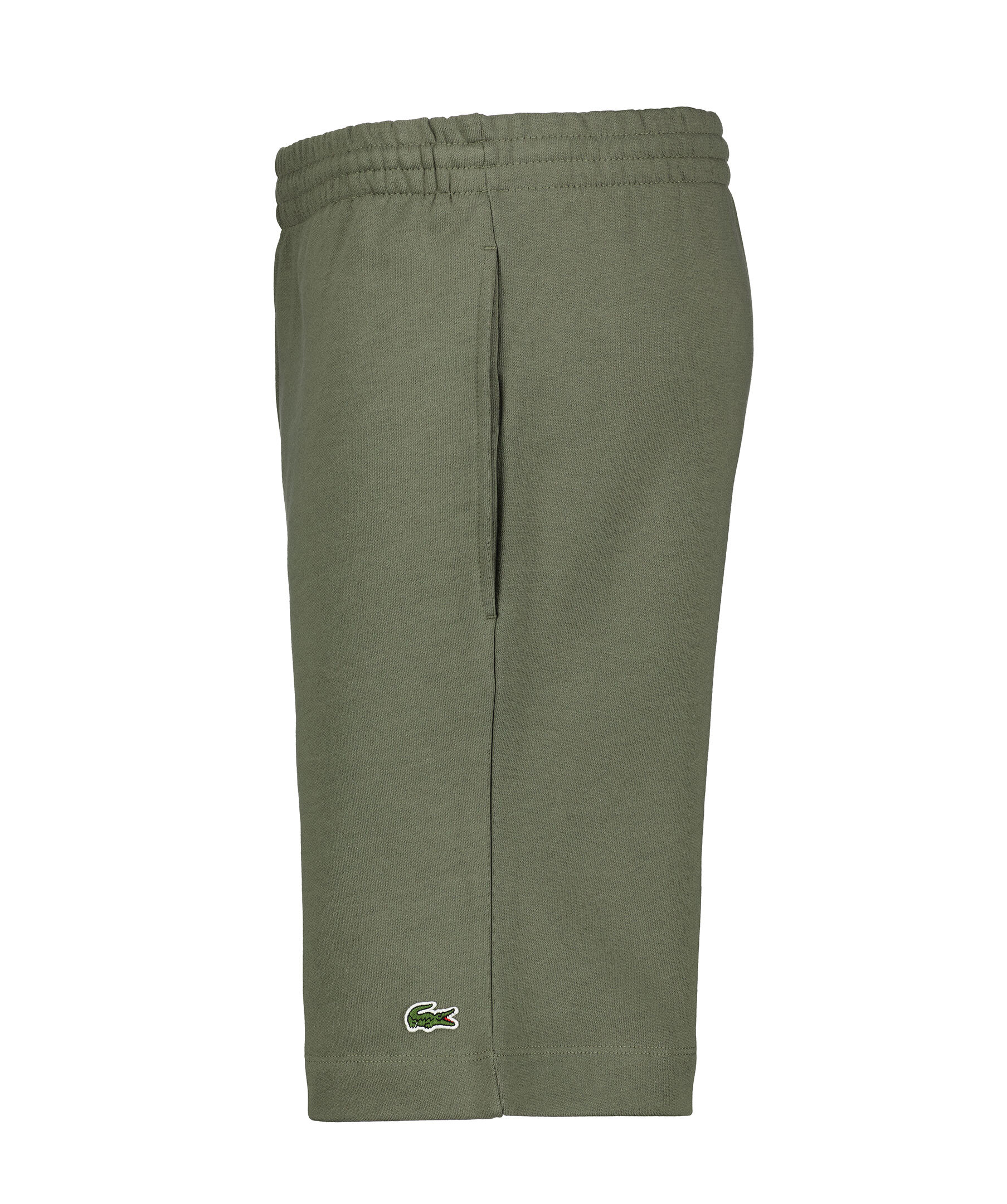 Mossgröna mjukisbyxor från Lacoste. Dragsko i midjan. Två fickor framtill, en bakficka. Broderad patch på vänster ben. Tillverkad i bomullsblandning.