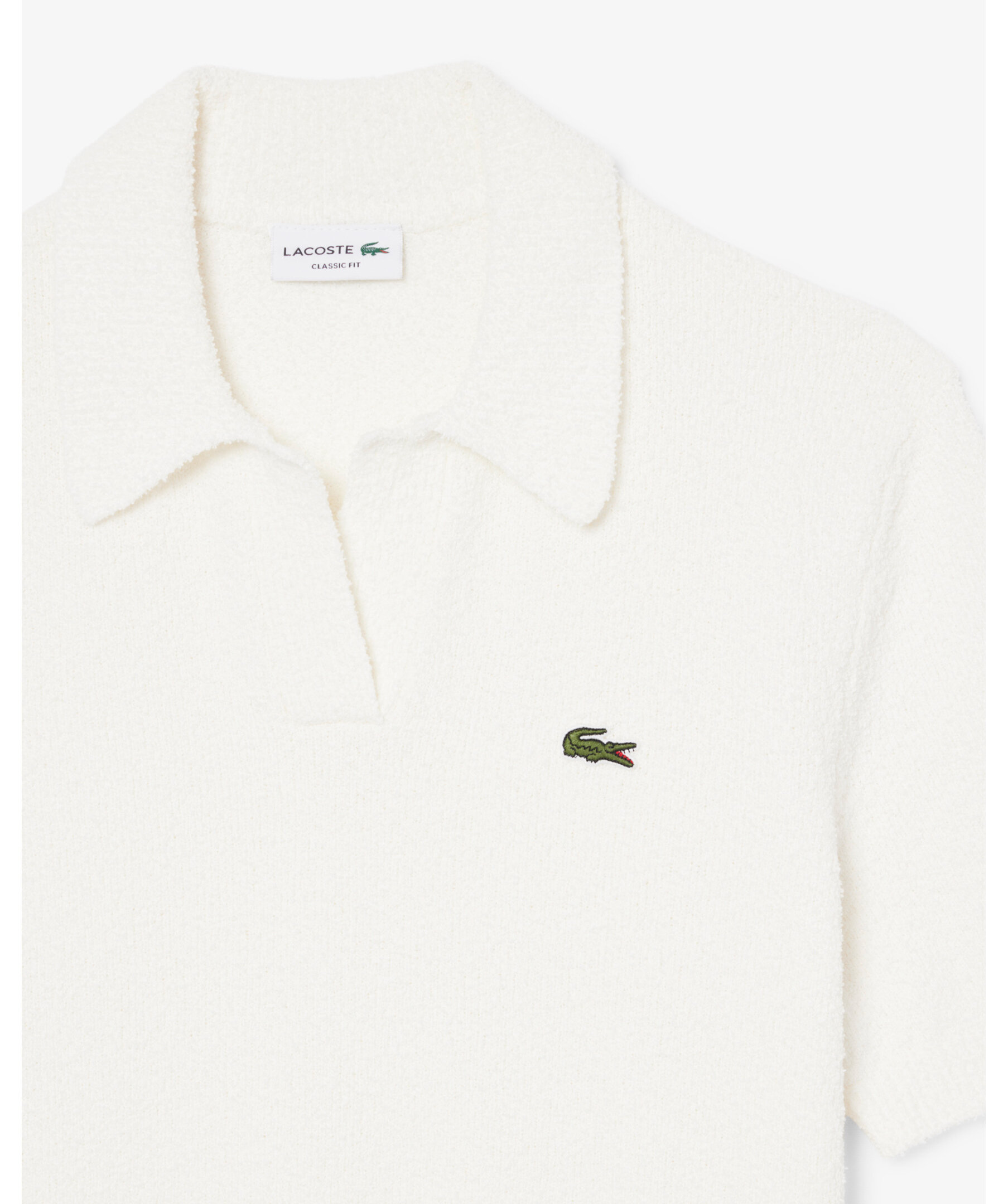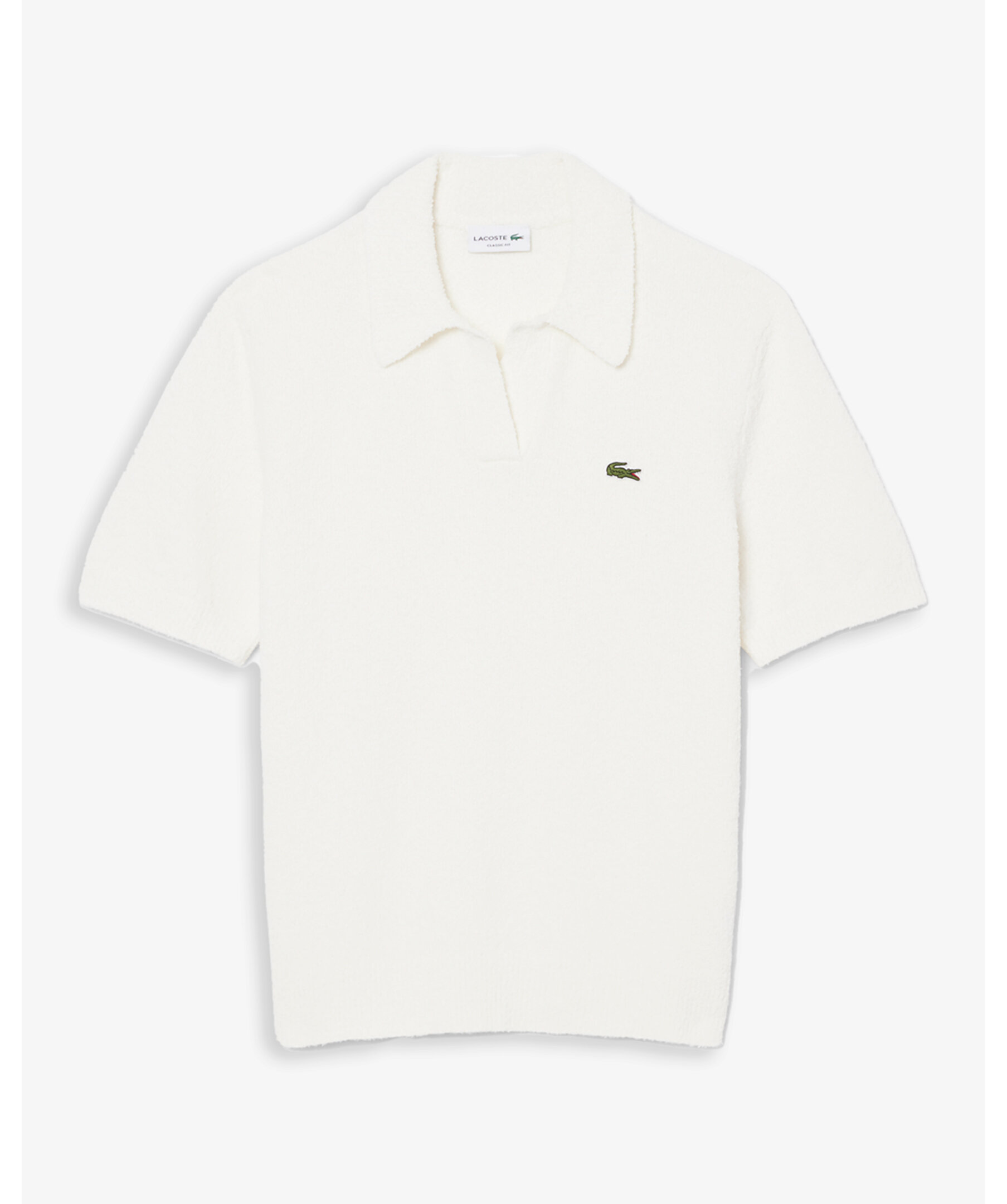 Pikétröja från Lacoste i mjuk, texturerad boucléstickning i classic fit. Tröjan har öppen krage, ribbade avslut vid hals, midja och ärmslut. Designen fulländas med den påsydda, broderade krokodilen på bröstet.