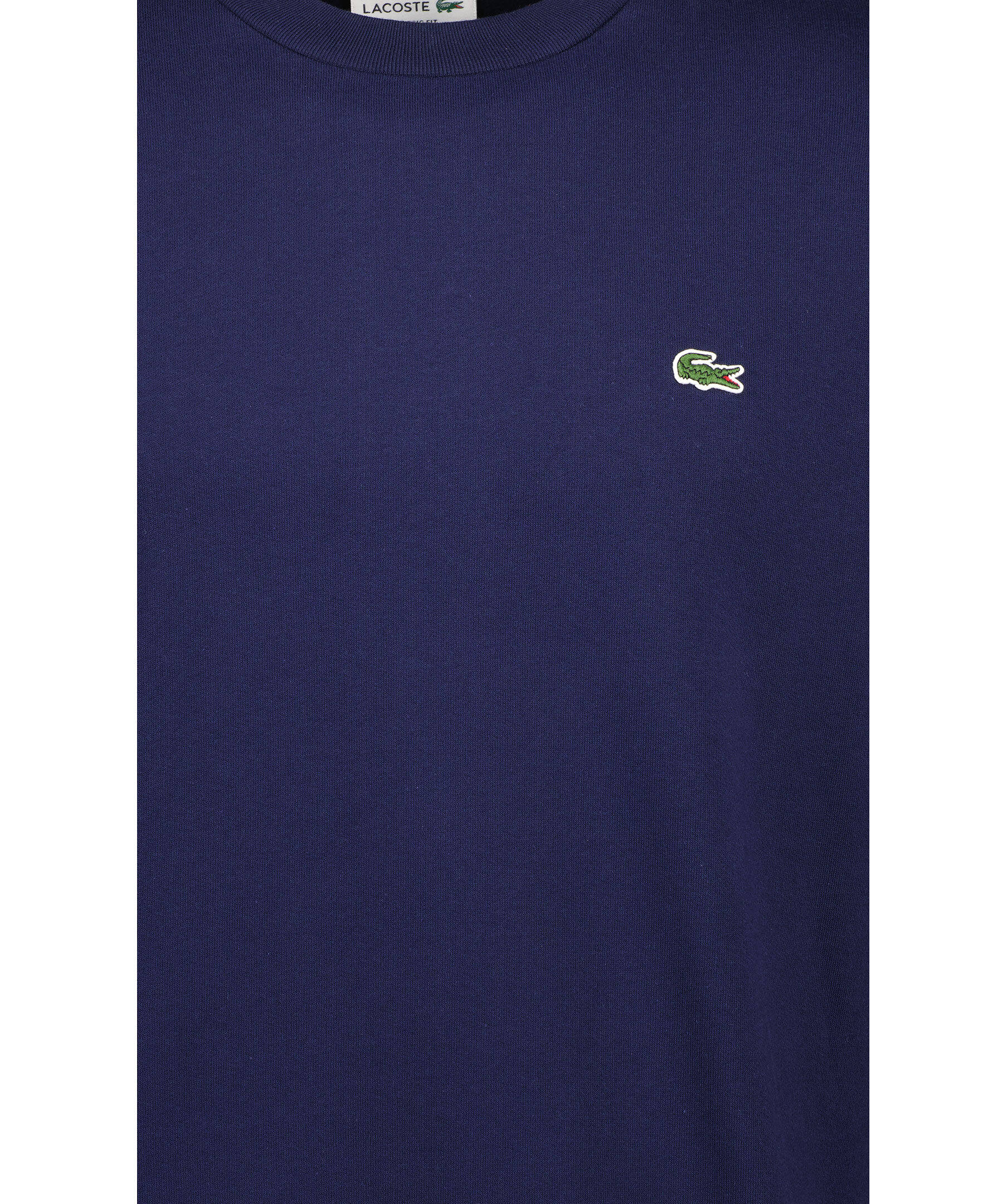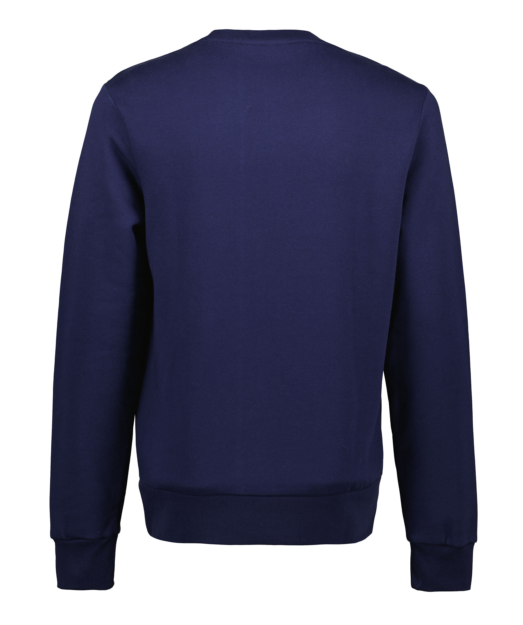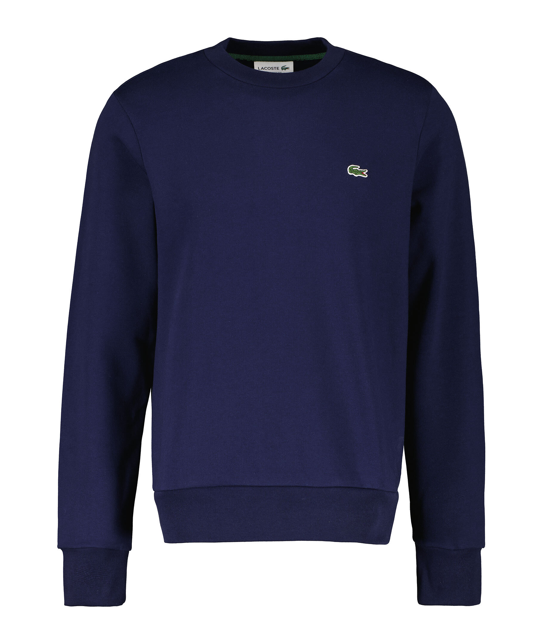 Marinblå sweatshirt från Lacoste. Broderad patch med logotyp på vänster bröst och rundad halsringning. Ribbstickade mudd i ringning, ärm- och plaggslut. Borstad insida. Tillverkad i en bomullsblandning.