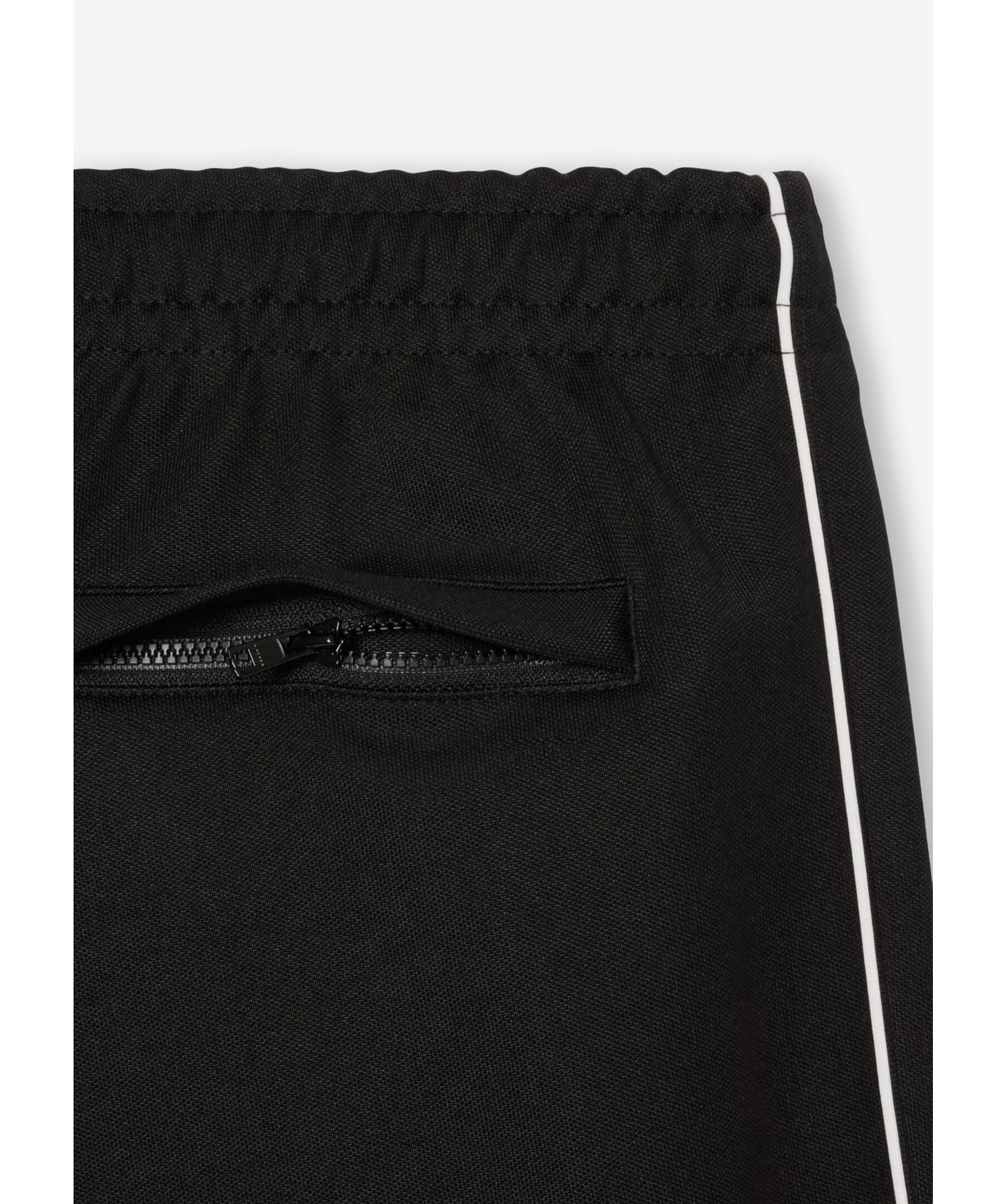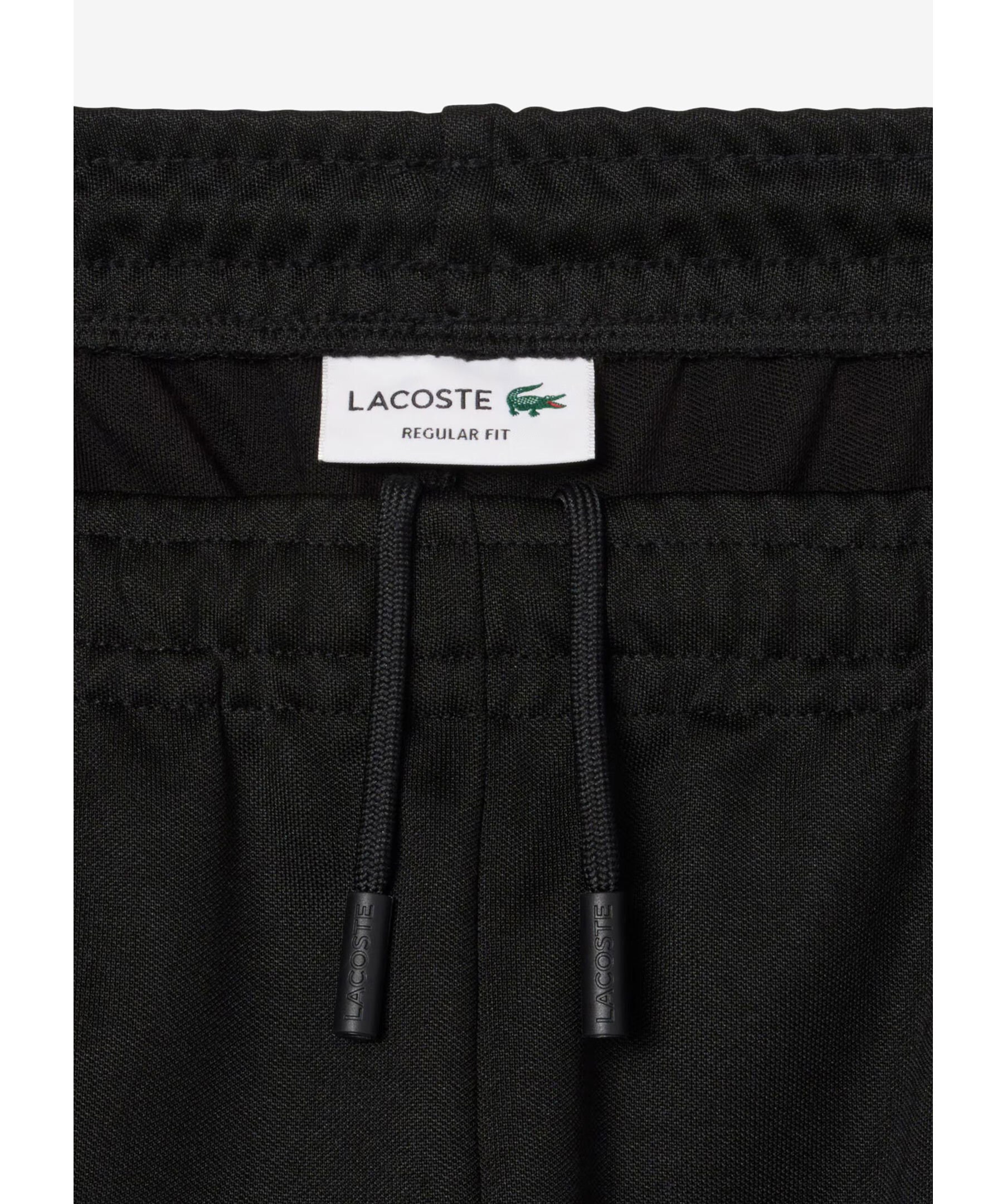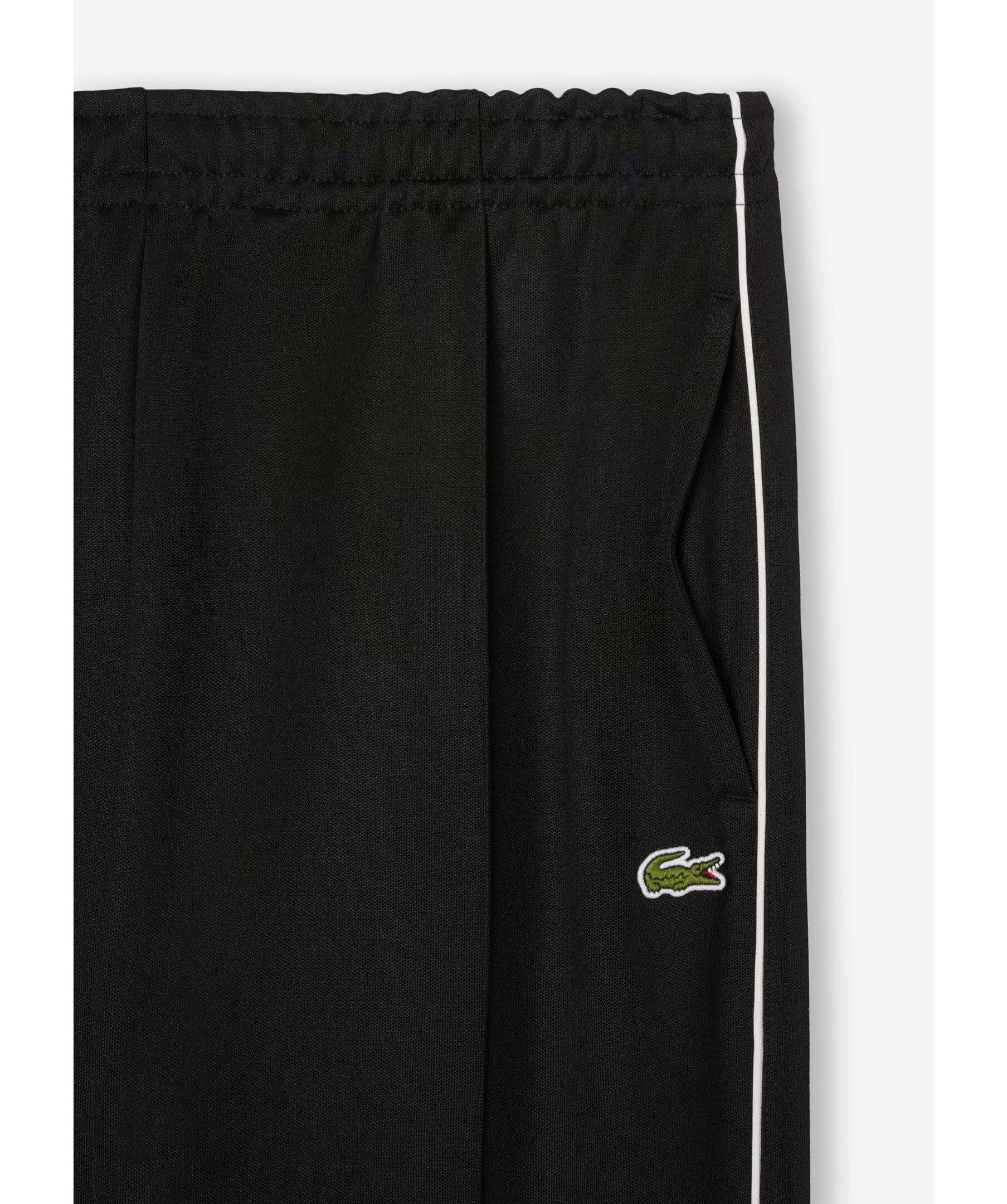 Svarta tracksuit byxor från Lacoste. Vita revärer i sidorna. Broderad patch med logotyp på vänster lår. Två fickor framtill och en bakficka på höger sida med dold dragkedja. Elastisk resår i midjan. Tillverkade i en polyester- och bomullsblandning.