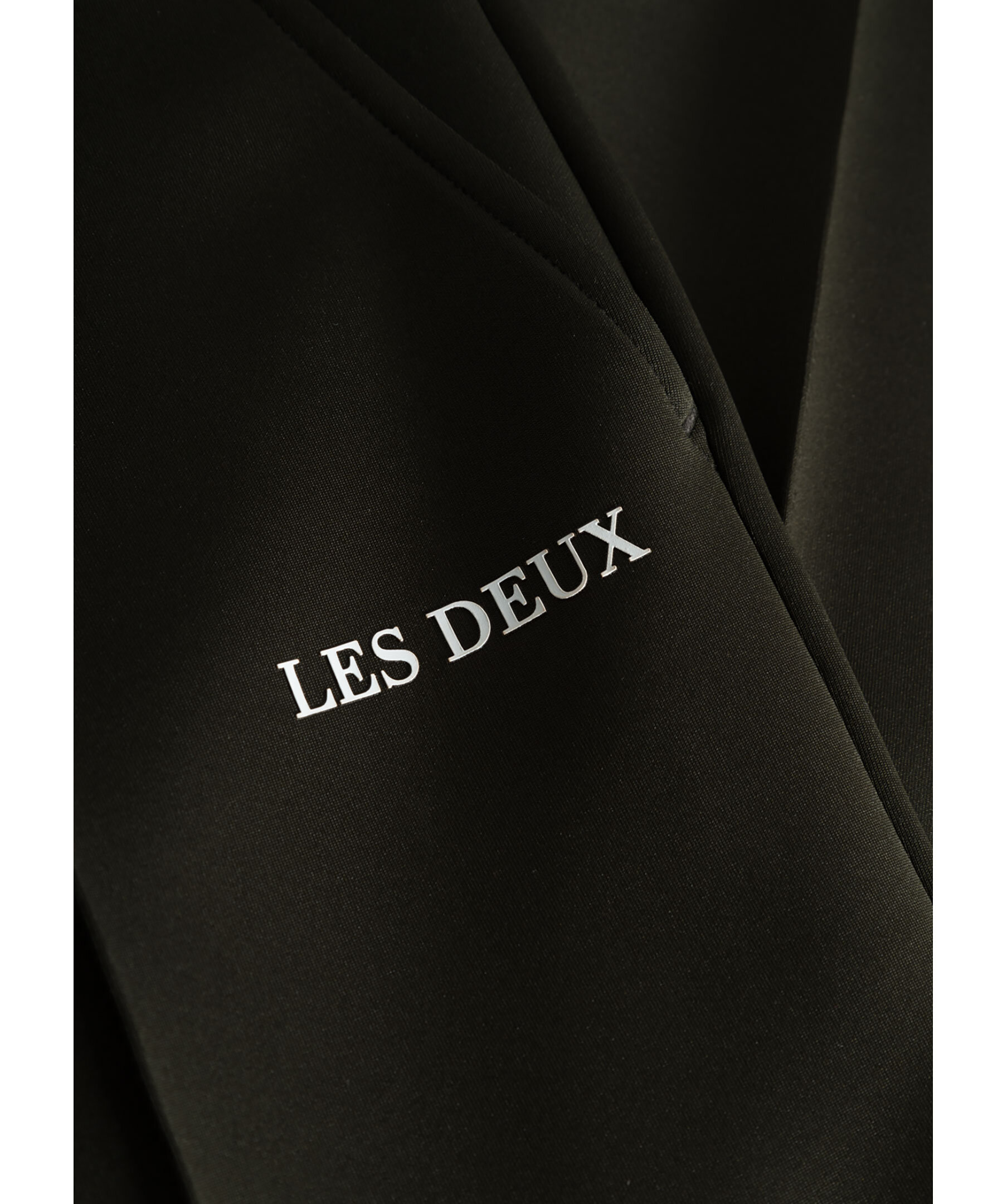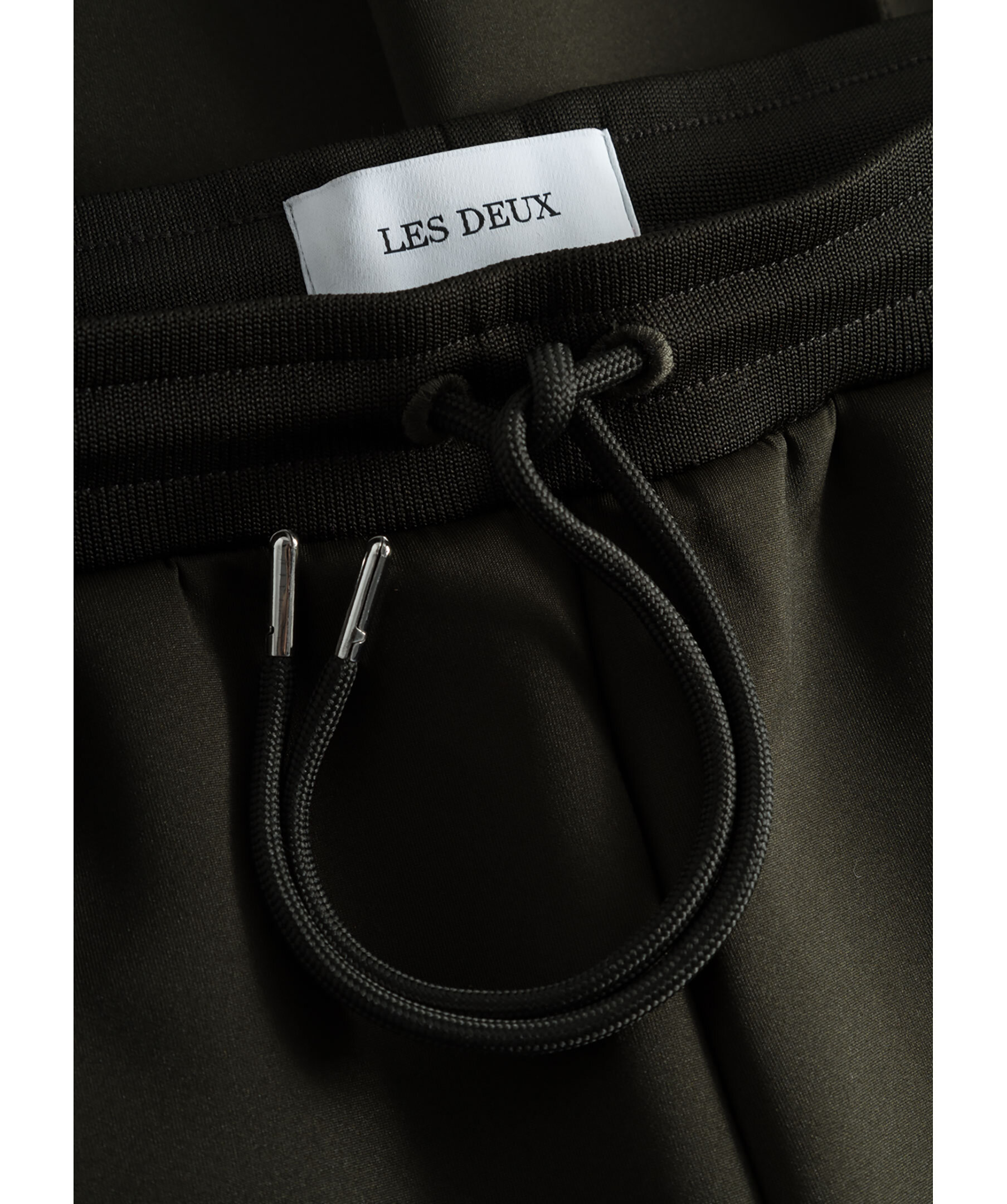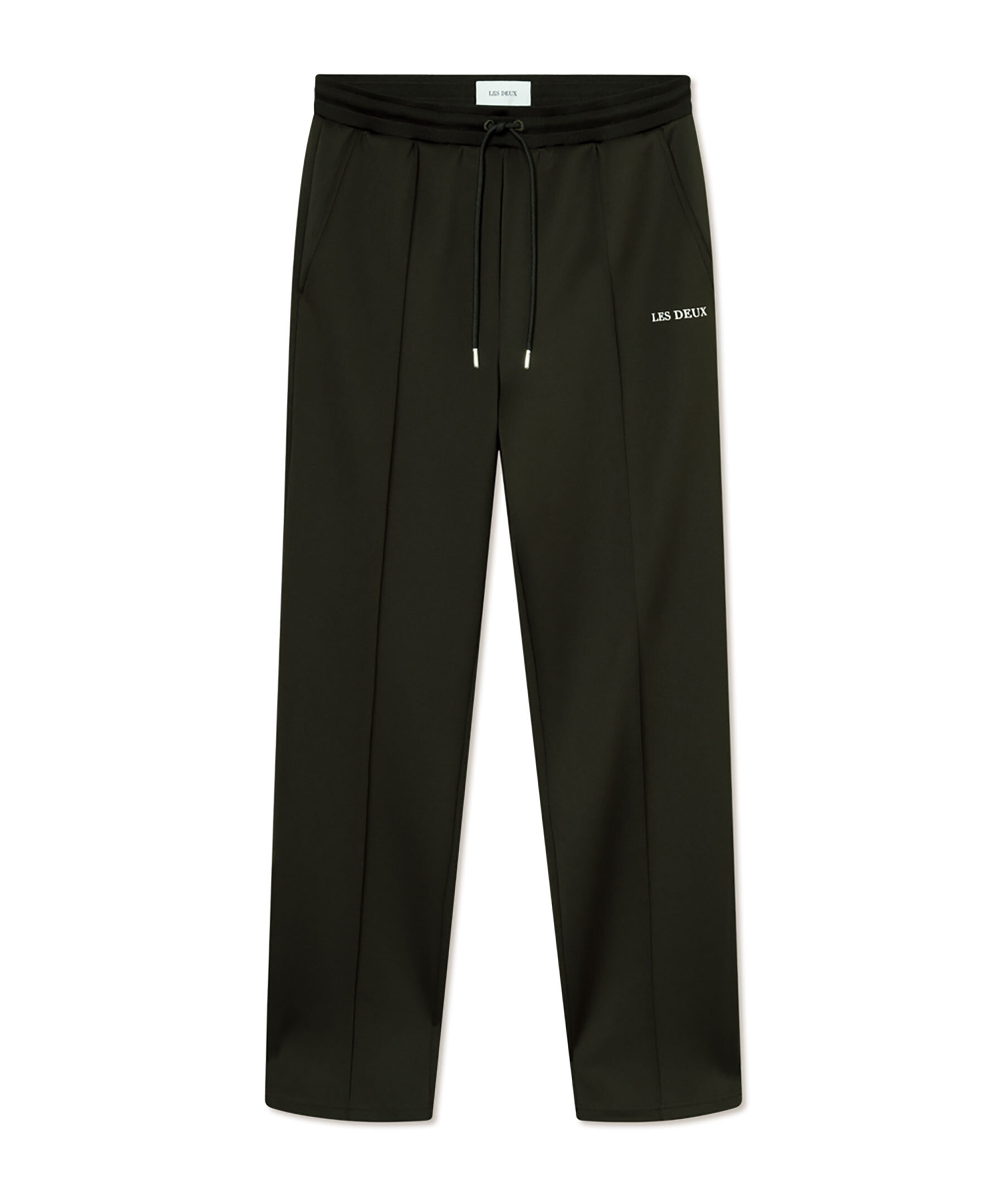 Mörkgröna tracksuitbyxor från Les Deux. Byxorna har elastisk midja med dragsko, gummerad logotyp på vänster lår, broderad logotyp baktill på höger sida och två fickor framtill. Tillverkade i en polyesterblandning.