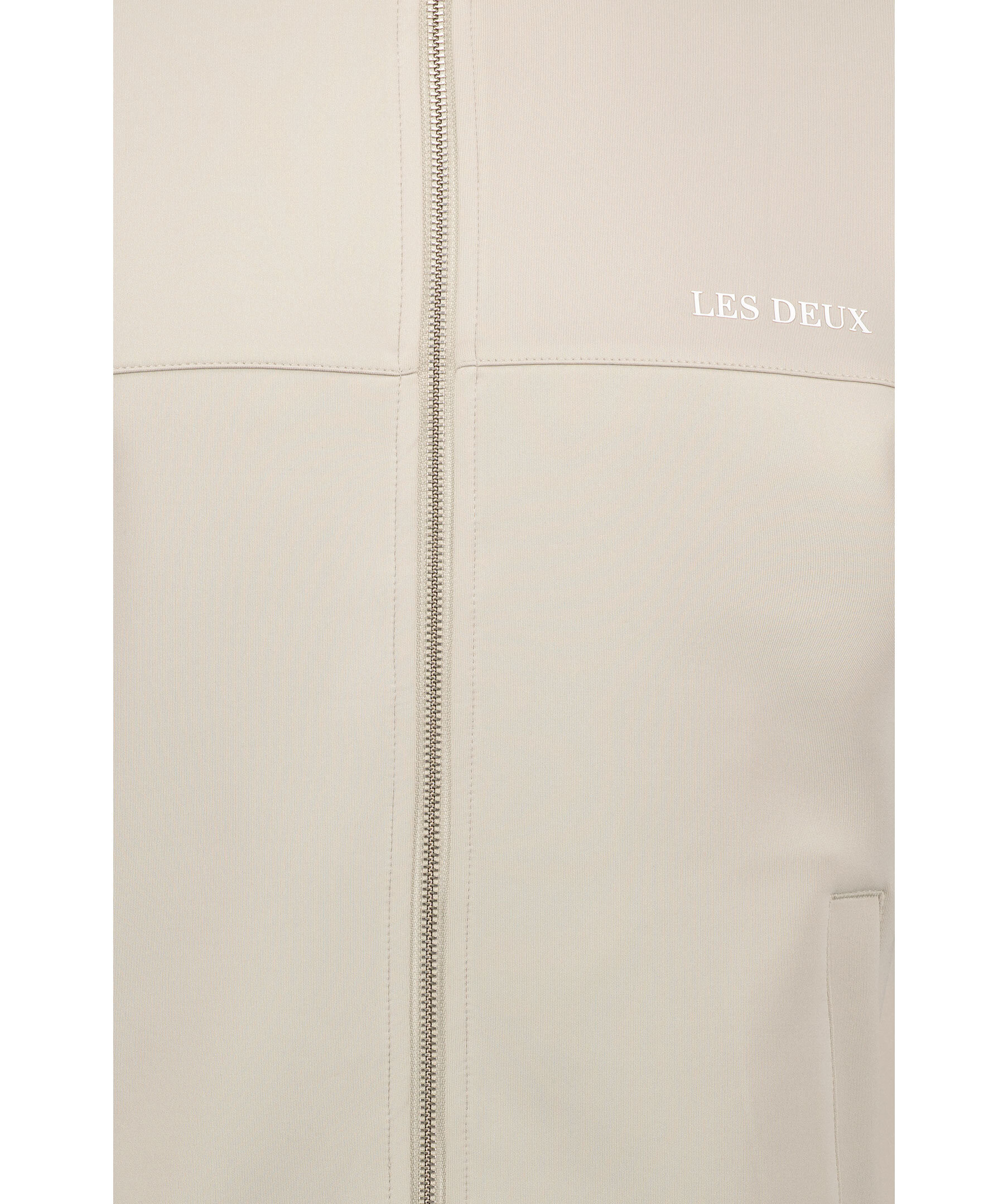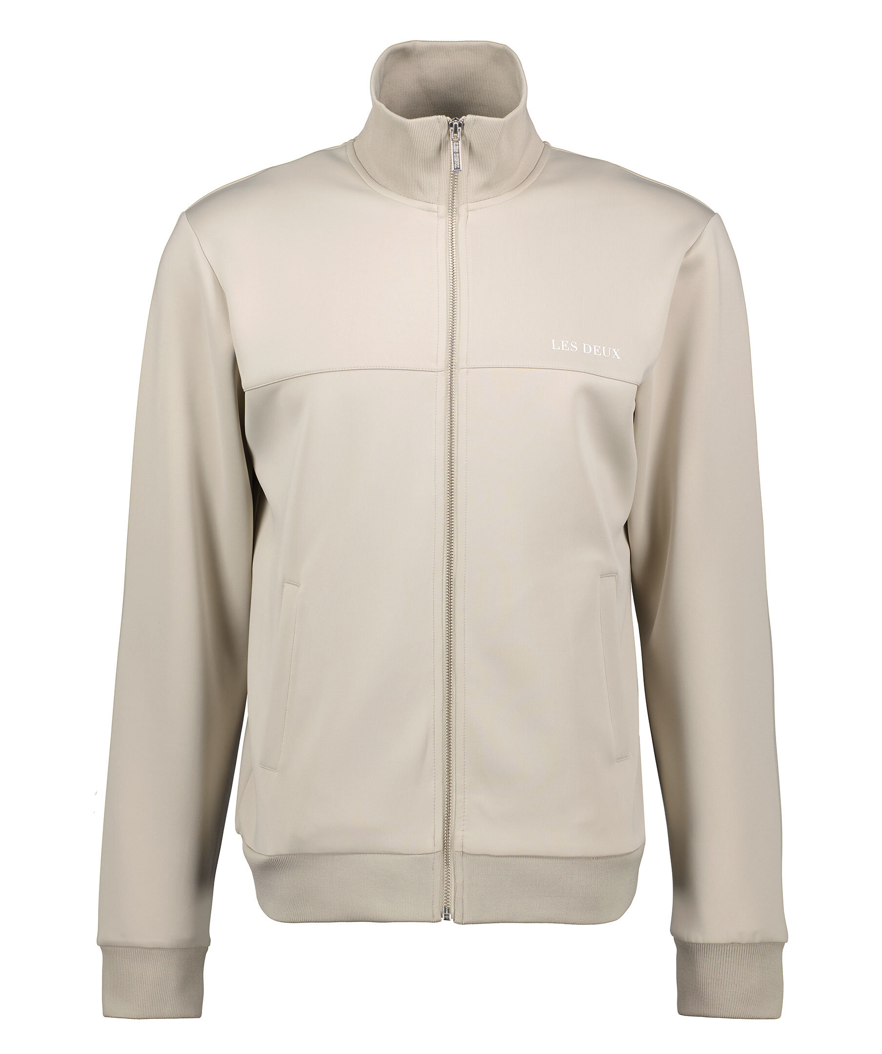 Gråbeige Tracksuit jacka från Les Deux. Stängs med dragkedja framtill, Ribbstickad krage, ärm- och plaggslut. Tryckt logotyp på vänster bröst. Två fickor framtill. Tillverkad i återvunnen polyester.