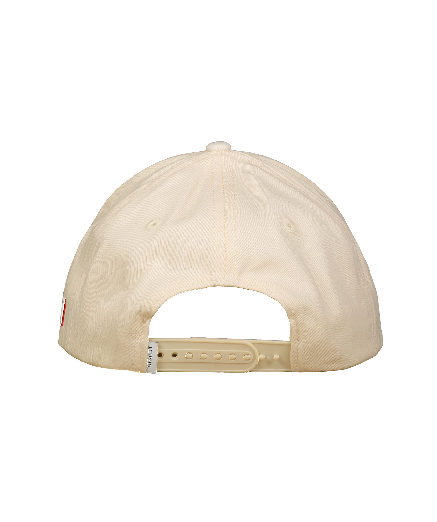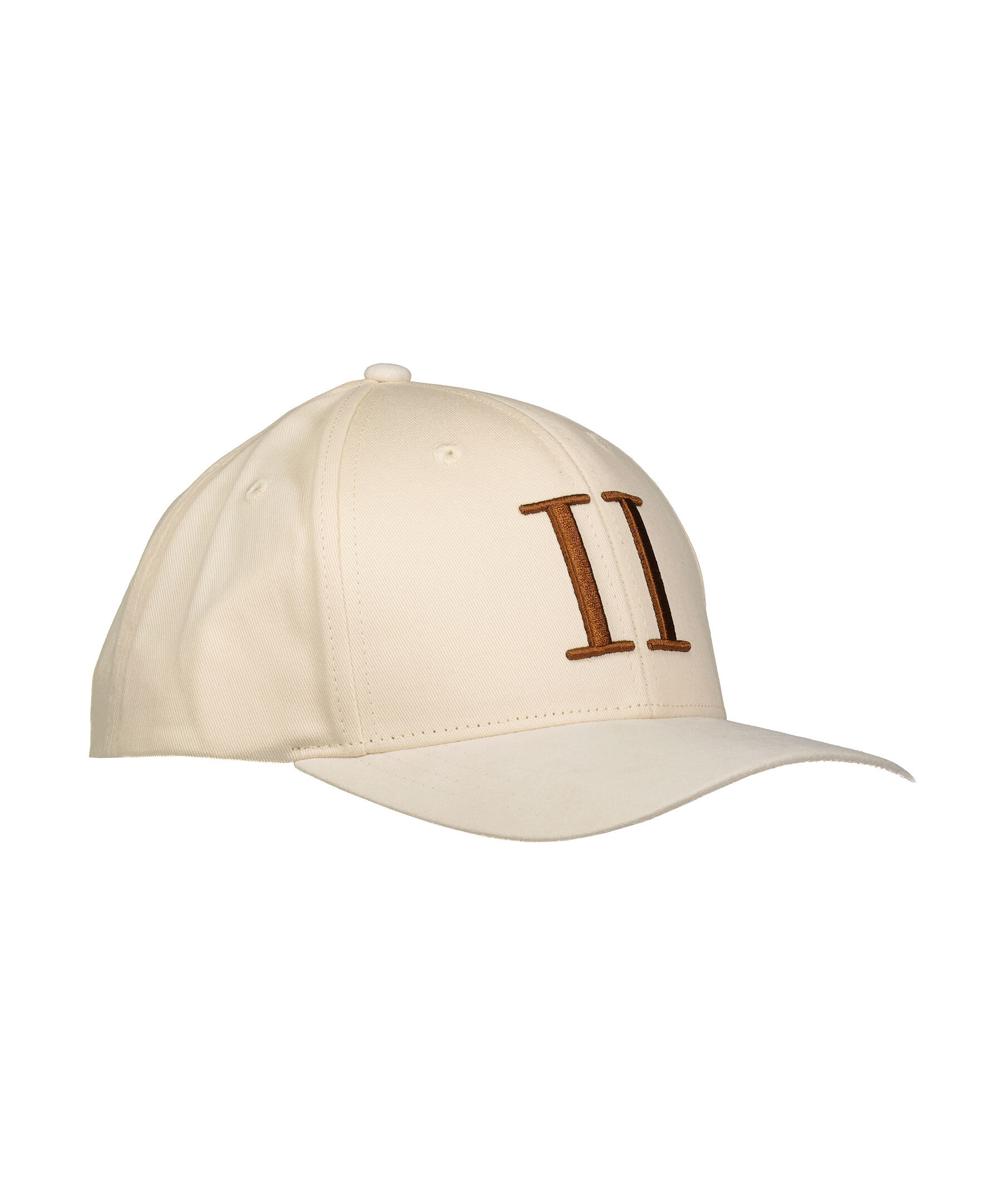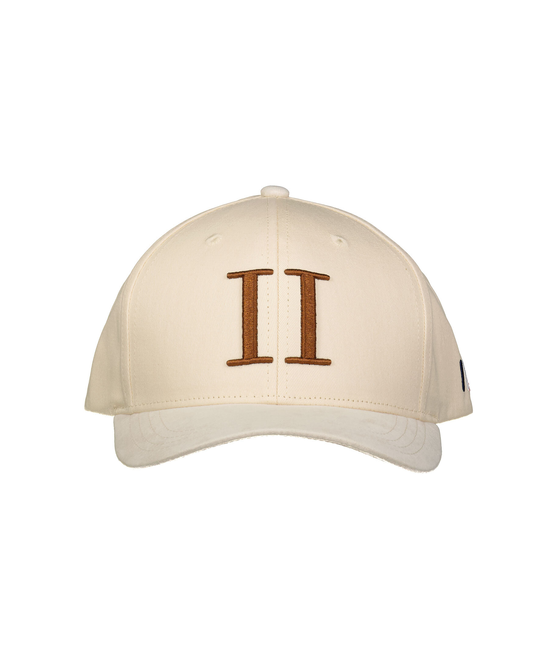 Krämvit keps från Les Deux i bomullsmix. Stor broderad II-logotyp i brunt på framsidan. Broderad logotyp på kepsens vänstra sida. Går att justera baktill med spänne i plast.