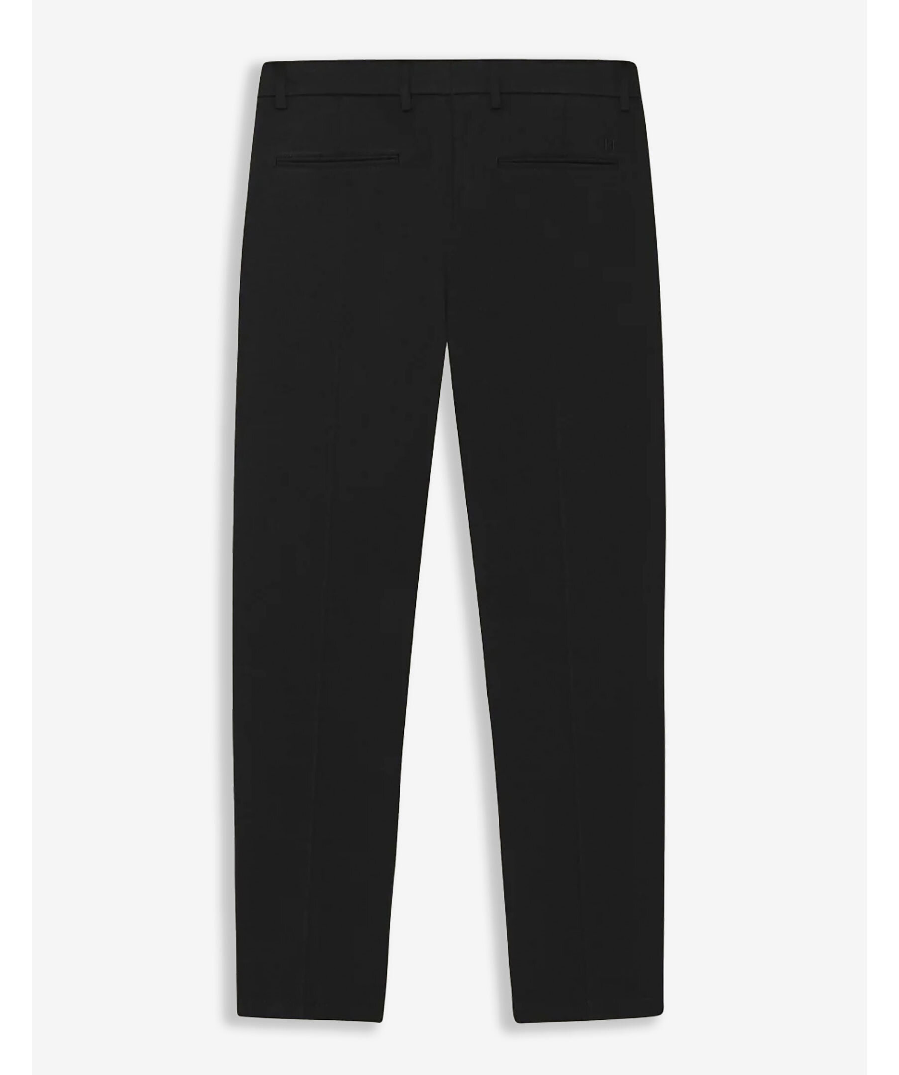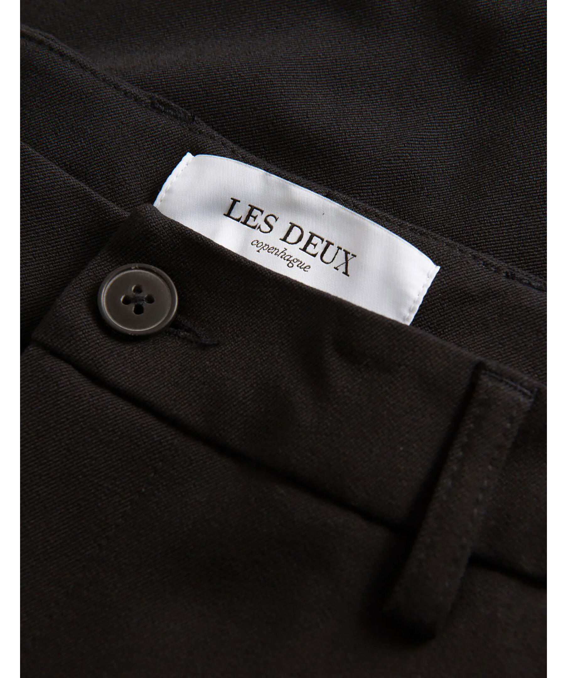 Svarta kostymbyxor från Les Deux. Byxorna har bälteshällor i midjan, två sidfickor samt två passpoalfickor baktill. Pressveck och broderad logotyp. Tillverkade i en polyesterblandning.