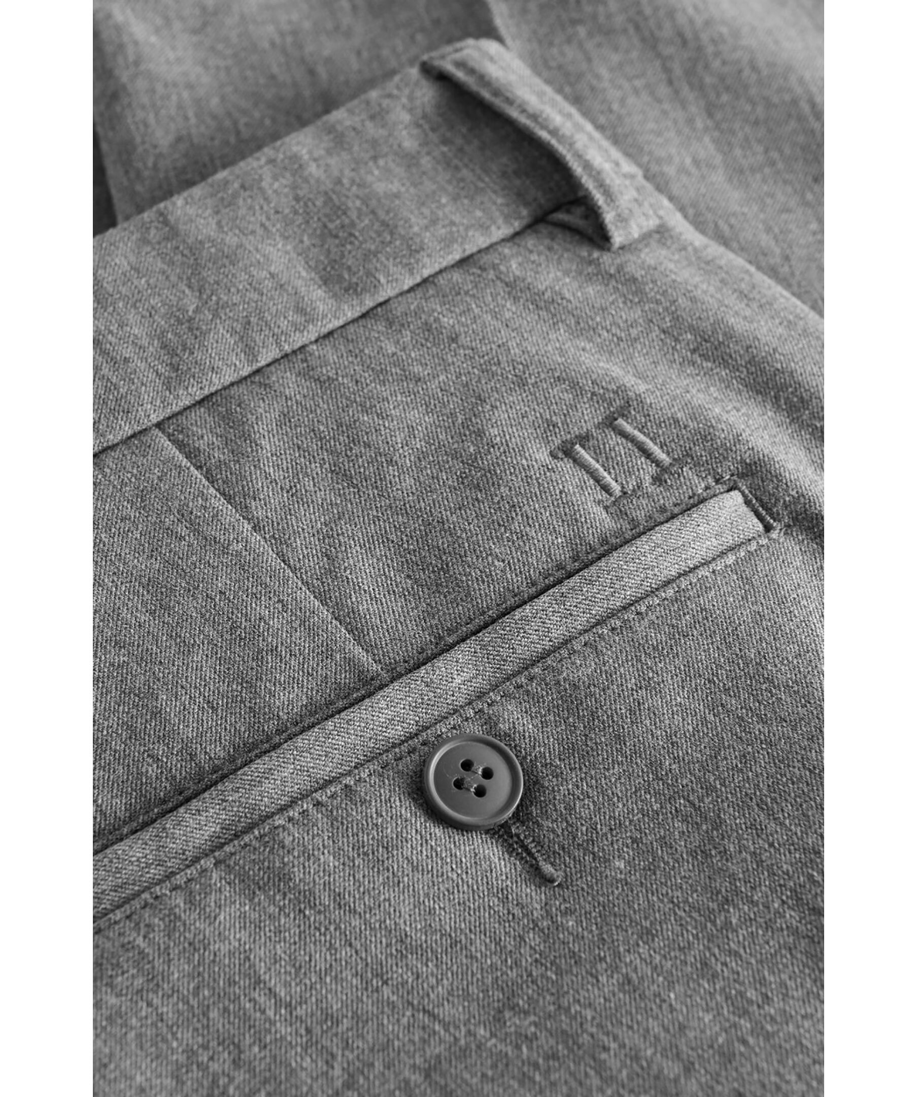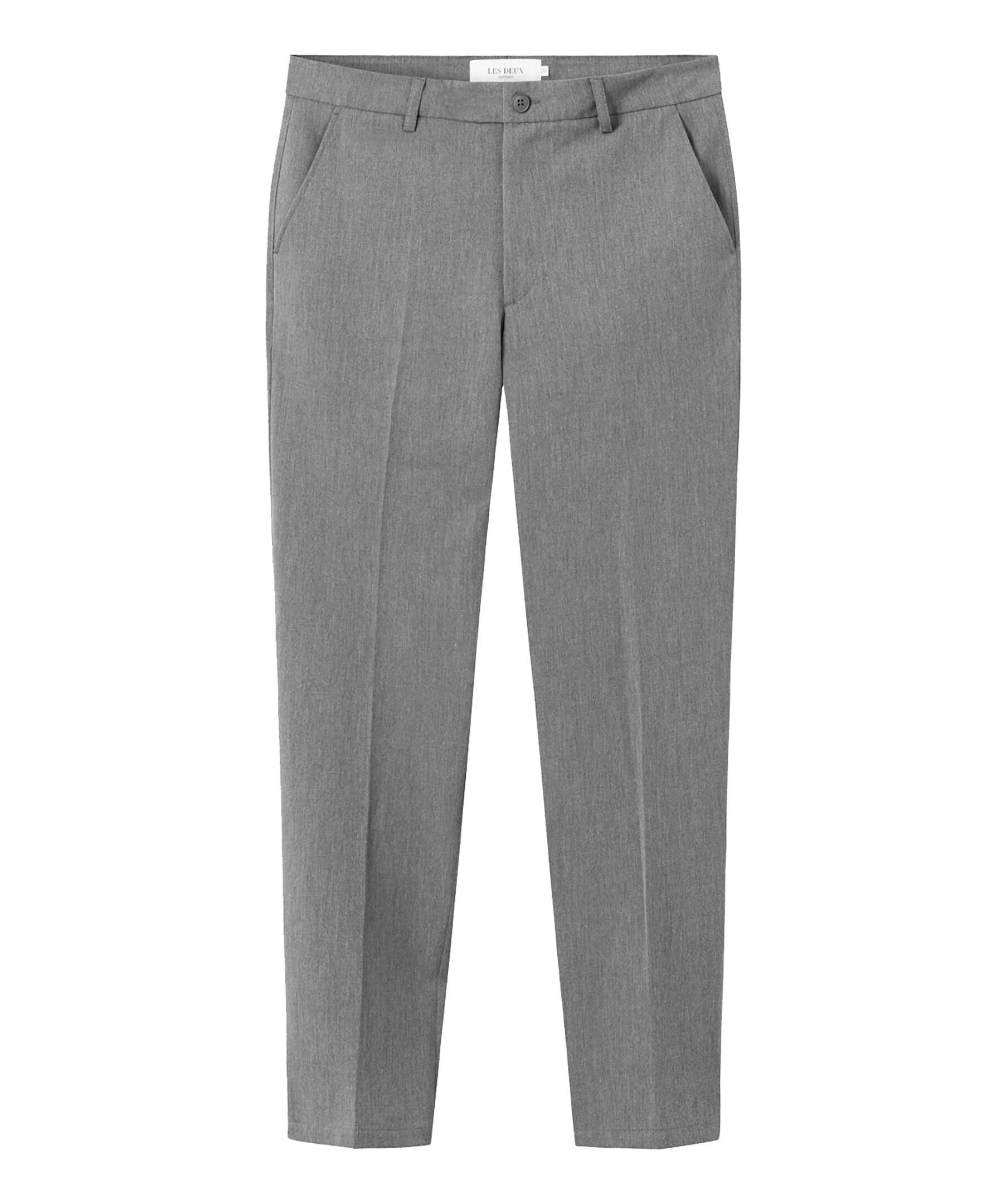 Gråmelerade kostymbyxor från Les Deux. Två fickor fram till, två baktill. Hällor för bälte. Pressveck framtill. Broderad logotyp baktill vid höger bakficka.