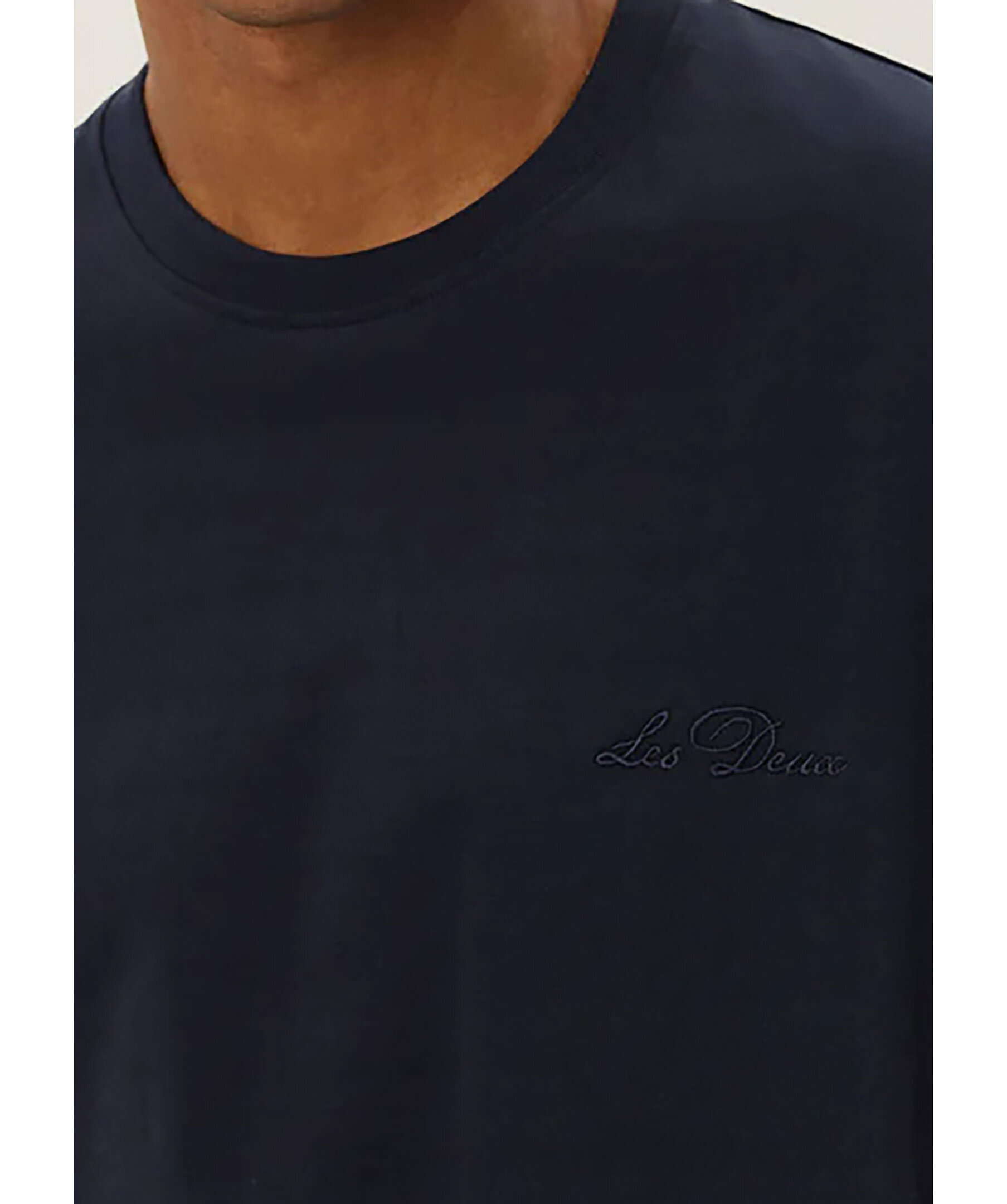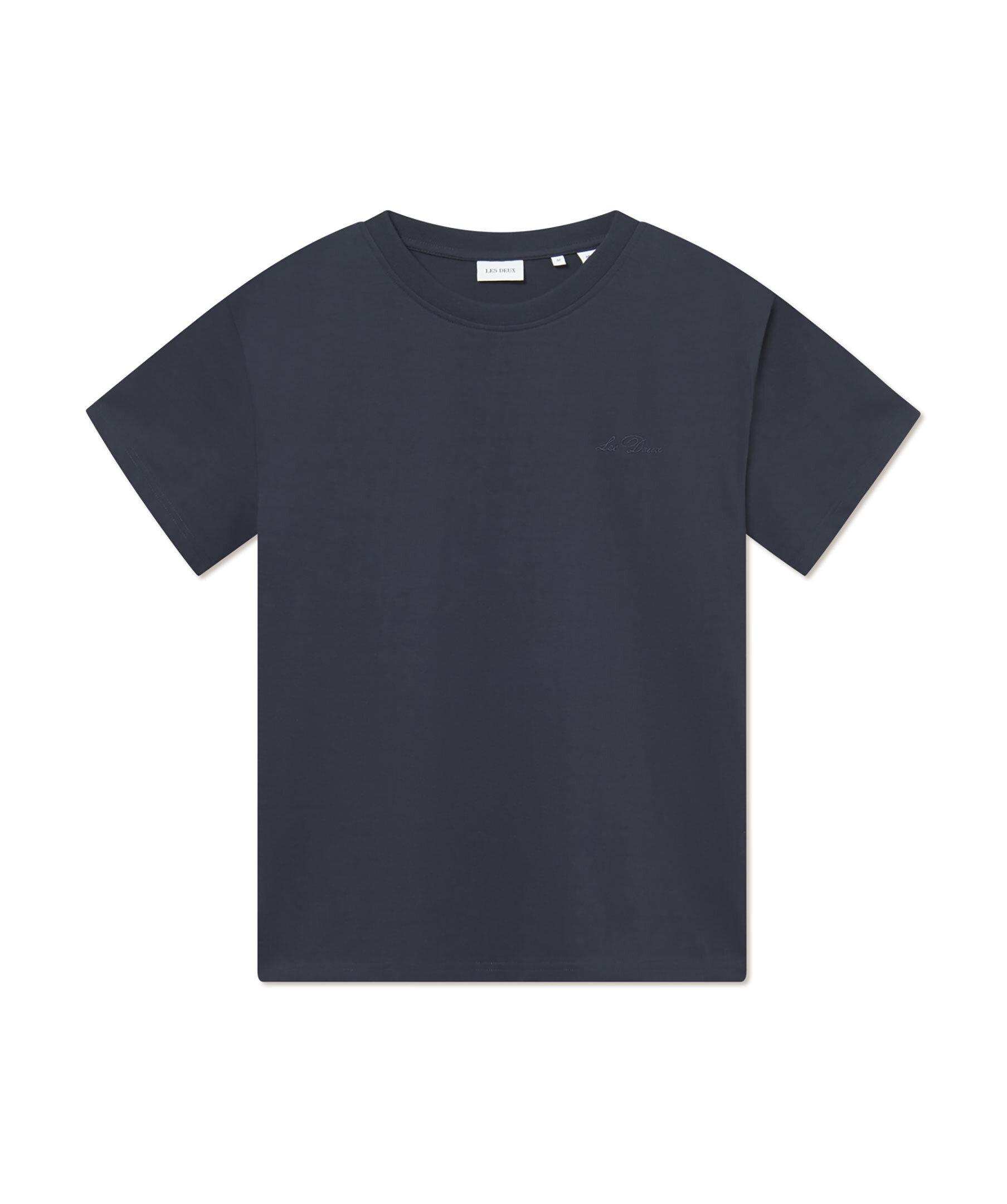 Marinblå tungvikts t-shirt från Les Deux. T-shirten har rundad halsringning samt broderad logotyp i kursiv på bröstet. Tillverkad i ekologisk bomull.