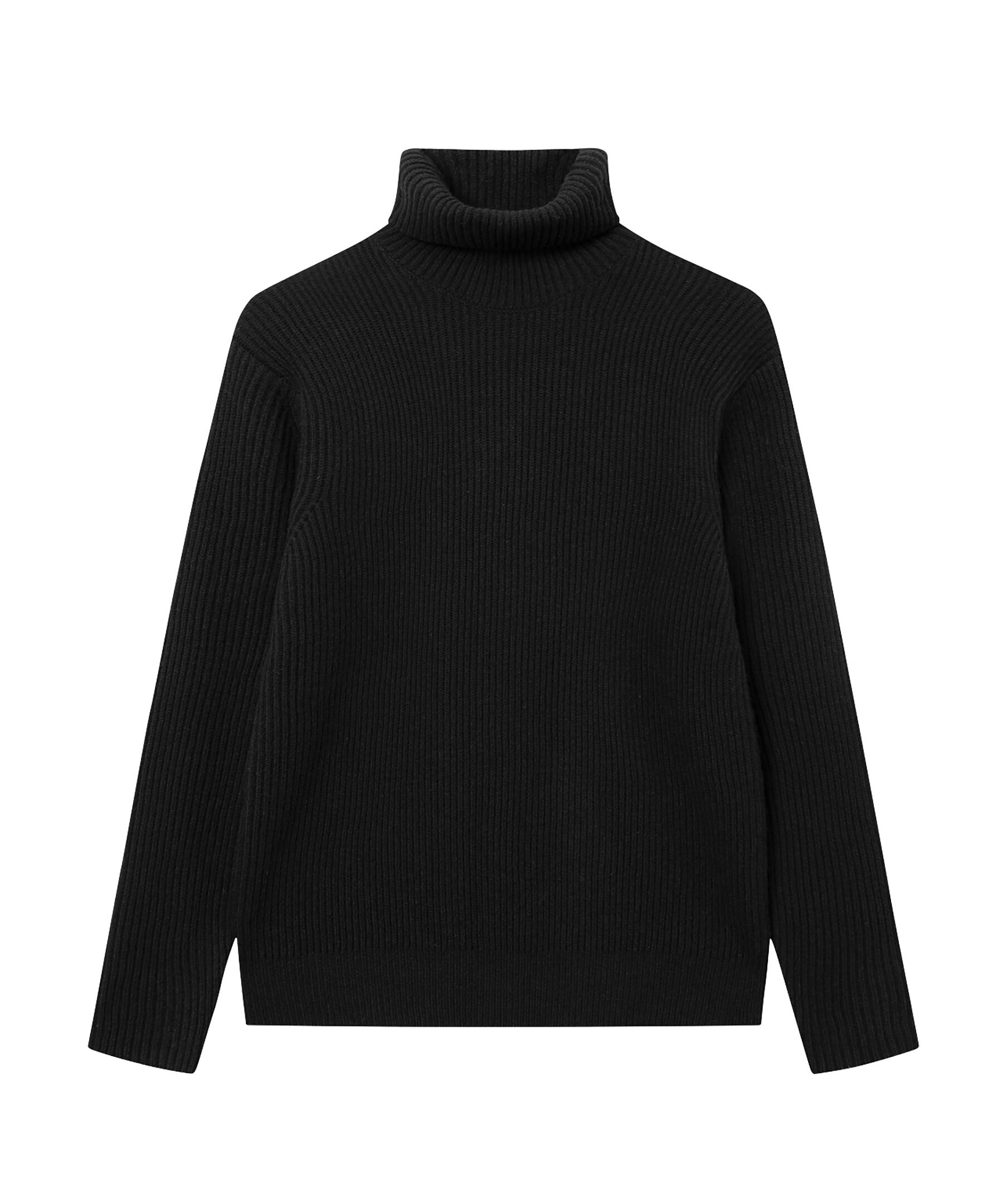 Svart ribbstickad polotröja från Les Deux. Tillverkad i 100% merinoull.