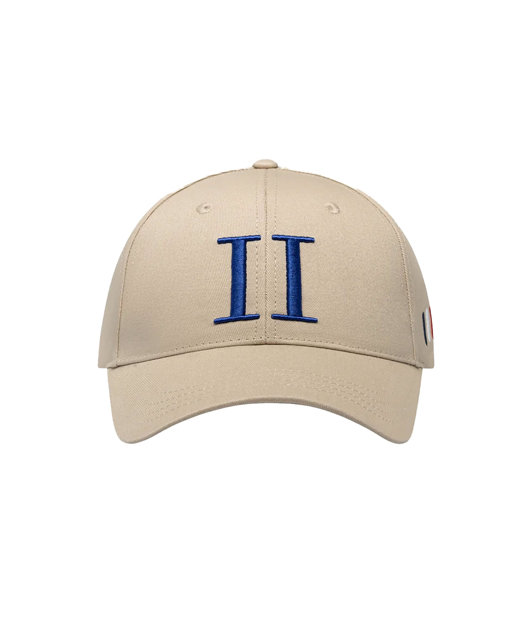 Beige keps från Les Deux. Stor broderad II-logotyp i blått på framsidan. Broderad logotyp på kepsens vänstra sida. Går att justera baktill med spänne i plast. Tillverkad i 100% Ekologisk bomull.