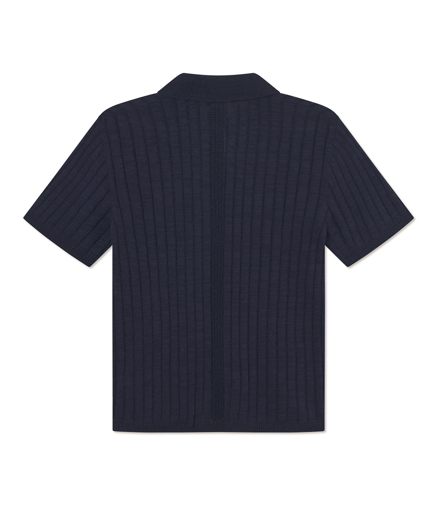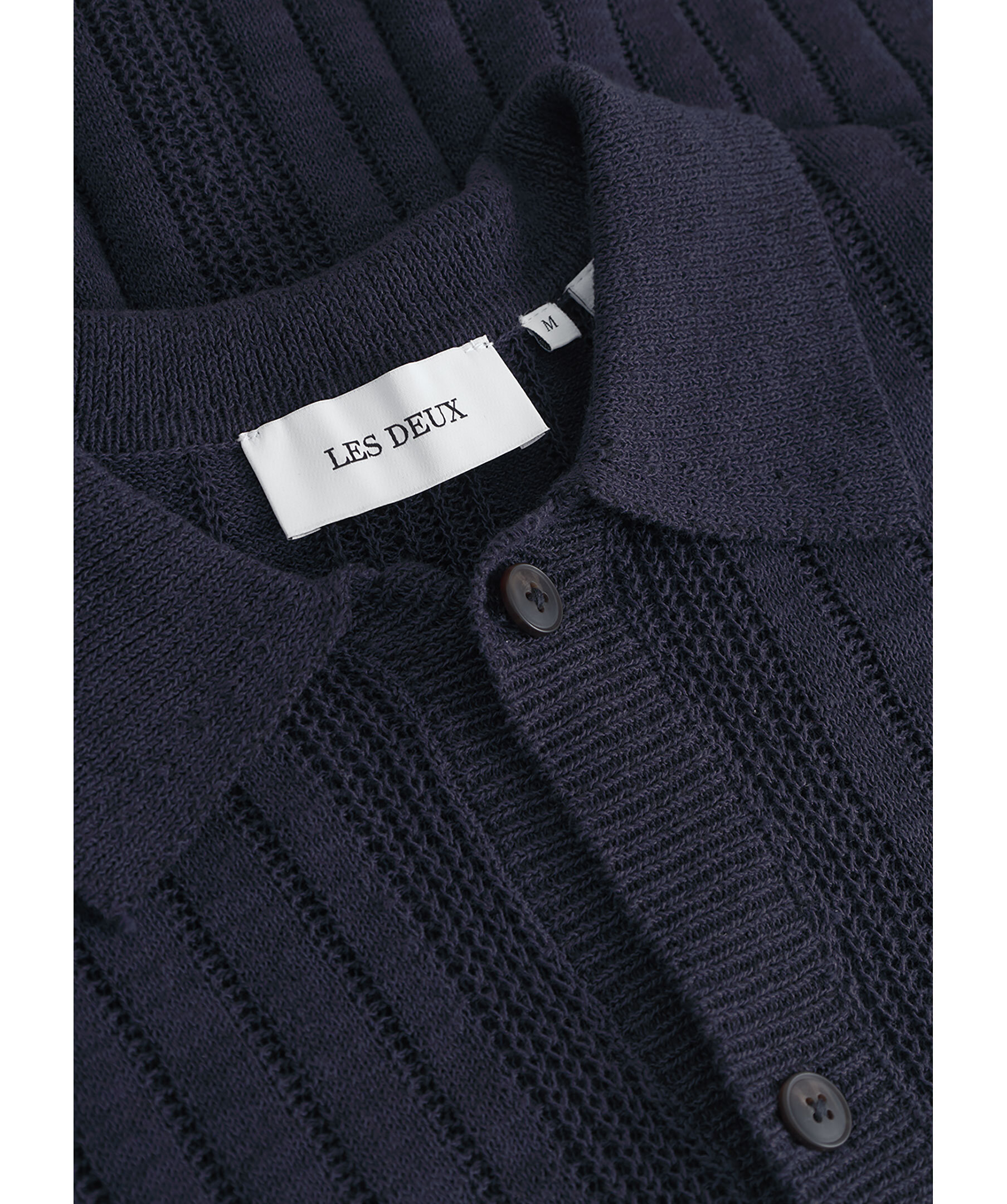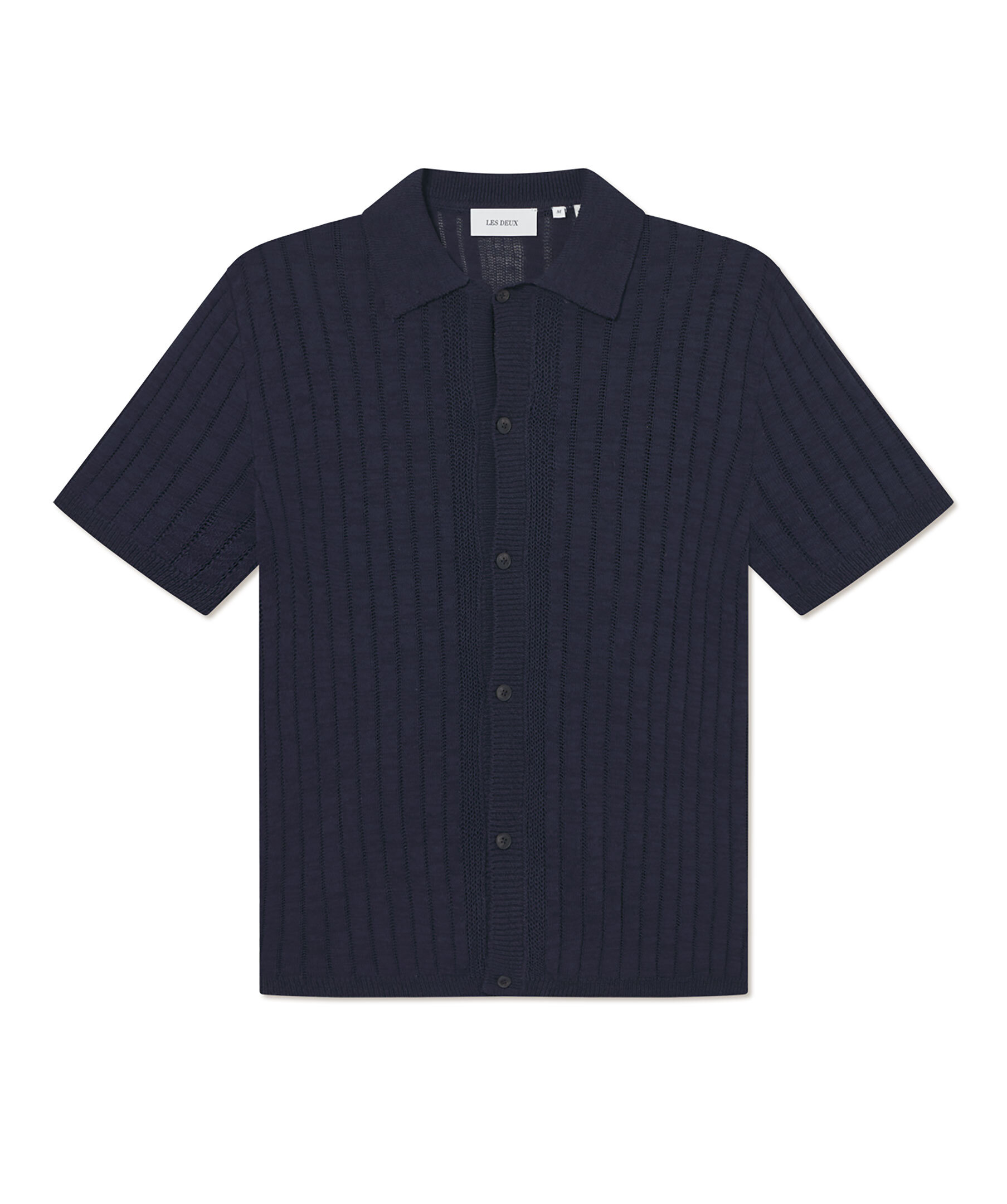 Mörkblå, stickad och kortärmad skjorta från Les Deux. Skjortan stängs med knappar framtill och har en klassisk krage. Tillverkad i en bomull- och linneblandning.