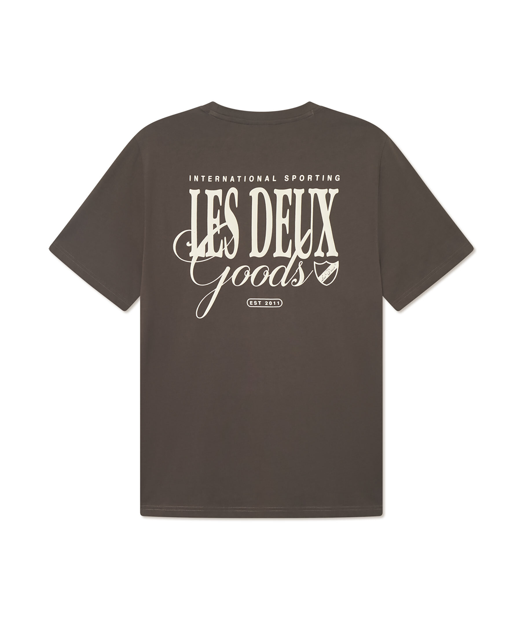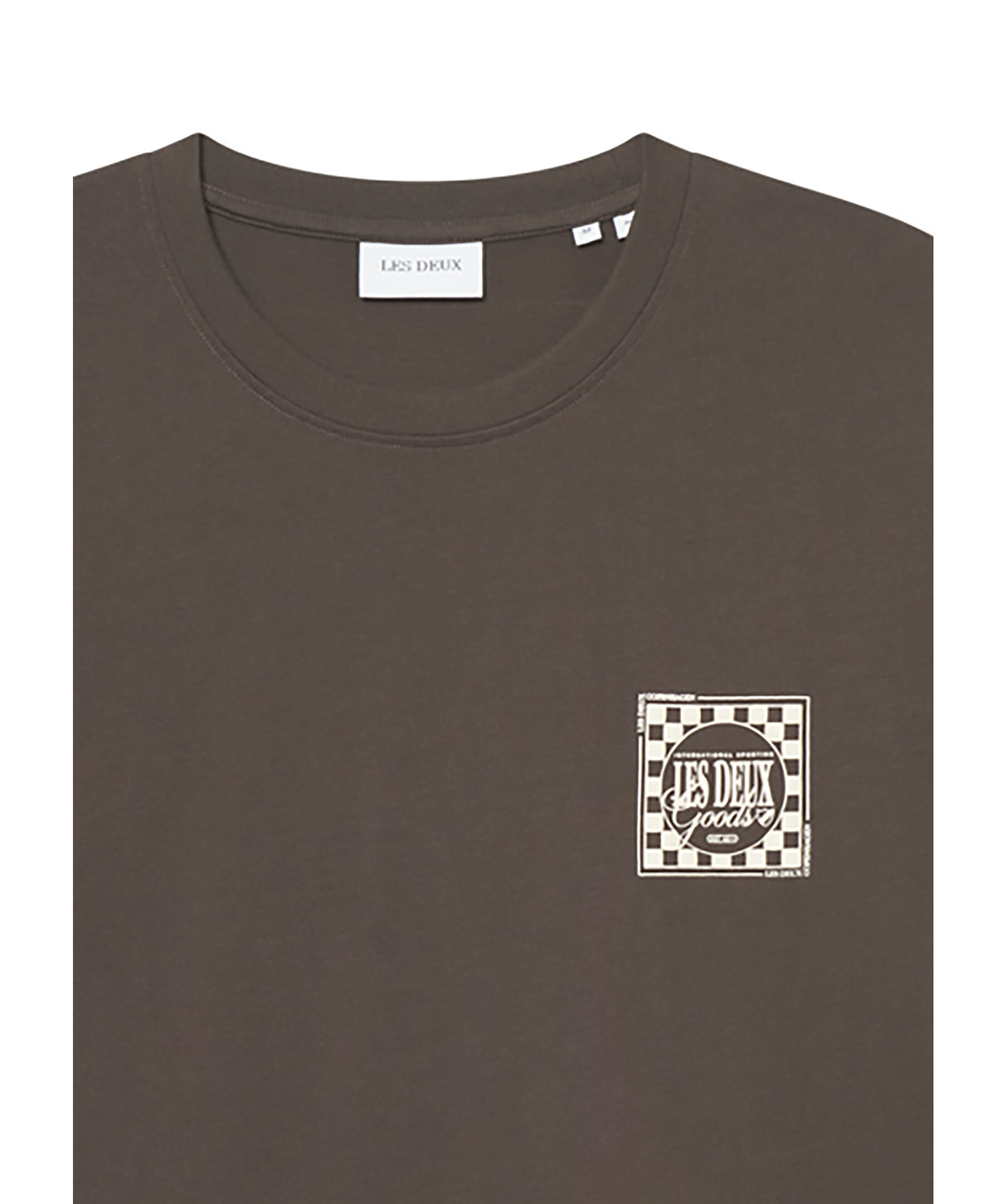 Mörkrun t-shirt från Les Deux. T-shirten har rundad halsringning och litet motiv på framsidan samt stort motiv på ryggen. Tillverkad i bomull.