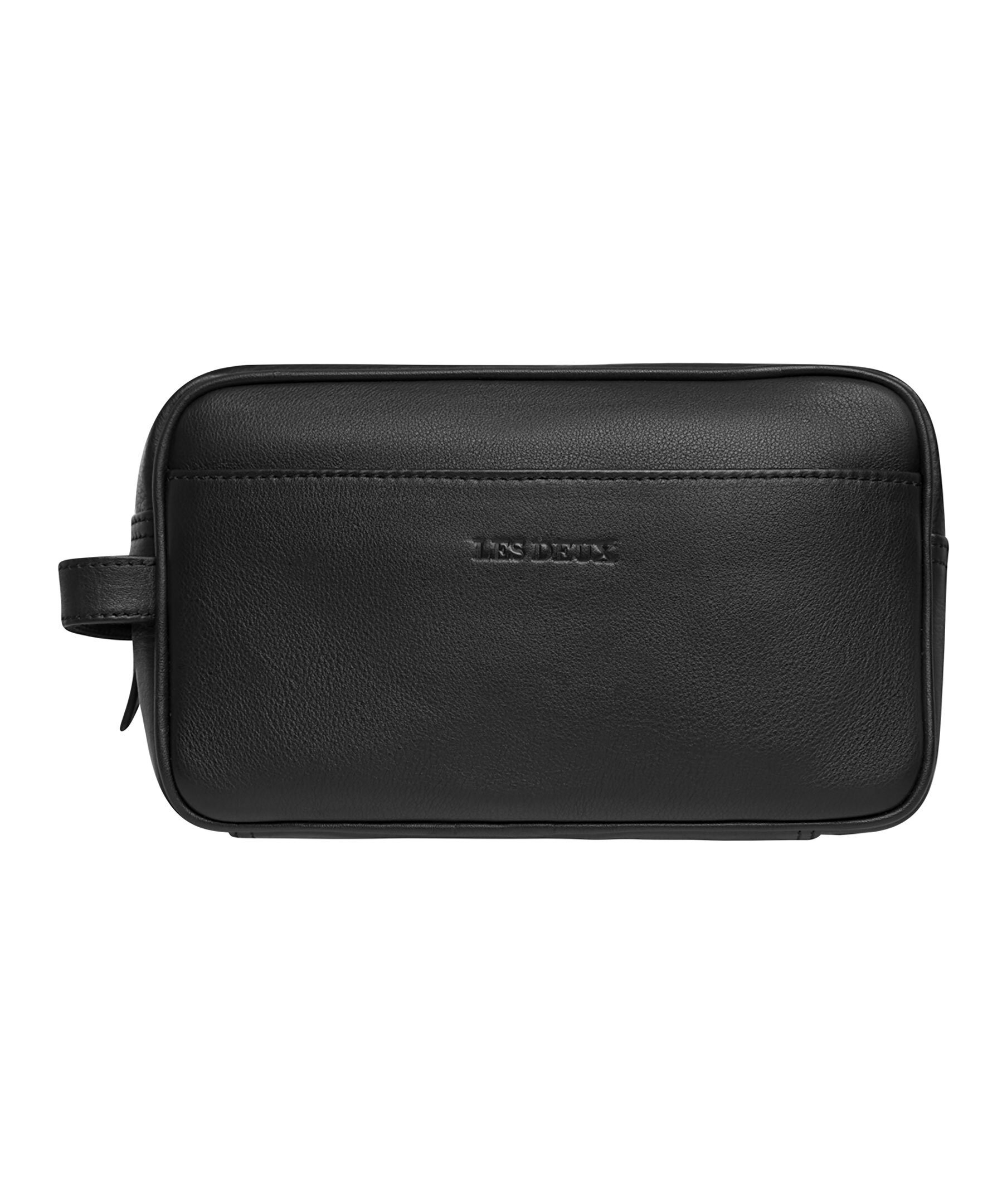 Svart necessär i läder från Les Deux. Stilren design med embossad logotyp på framsidan. Necessären har en silvrig dragkedja och ett smart handtag på sidan.