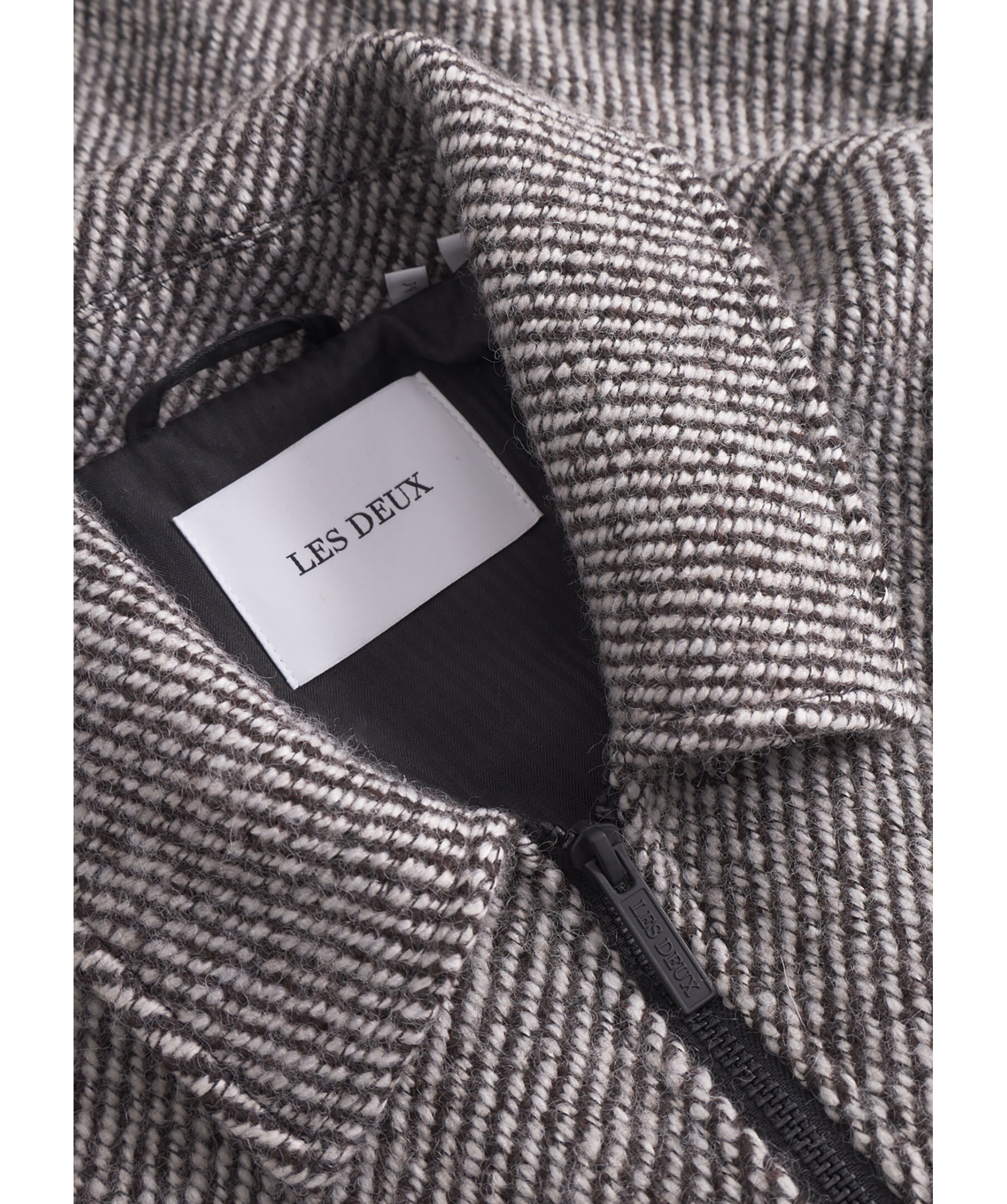 Gråmönstrad ulljacka från Les Deux. Jackan stängs med tvåvägsdragkedja och har två sidfickor samt två påsydda bröstfickor. Tillverkad i en ullblandning.