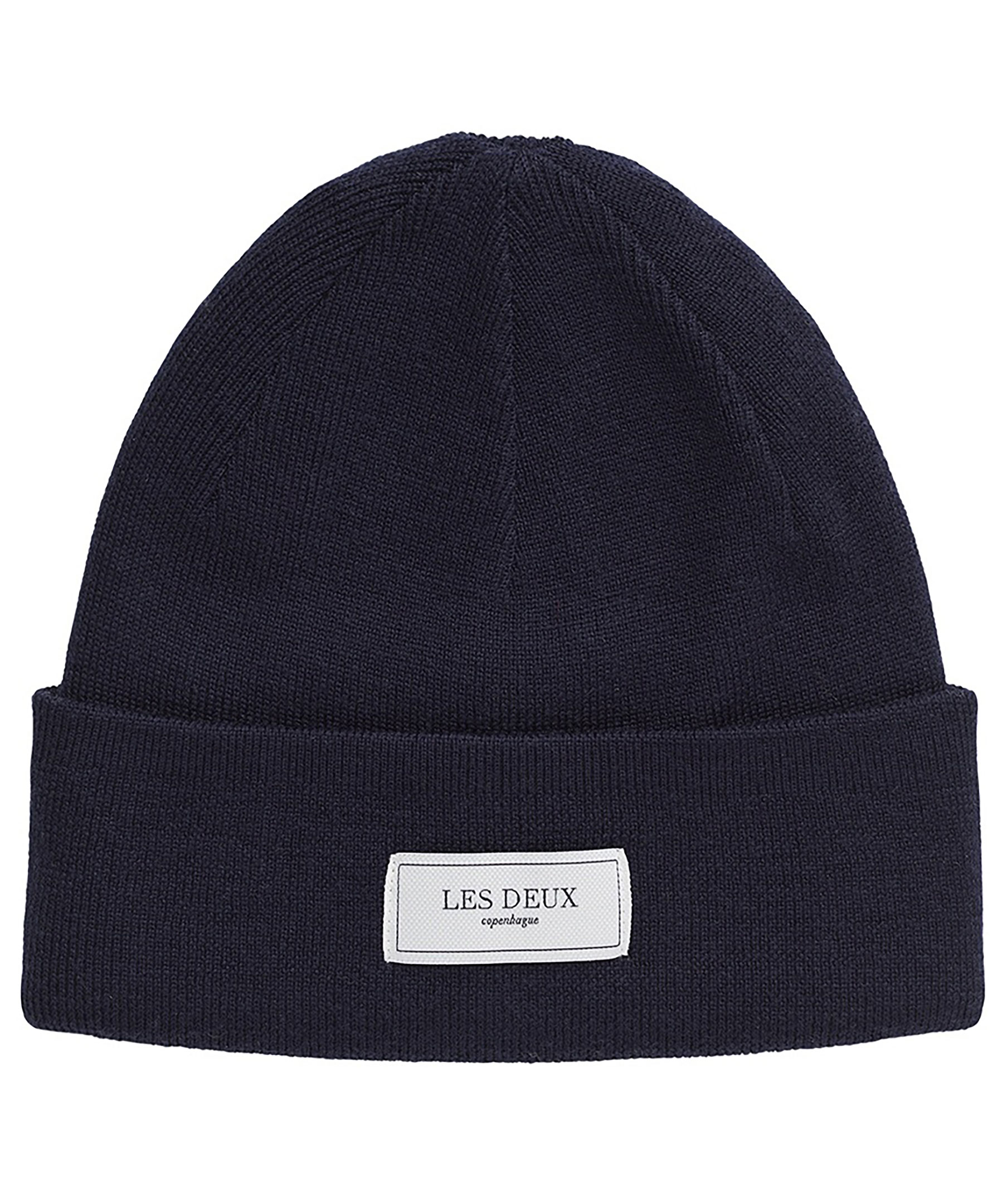 Mörkblå mössa från Les Deux gjord i merino ull. Tygpatch med logotyp på framsidan.