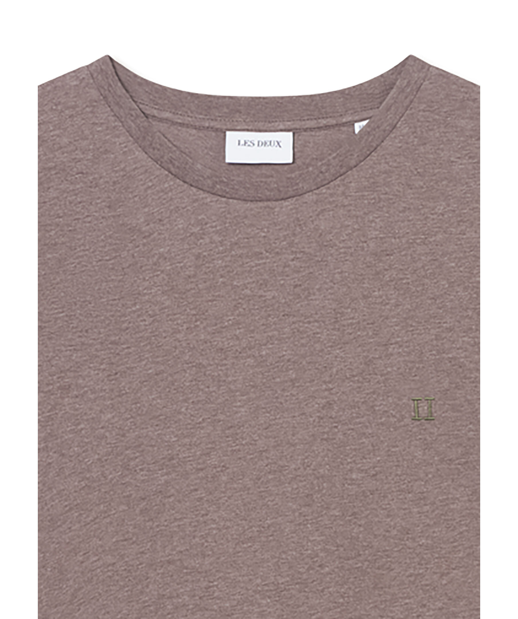 Brun t-shirt från Les Deux. T-shirten har rundad halsringning, korta ärmar med sydd upprullning samt broderad logotyp på bröstet. Tillverkad i bomull.