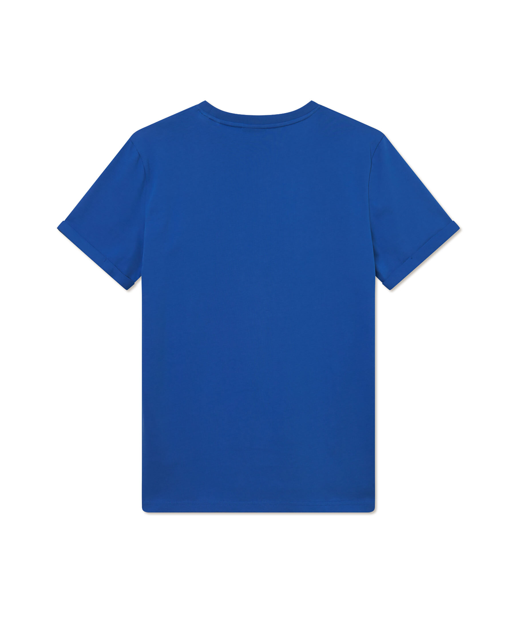 Blå t-shirt från Les Deux. T-shirten har rundad halsringning, korta ärmar med sydd upprullning samt broderad logotyp på bröstet. Tillverkad i bomull.