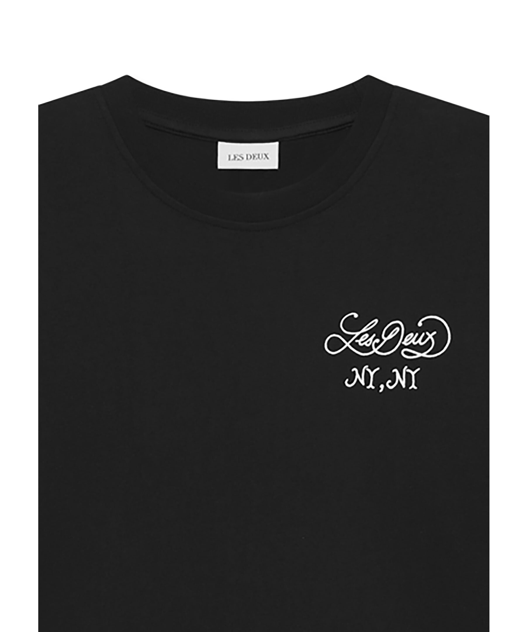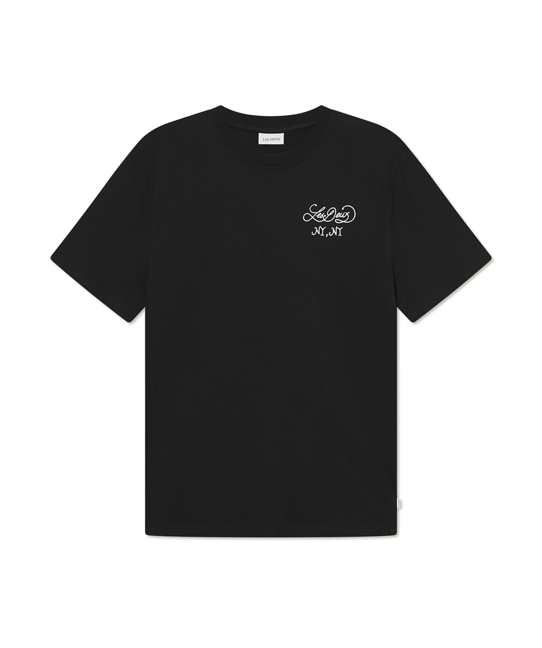 Svart t-shirt med tryck från Les Deux. T-shirten har rundad halsringning och pryds av ett uttrycksfullt motiv på ryggen och ett matchande kursivt tryck på bröstet. Tillverkad i bomull.