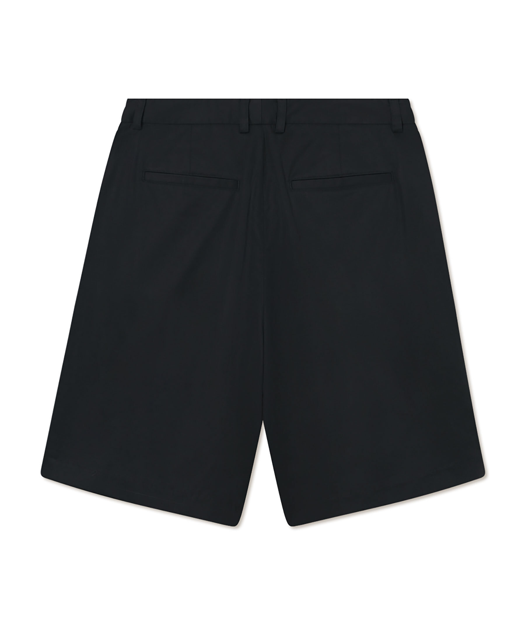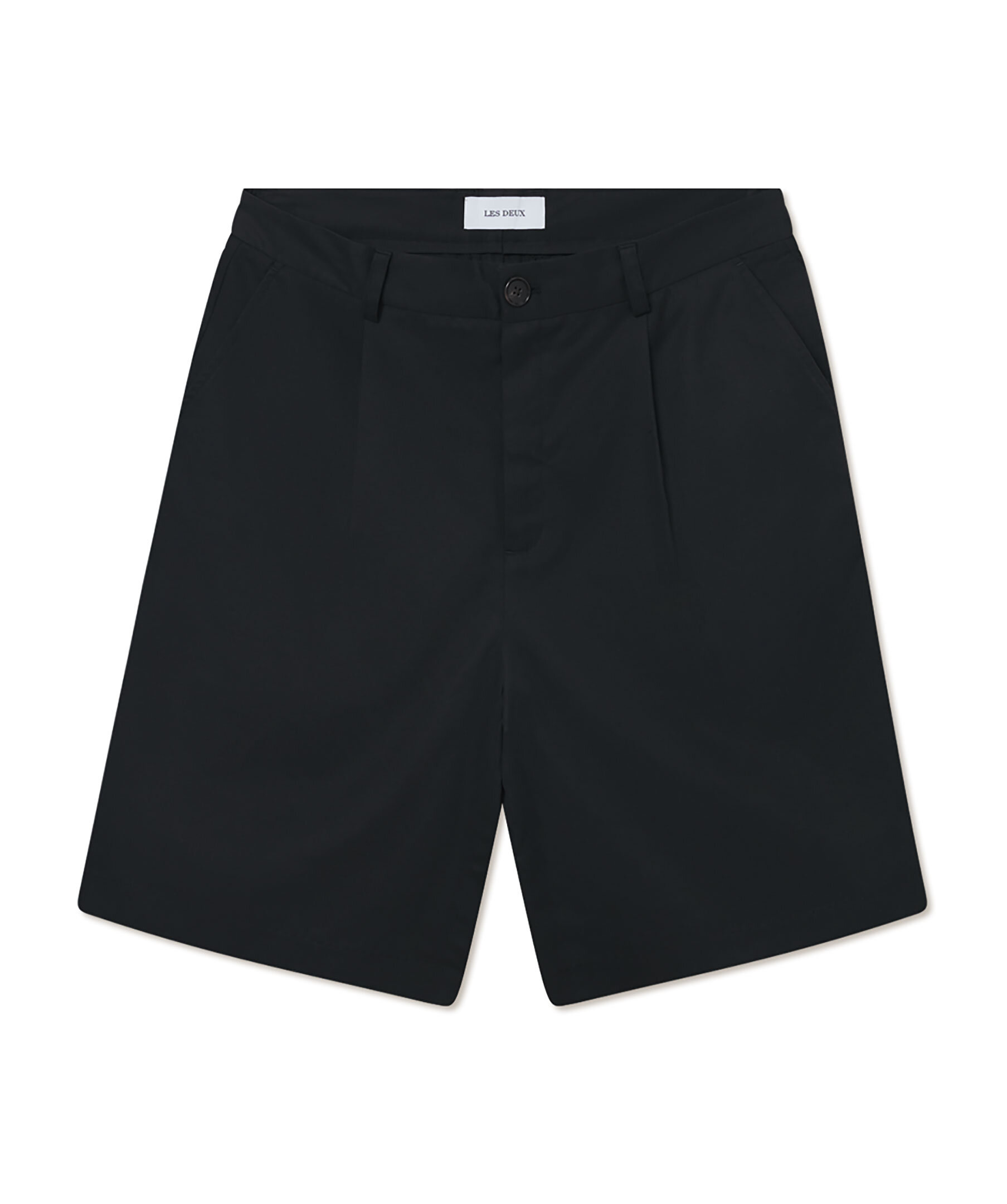 Svarta shorts från Les Deux. Shortsen har en kostymliknande skärning, bälteshällor i midjan, sidfickor, passpoalfickor baktill samt plissering i vintagestil. Tillverkade i en lyocell- och bomullblandning.