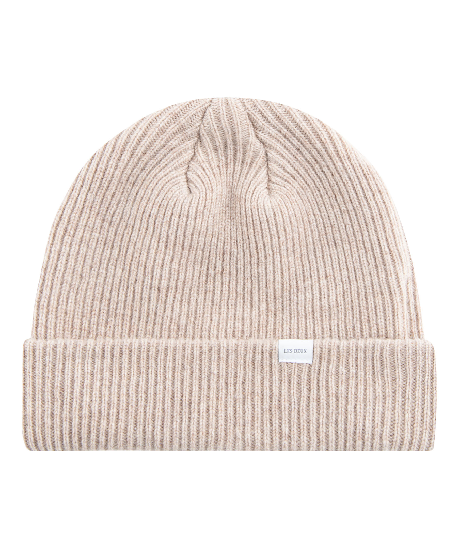 Benvit ribbstickad mössa i Ull från Les Deux. Uppvikt kant med liten logotyp.