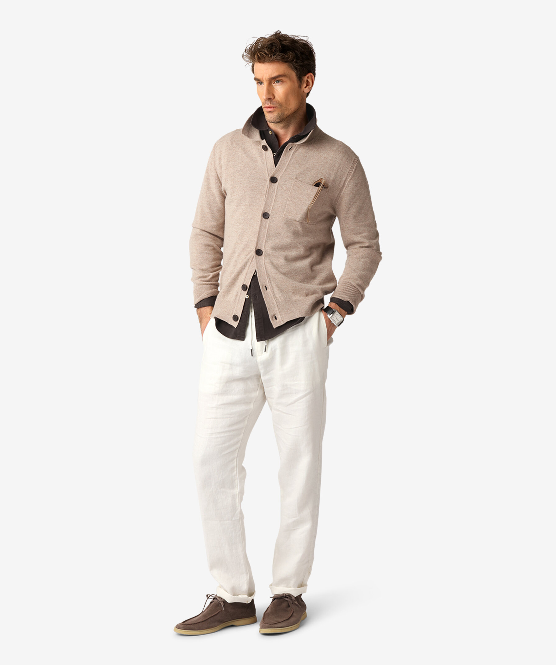 En stilren cardigan tillverkad i en exklusiv blandning av merinoull och kashmir. Den mjuka och lätta stickningen ger naturlig värme och komfort samtidigt som silhuetten förblir ren och elegant. Ett mångsidigt plagg för lager på lager.
