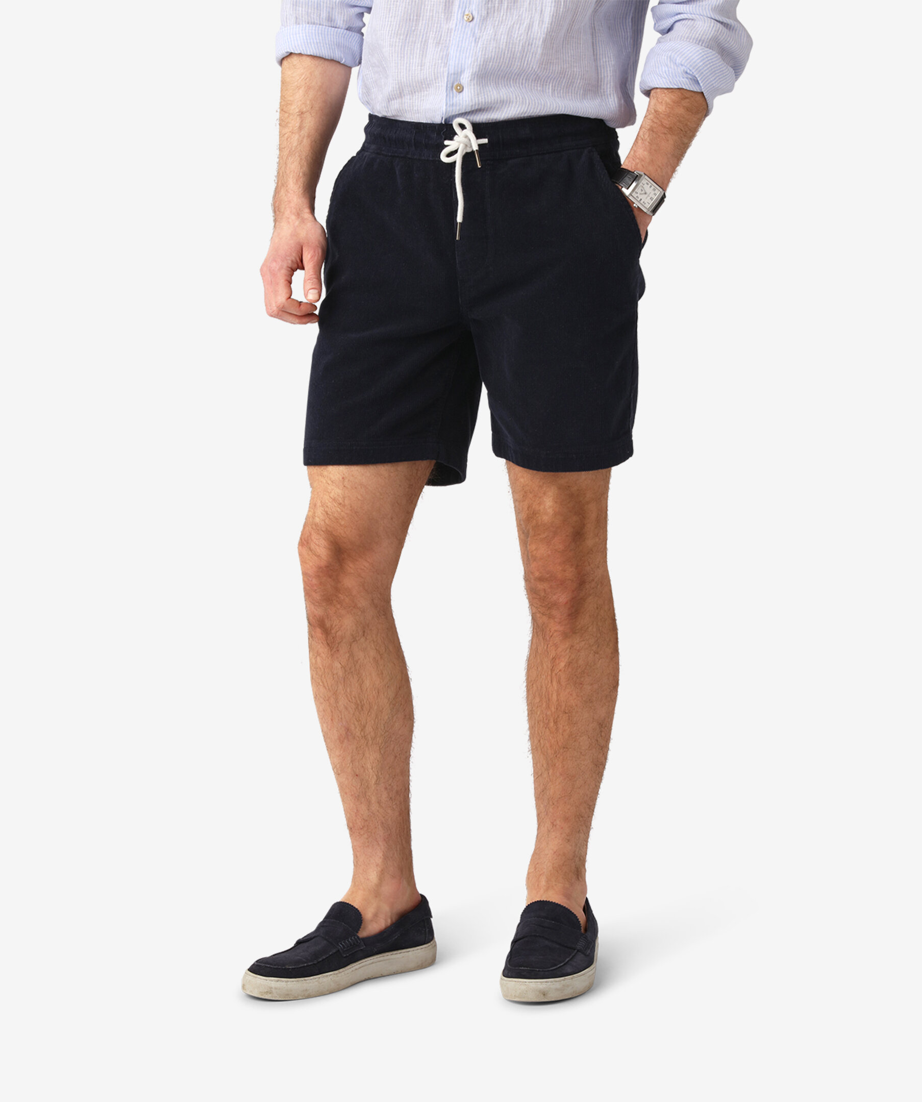 Ett par stilrena shorts tillverkade i 100% bomull med klassisk manchesterstruktur. Det mjuka tyget ger både komfort och karaktär, medan den elastiska midjan med dragsko skapar en avslappnad och modern passform perfekt för varmare dagar.