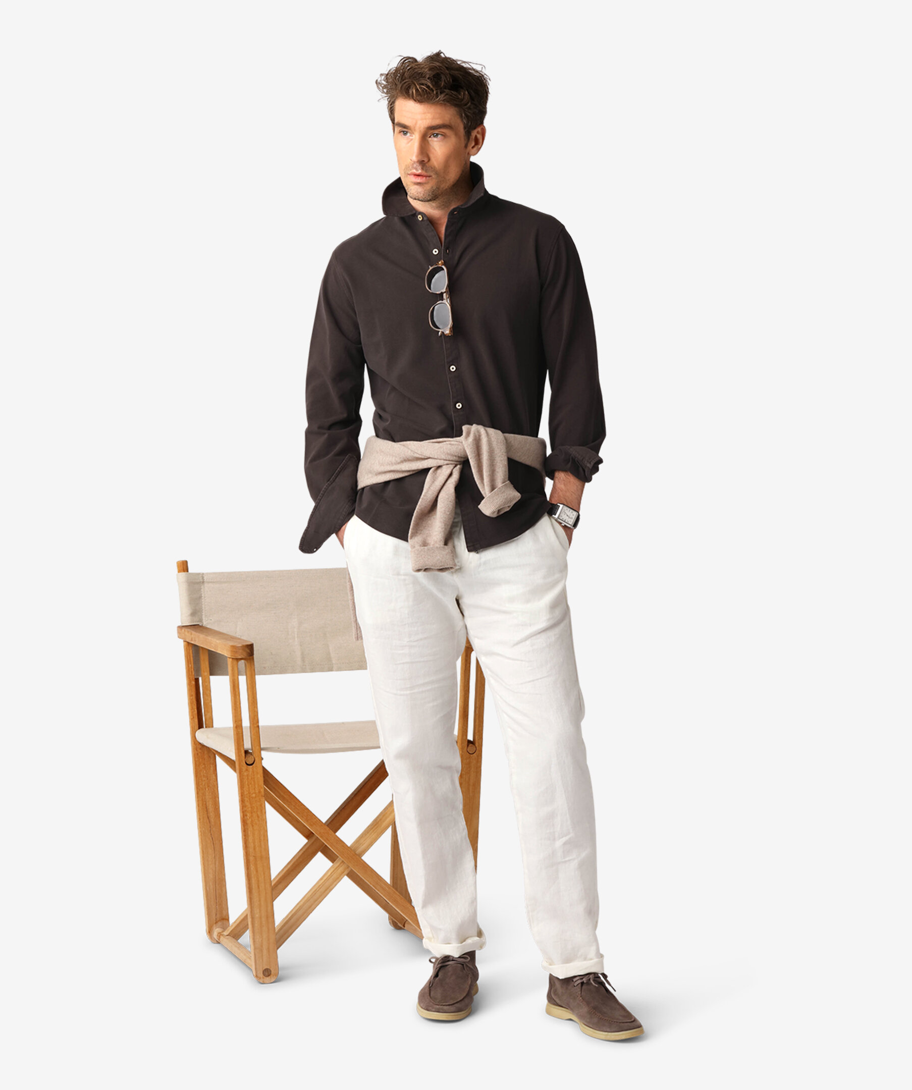 En elegant långärmad pikétröja tillverkad i mjuk och luftig bomull. Den rena silhuetten och den klassiska kragen ger ett modernt alternativ till den traditionella skjortan, samtidigt som den behåller en avslappnad elegans.