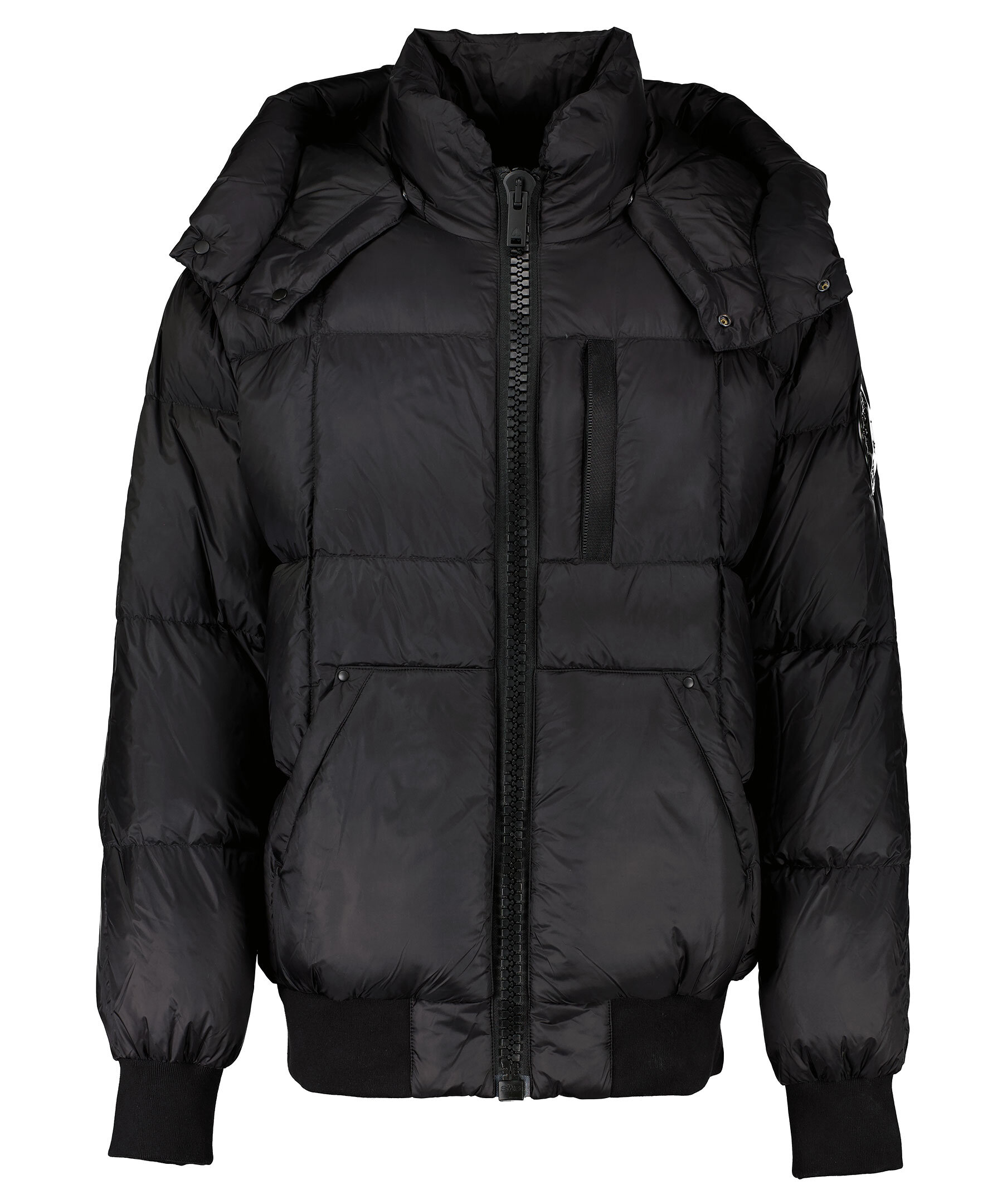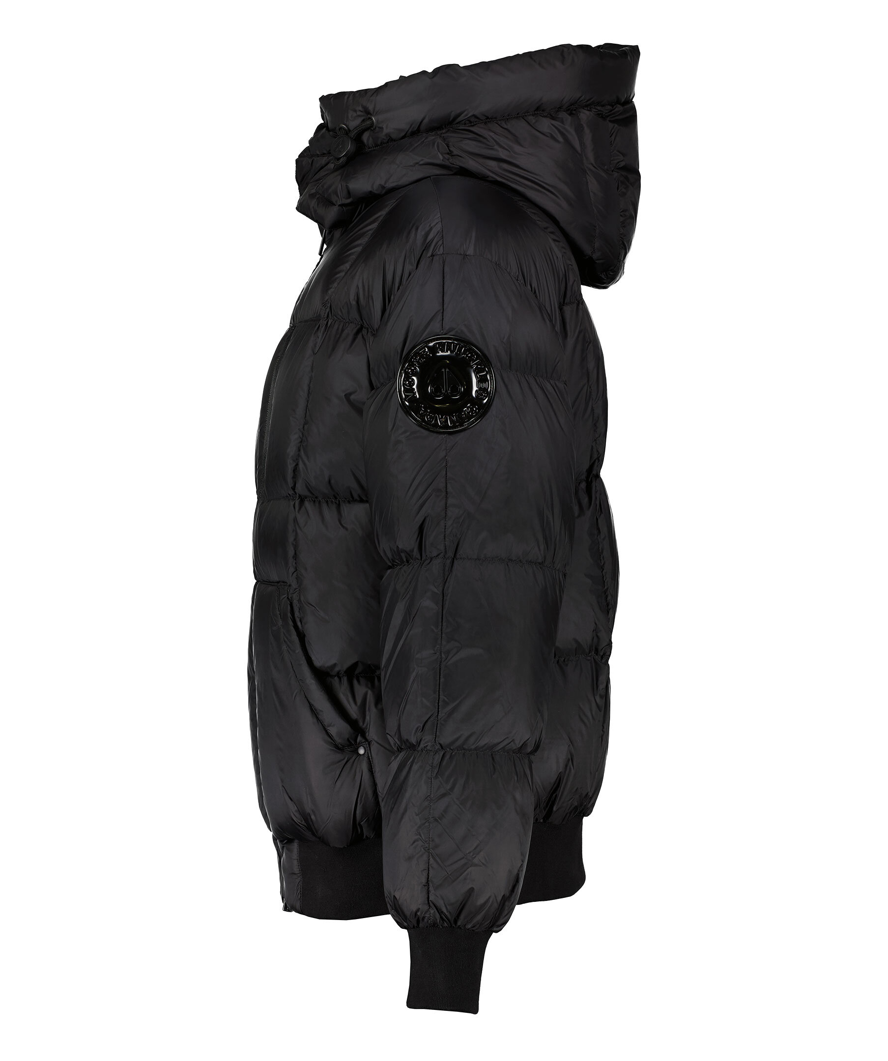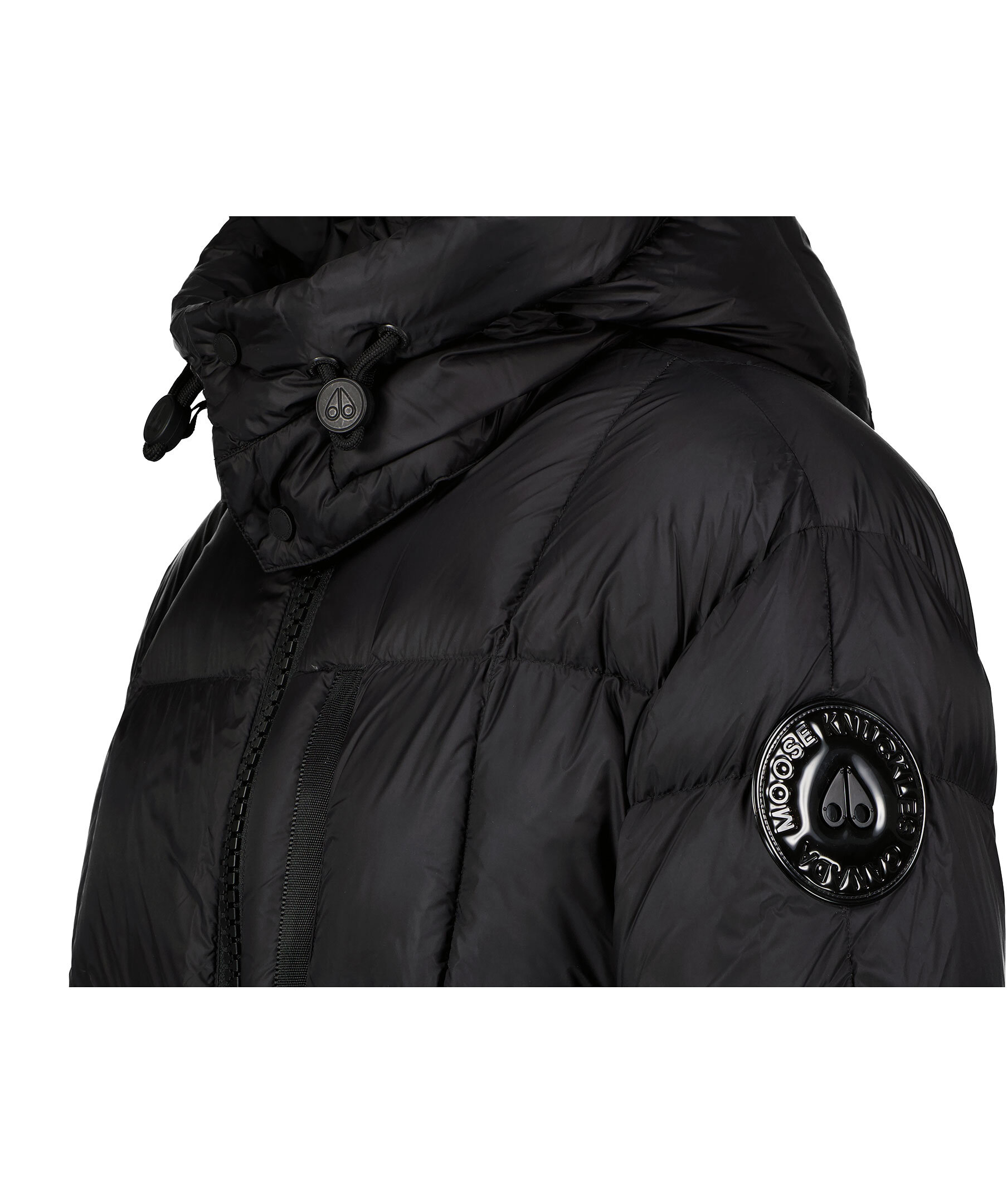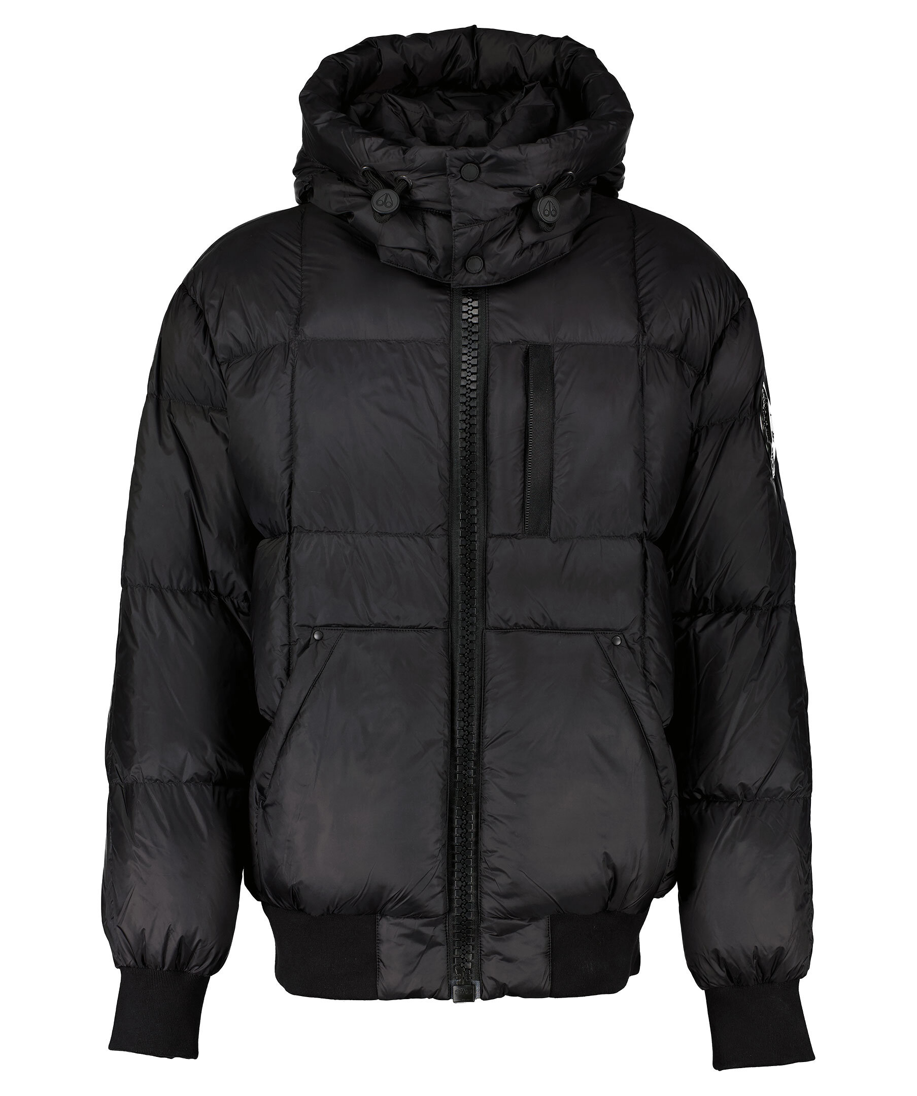 Svart quiltad dunjacka från Moose Knuckles. Stängs framtill med dragkedja. Patch i plast med logotyp på vänster ärm. Ribbstickad mudd vid ärm- och plaggslut. Två fickor framtill på magen, en bröstficka som stängs med dragkedja. Avtagbar luva med dragsko.
