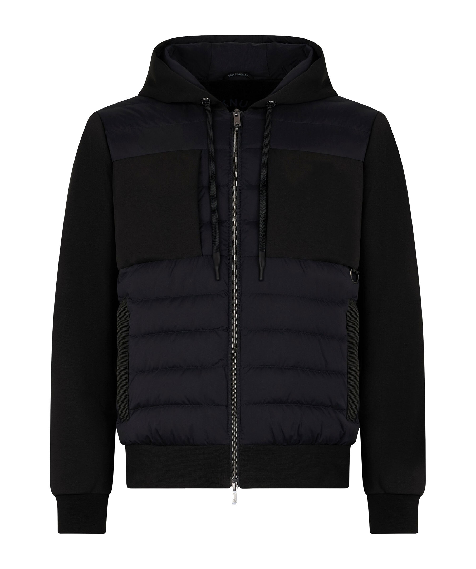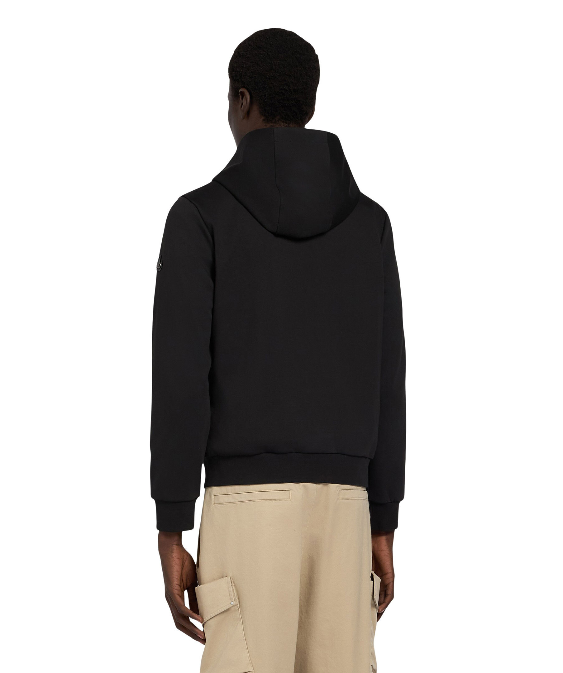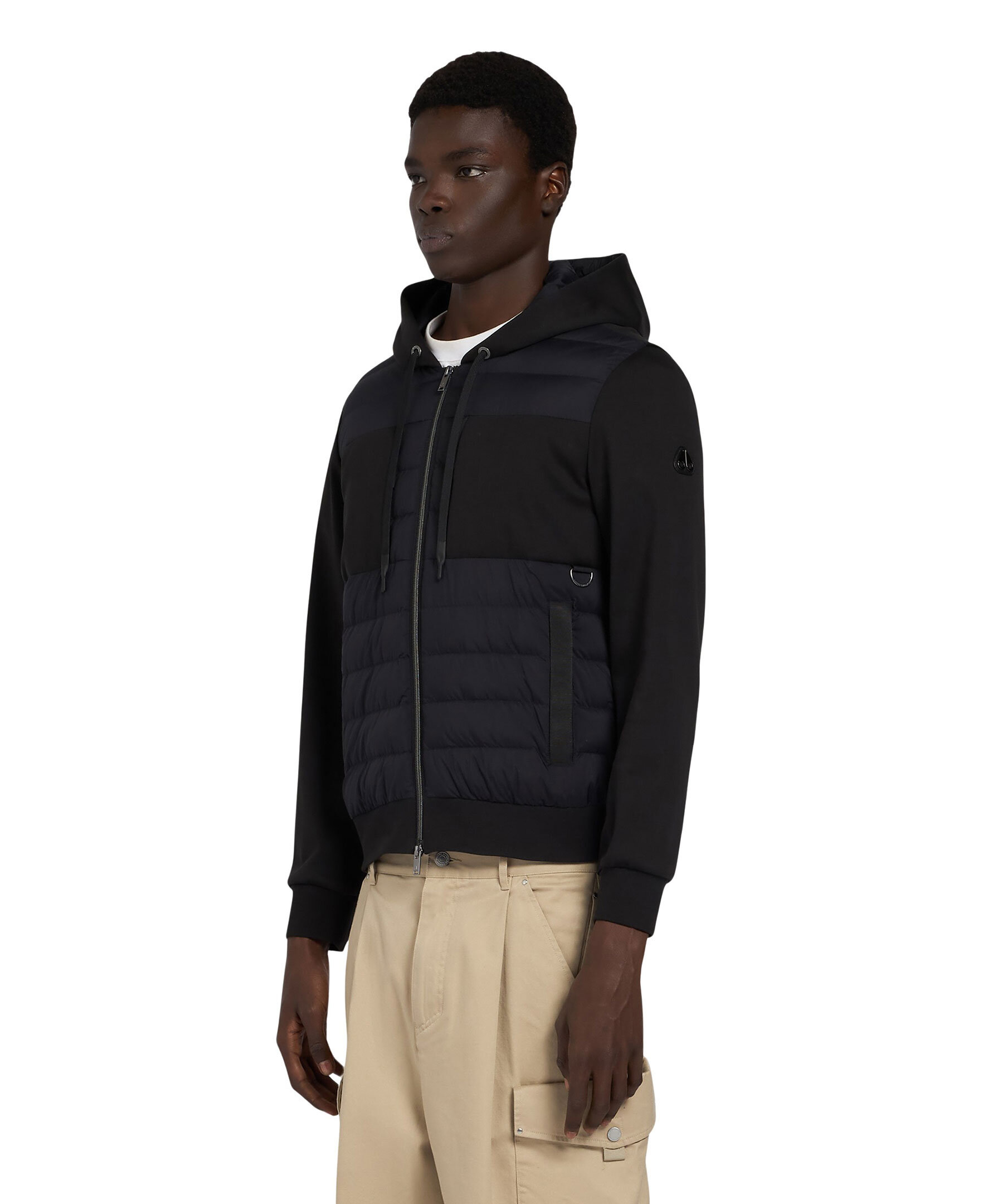 Svart hybridjacka från Moose Knuckles. Jackan stängs med tvåvägsdragkedja framtill och har två sidfickor, huva med dragsko samt logotyp i metall på ena ärmen. Tillverkad i en nylon- och bomullsblandning med dunfyllning.