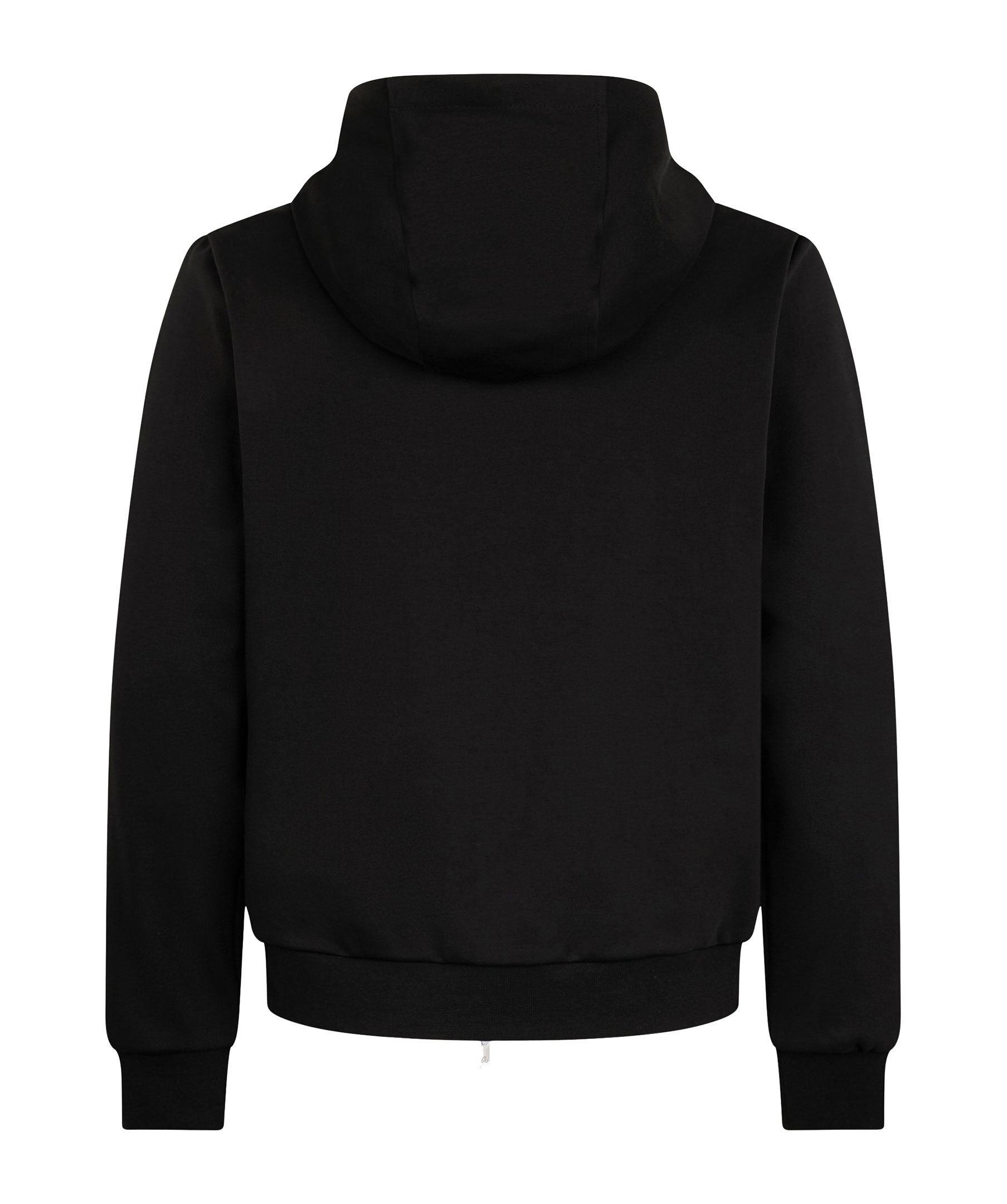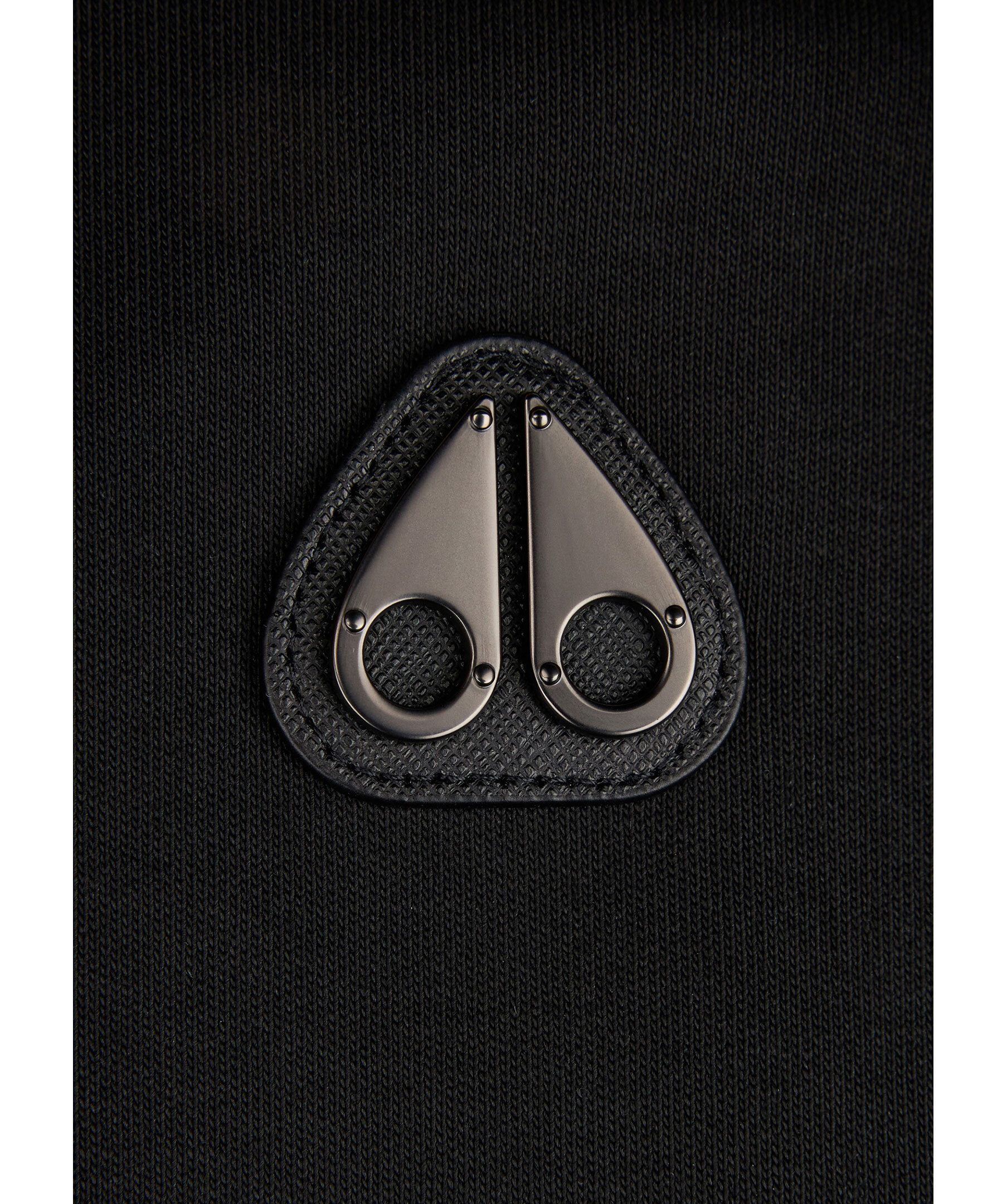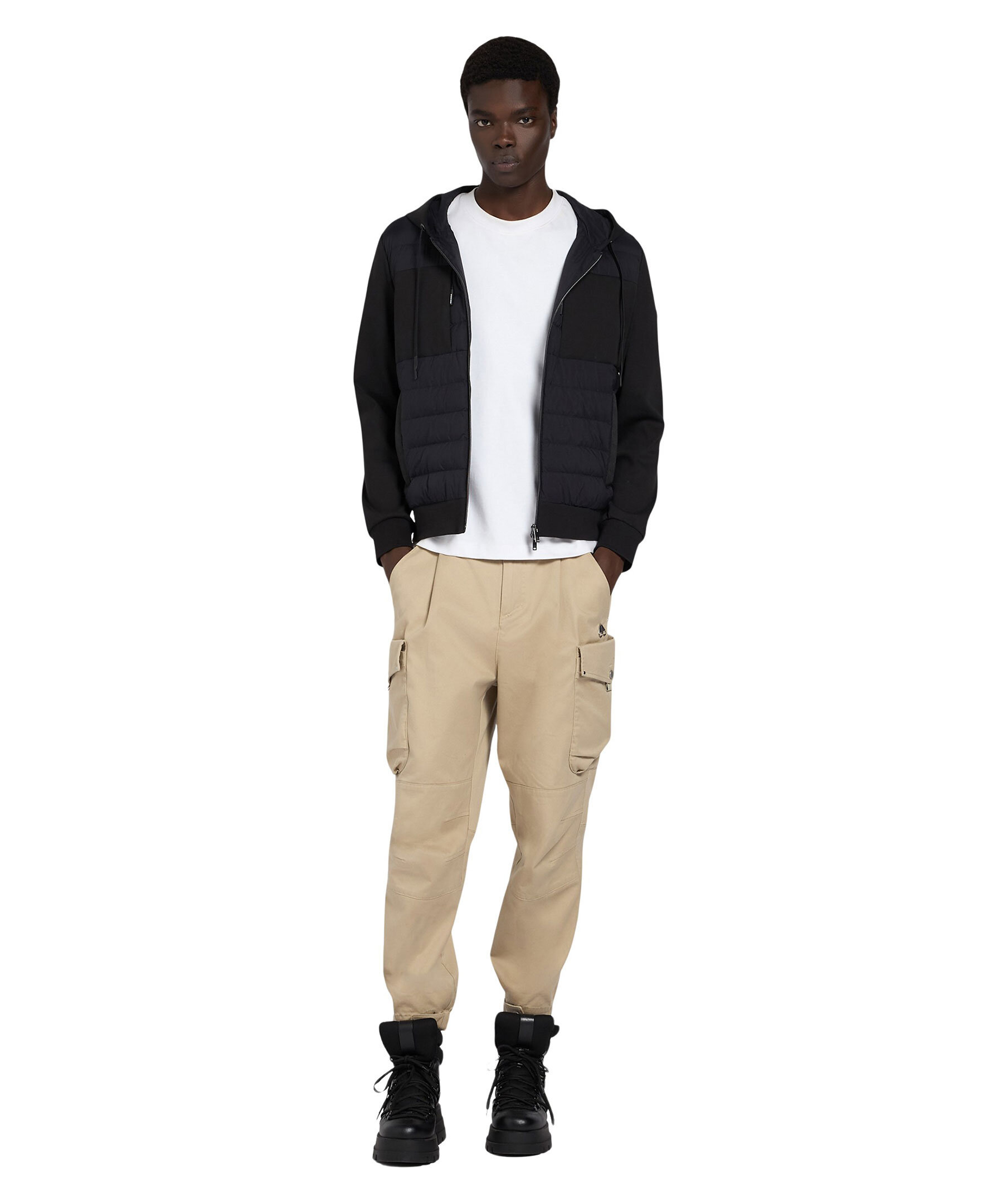 Svart hybridjacka från Moose Knuckles. Jackan stängs med tvåvägsdragkedja framtill och har två sidfickor, huva med dragsko samt logotyp i metall på ena ärmen. Tillverkad i en nylon- och bomullsblandning med dunfyllning.
