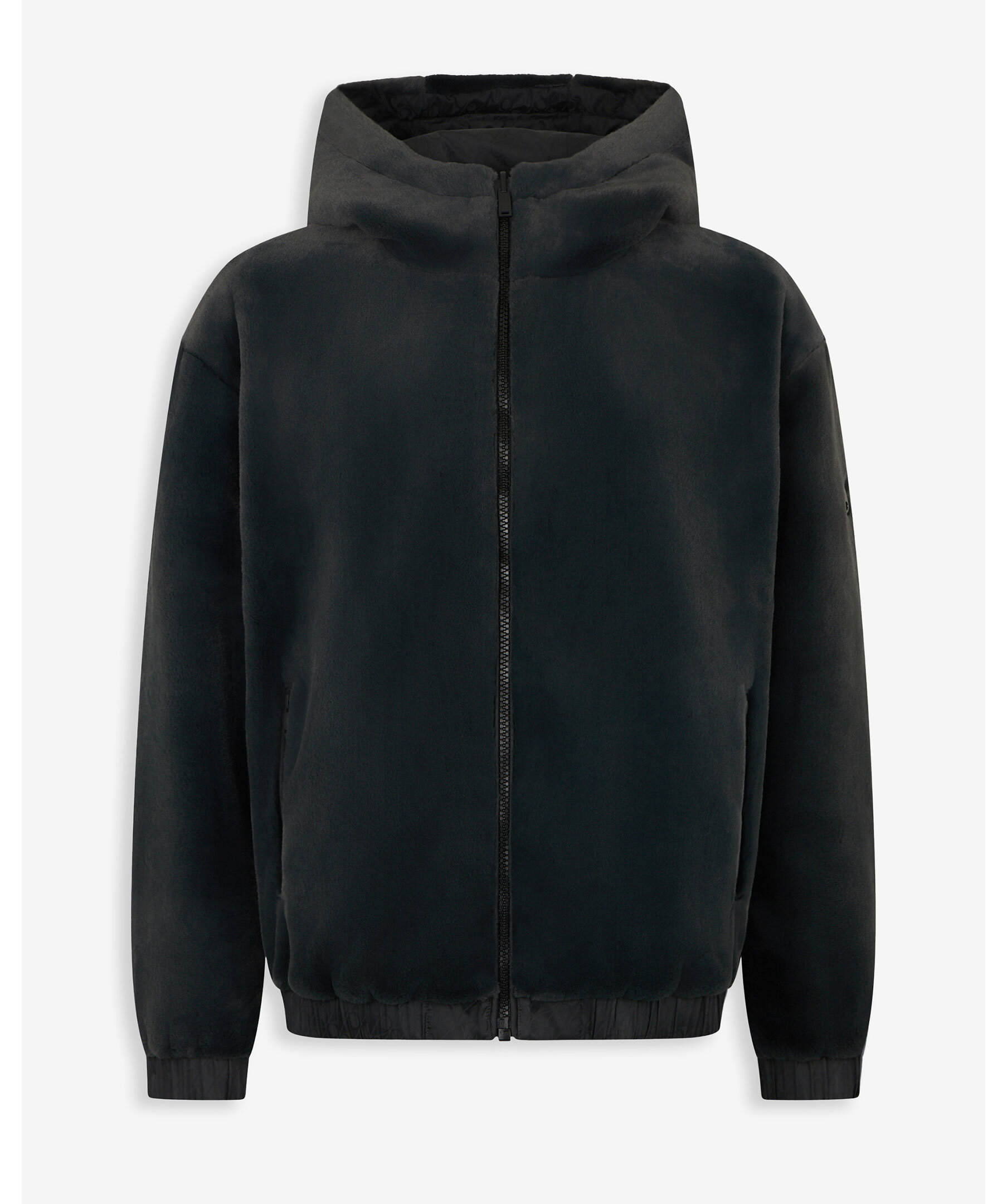 Jacka från Moose Knuckles som kan vändas ut och in. Ena sidan är slät och vattenresistent, andra är i fluffig faux fur. Snören och dragsko för huvan. Logga på vänster ärm.