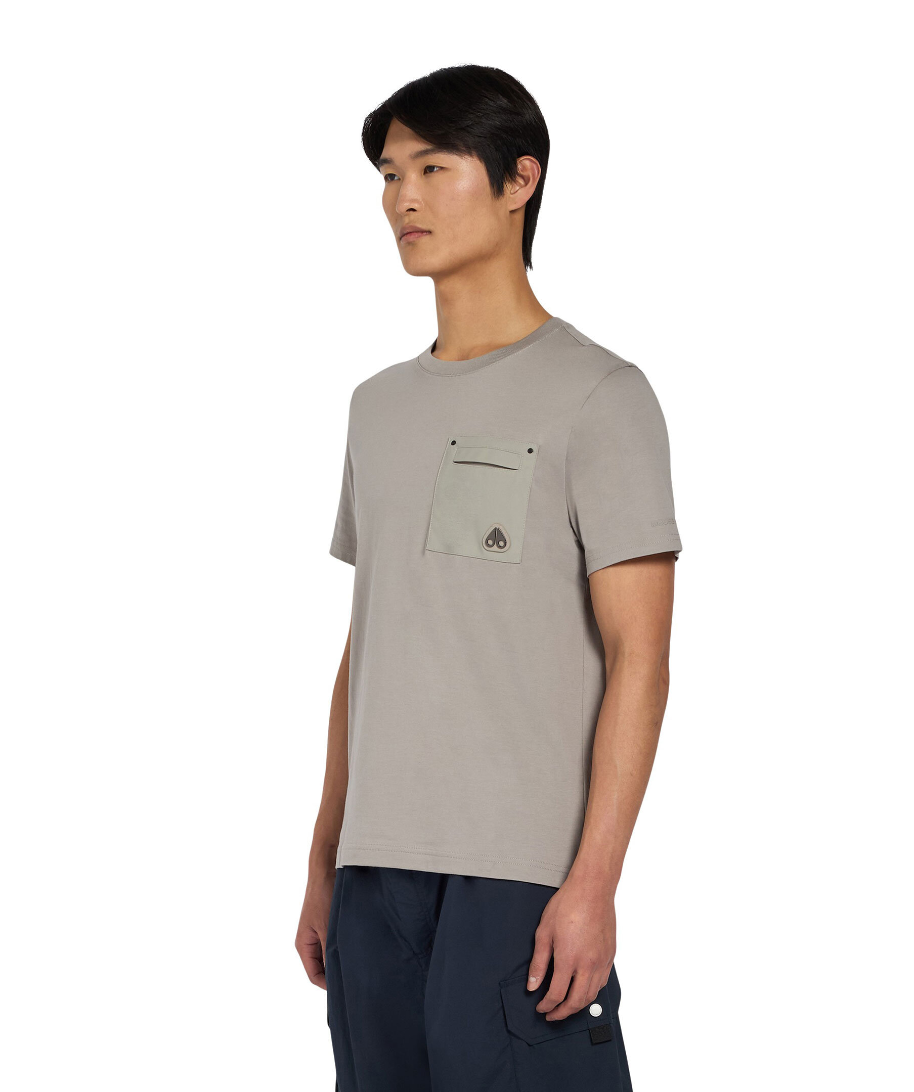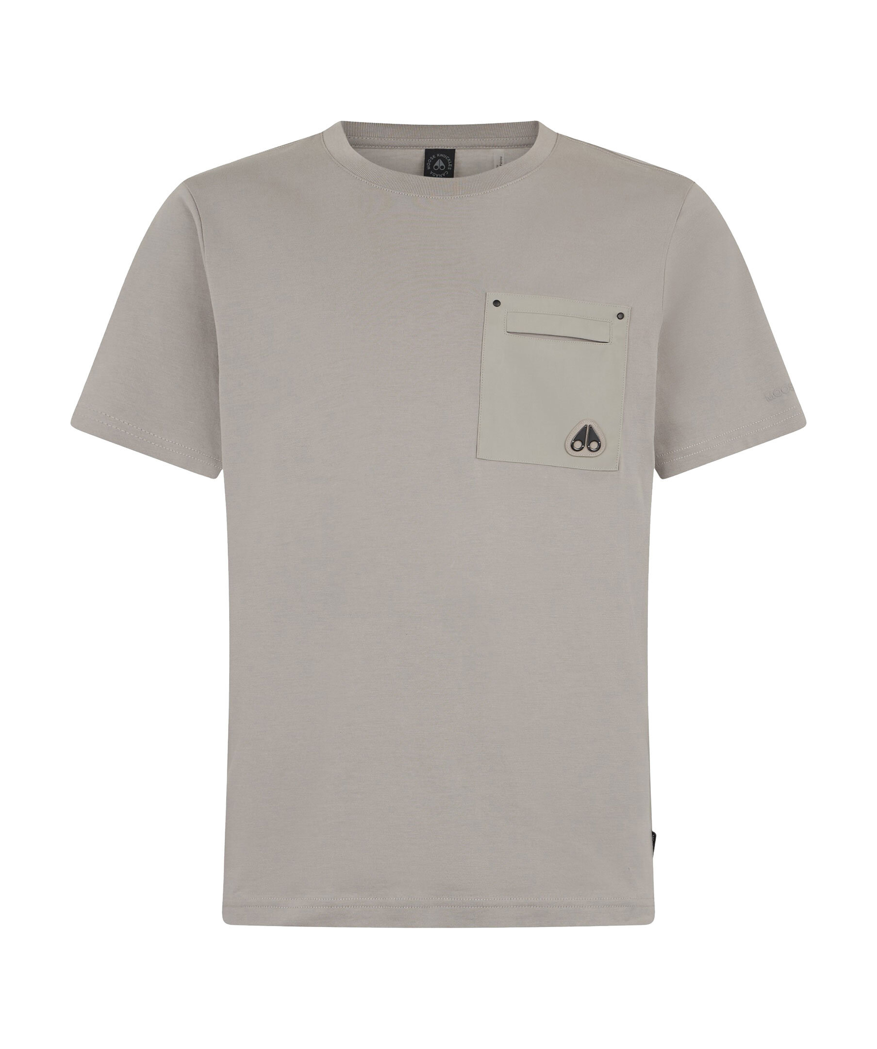 Greige t-shirt från Moose Knuckles. Bröstficka med logotyp. Tillverkad i bomull.