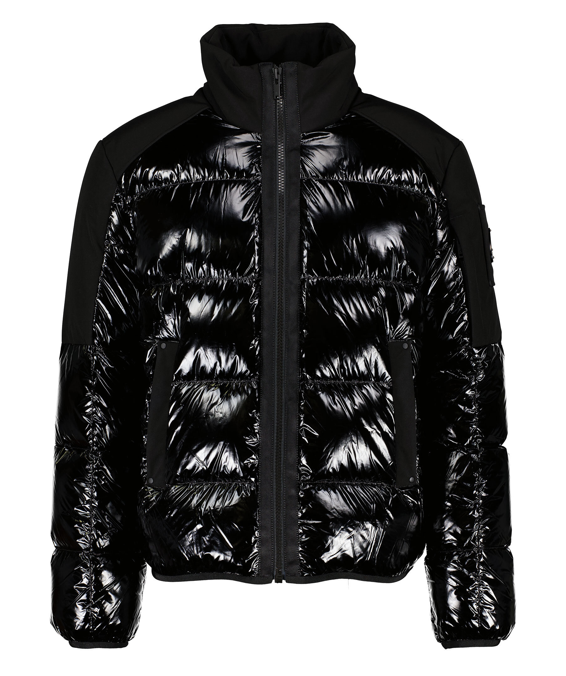 Svart, glansig pufferjacka från Moose Knuckles. Dugald Puffer ger en dualistisk version av kallt väderskydd som fungerar perfekt i staden. Packad med kraftfull 90/10 RDS-certifierad dunisolering som ger 800 fyllningskraft, den har en glansig finish som kontrasteras av ett slätt, stretchigt skal för att erbjuda ökad rörelsefrihet och varaktig värme. Midjefickor, invändiga fickor med dragkedjor och en signatur Moose Knuckles-logolapp på ärmen kompletterar den urbana delen. Avslappnad passform.