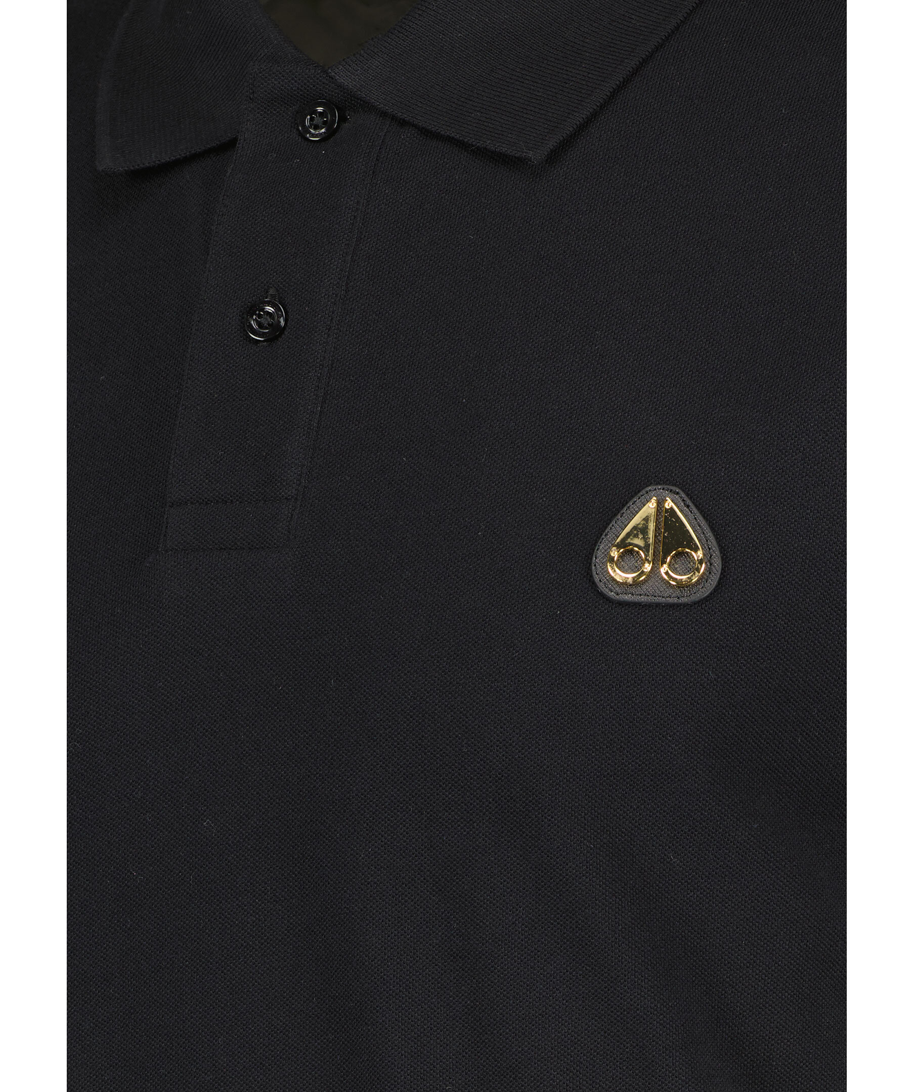 Svart pikétröja från Moose Knuckles. Pikén har korta ärmar, två knappar framtill, ribbstickade detaljer och en guldfärgad metallogotyp på bröstet. Tillverkad i bomull.