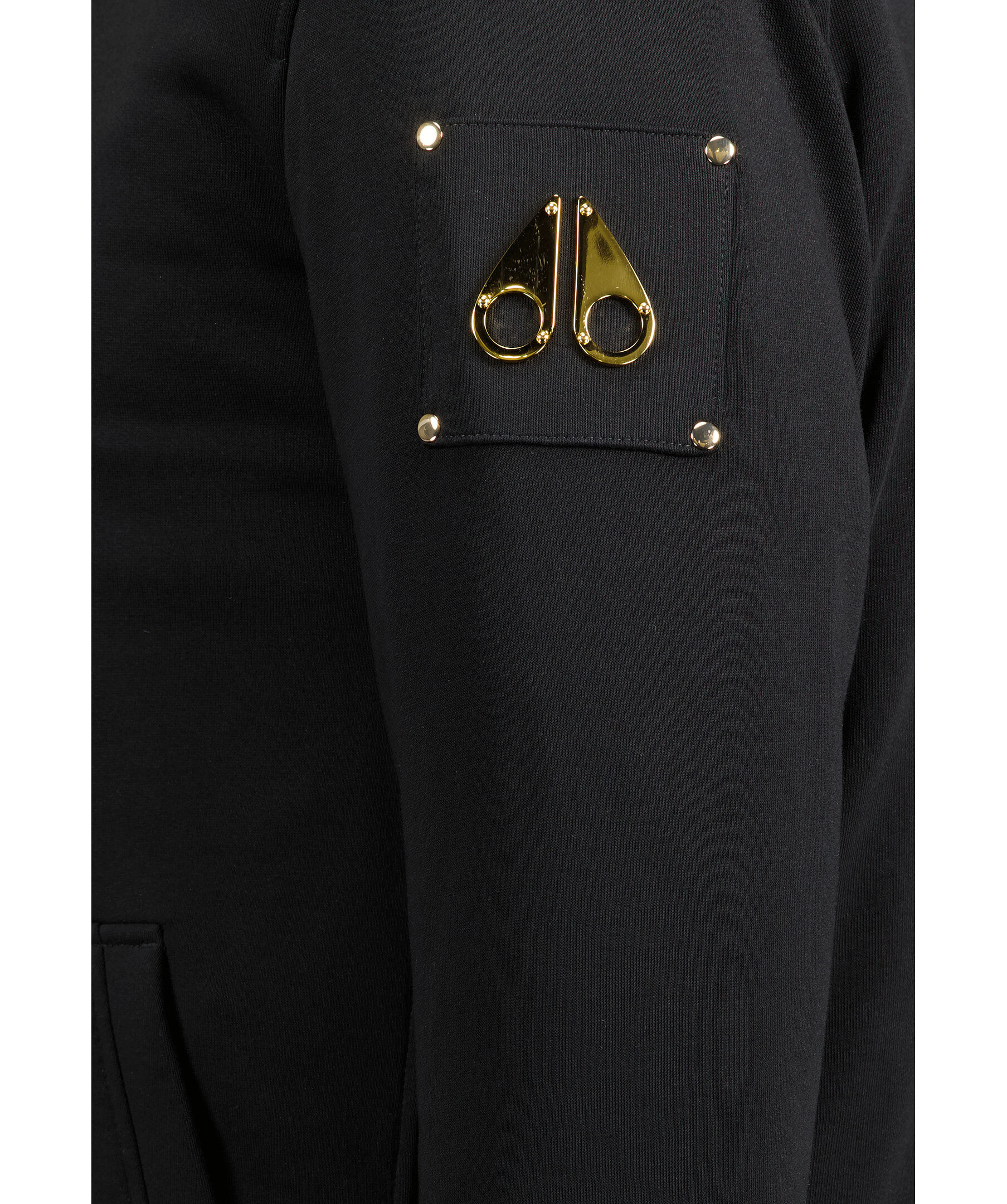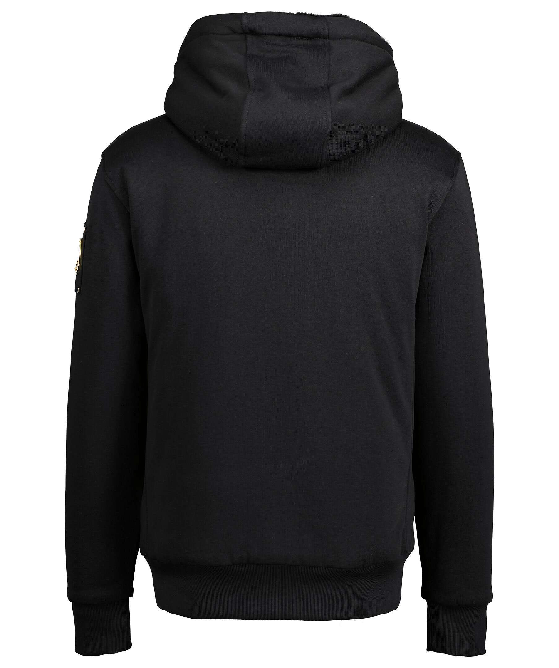 Svart hoodie med faux fur på insidan av luvan och dragkedjan. Guldfärgade detaljer, två fickor fram, en innerficka och logotyp på vänster ärm. Från Moose Knuckles.