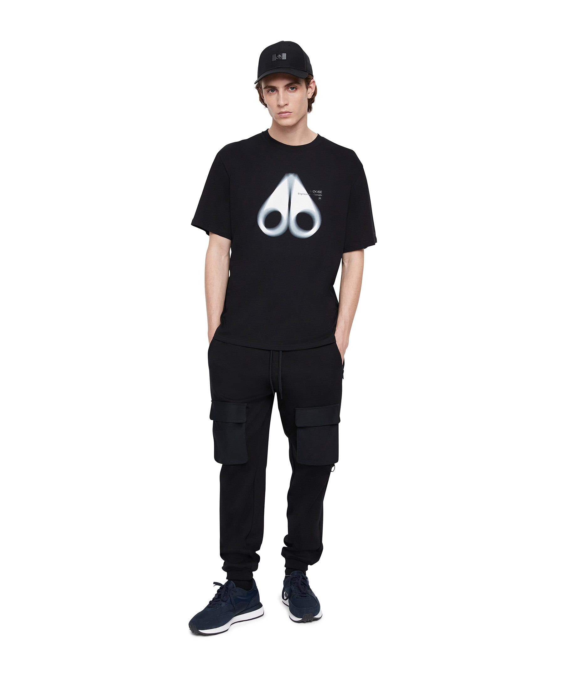 Svart T-shirt från Moose Knuckles. Rundad halsringning. Tryckt logotyp på bröstet. Gummerad logotyp på vänster bröst. Tillverkad i 100% Bomull.