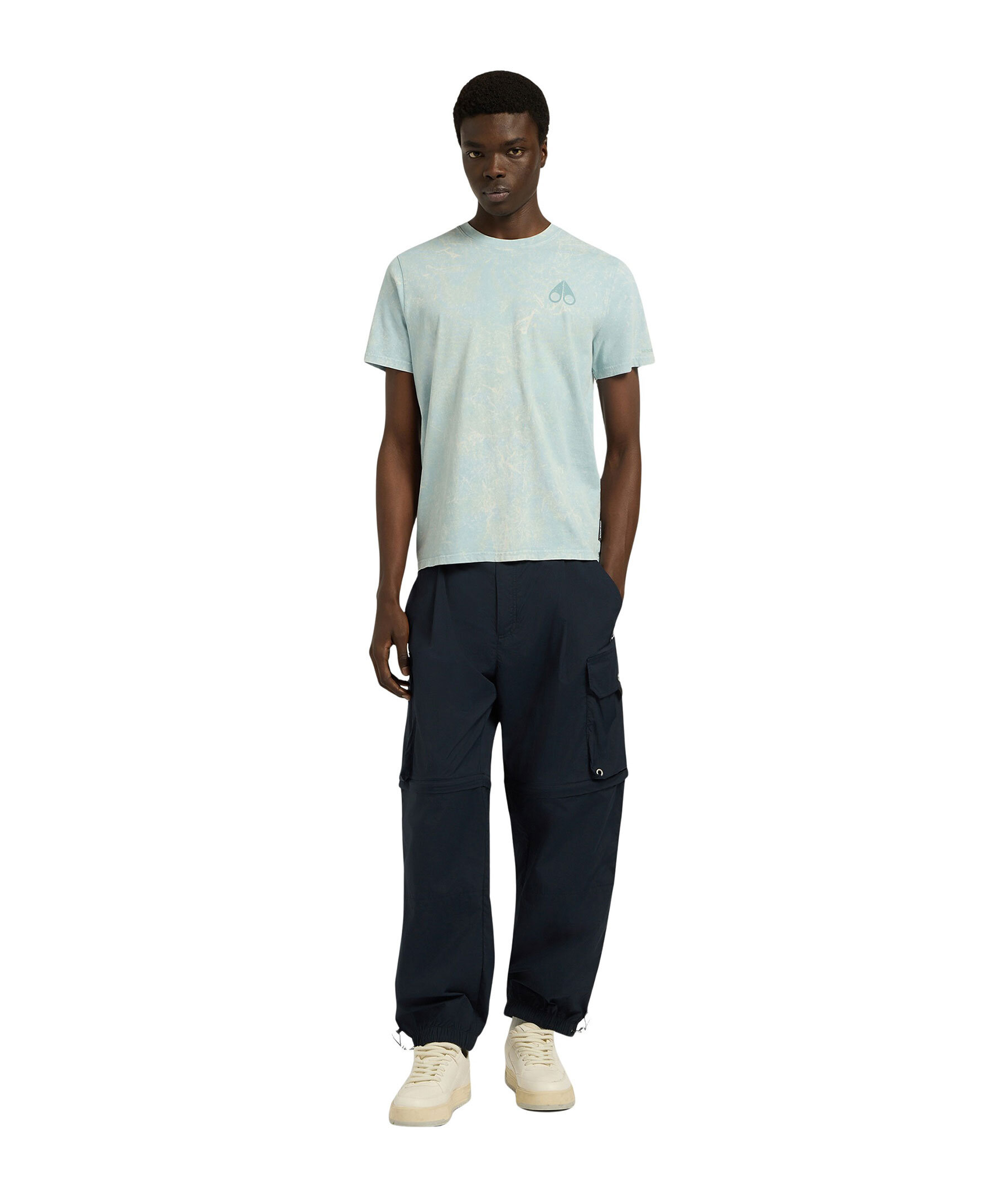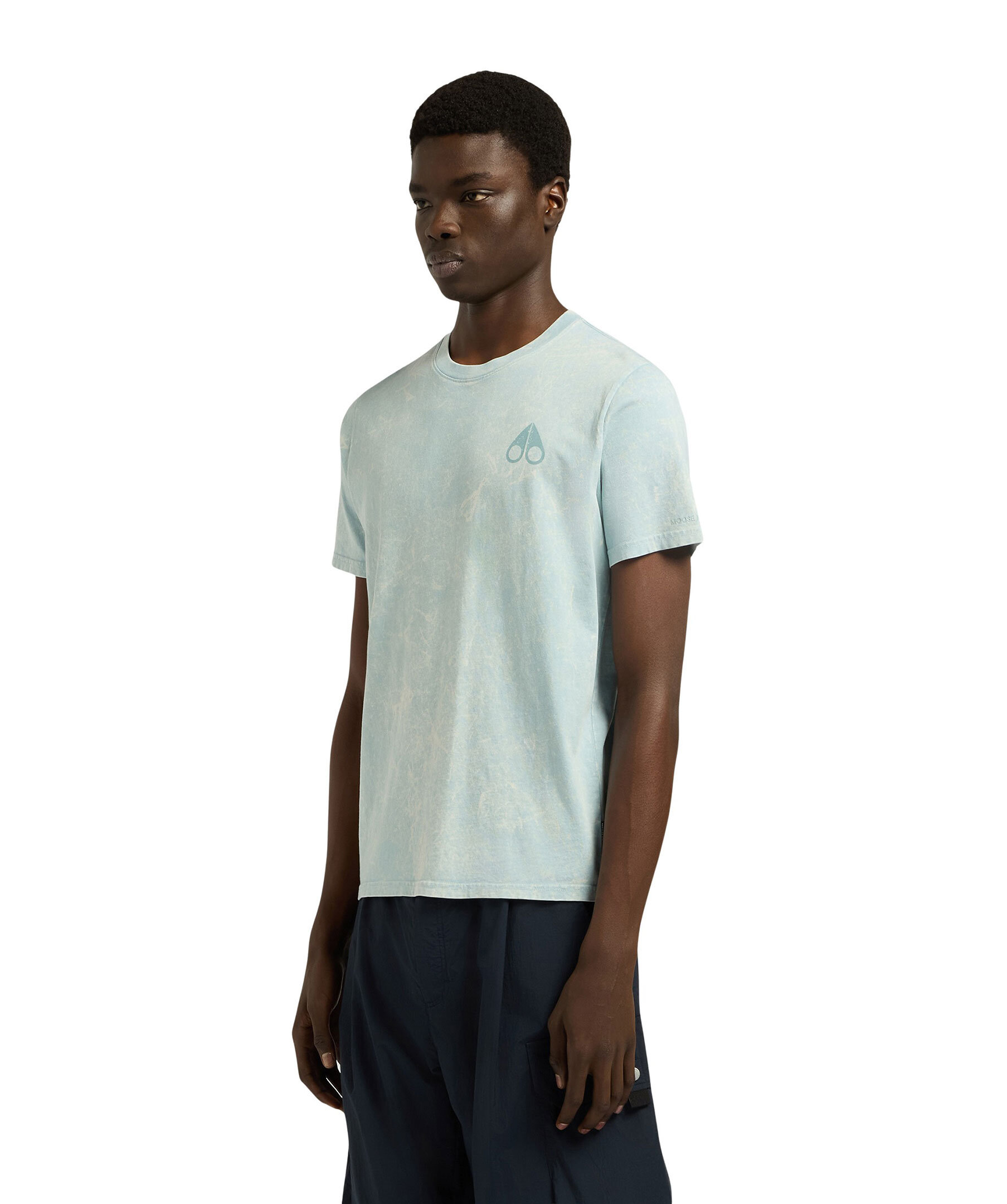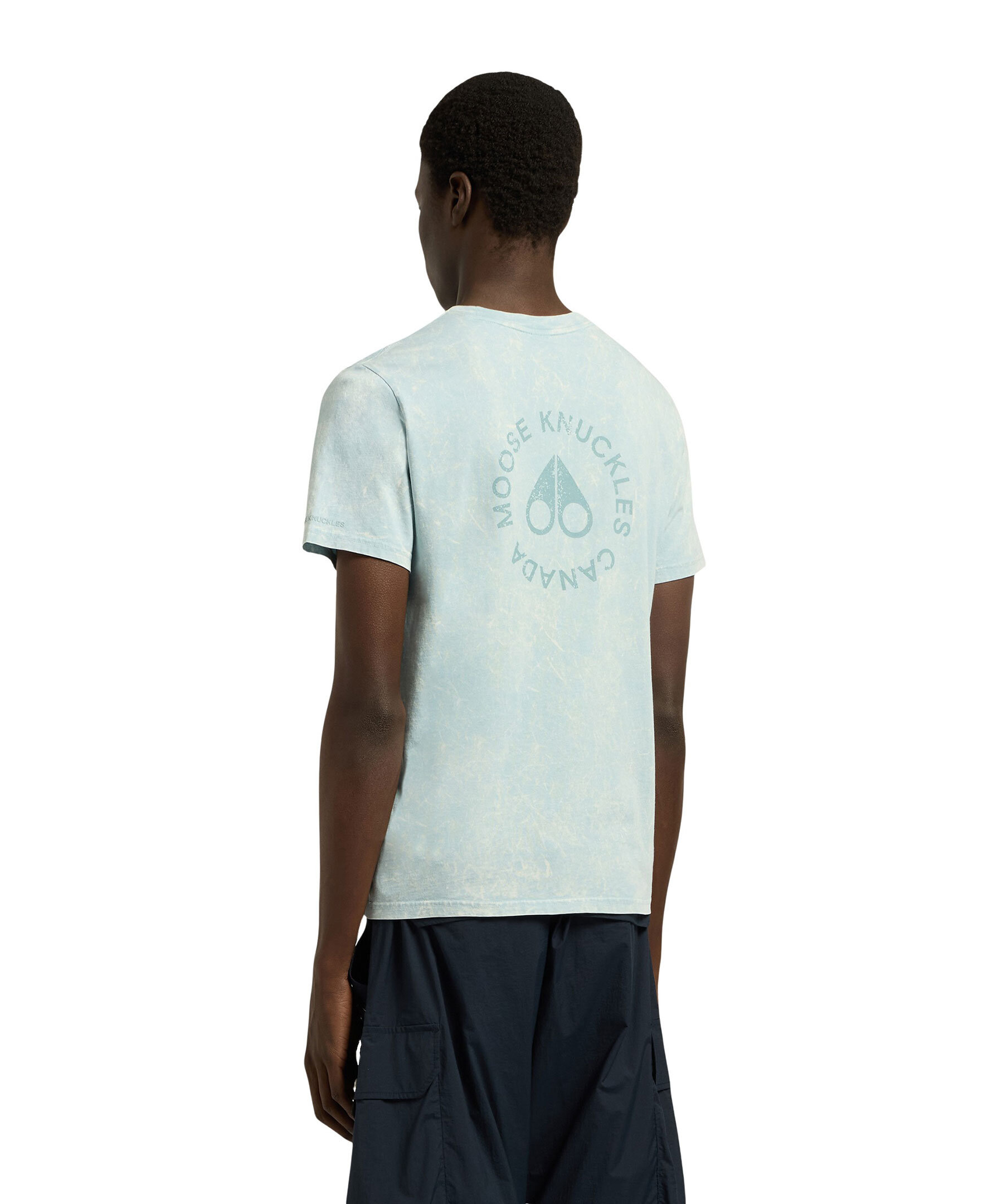 Turkosspräcklig T-shirt från Moose Knuckles. T-shirten har rundad halsringning, mindre logotyp på bröstet och ett stort logotyp tryck över ryggen. Tillverkad av bomull.
