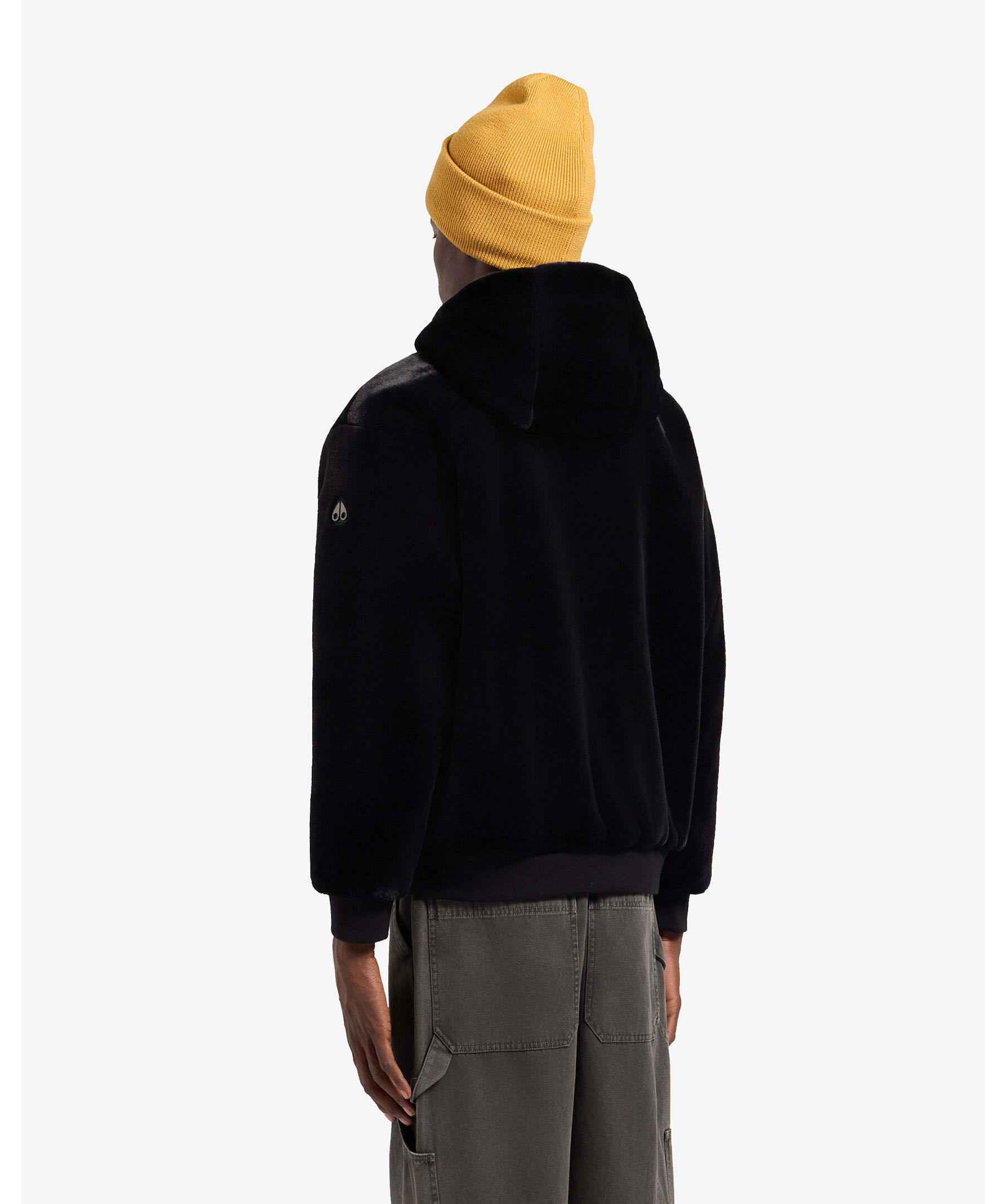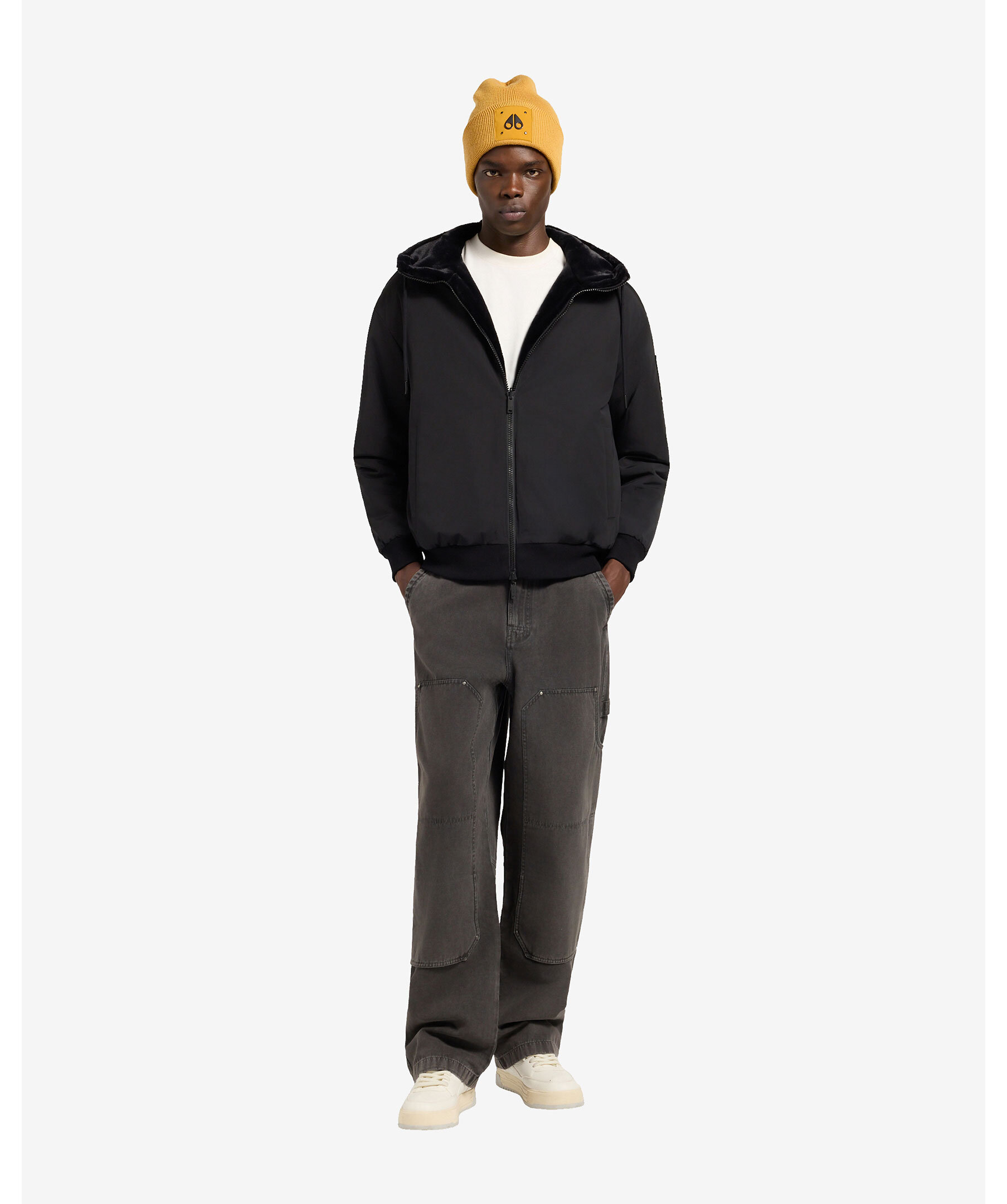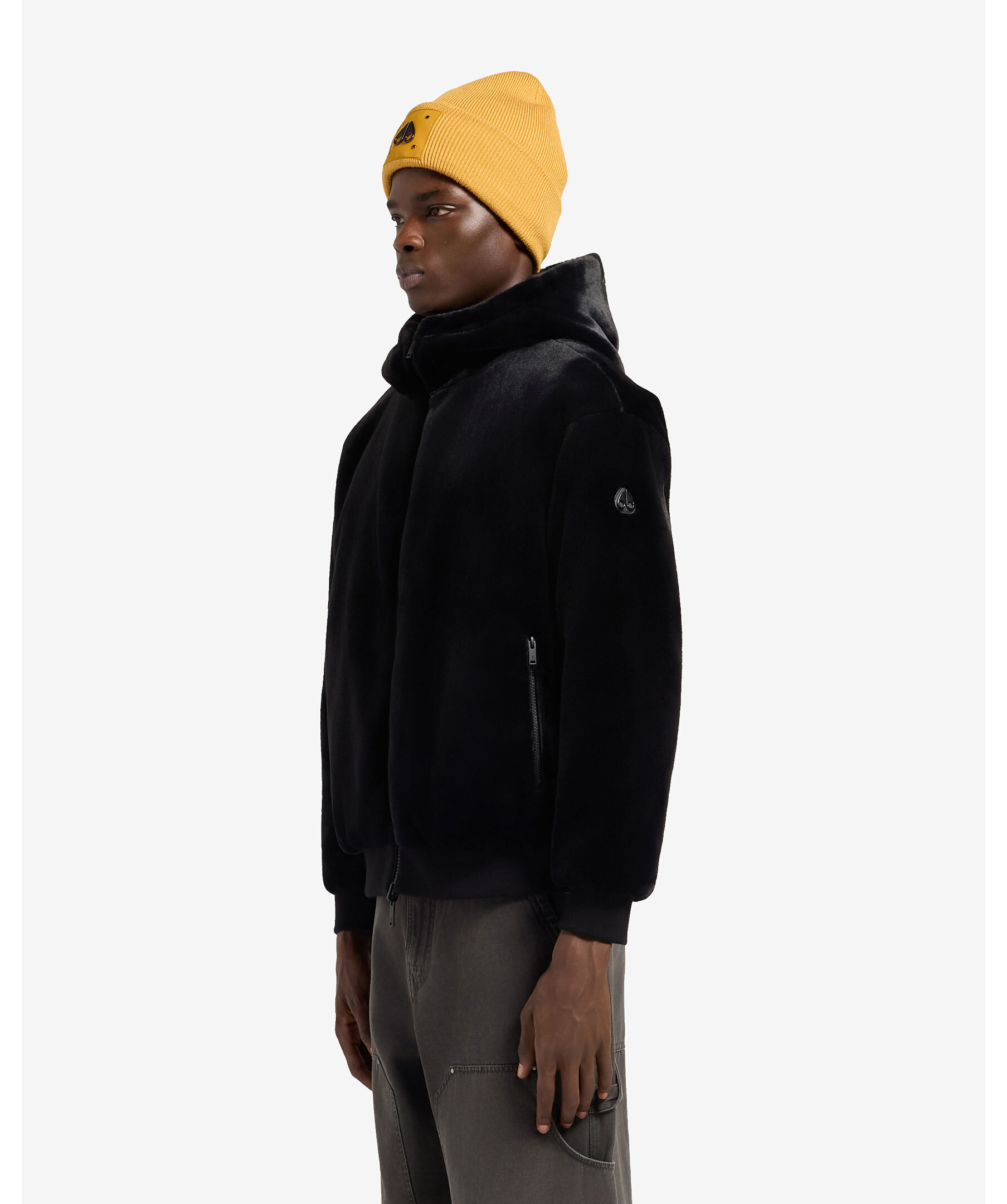 Jacka från Moose Knuckles som kan vändas ut och in. Den har lyxig fuskpäls på ena sidan och ett högpresterande yttertyg på den andra. Jackan har en justerbar huva, passpoalfickor på tygsidan, två fickor med dragkedja på fuskpälssidan samt en präglad logotyp på sidan.