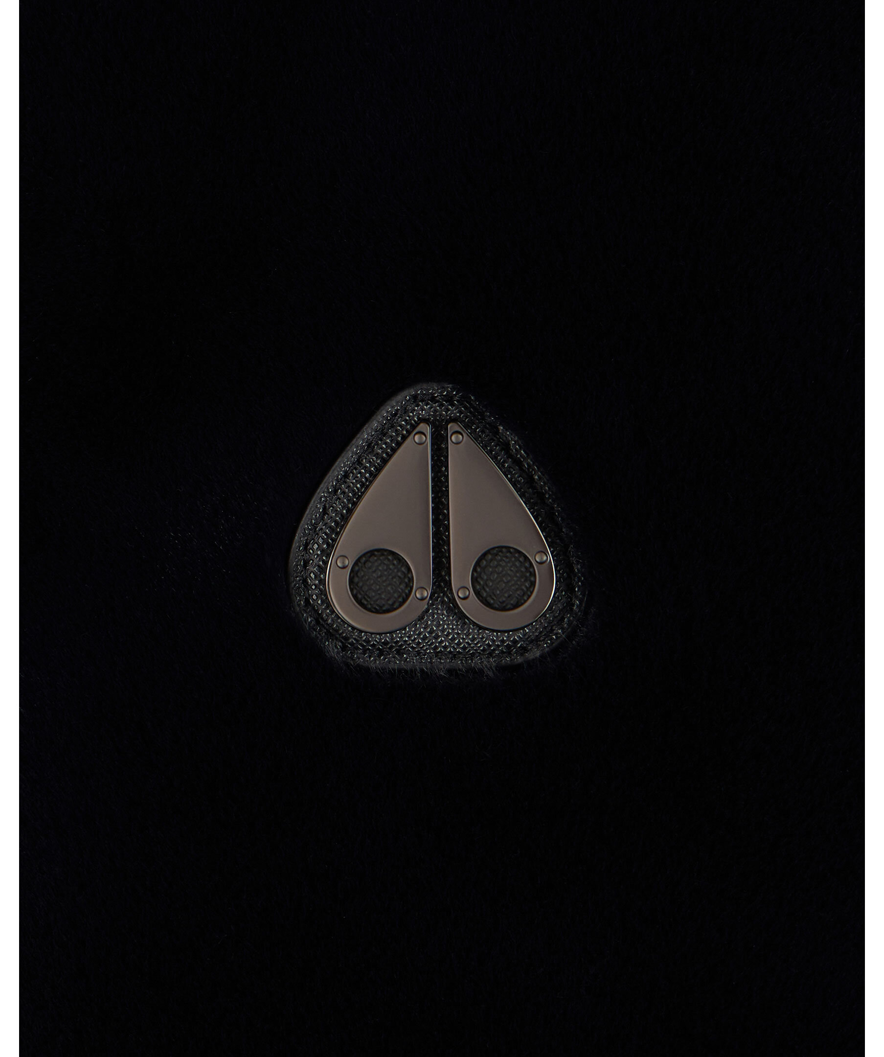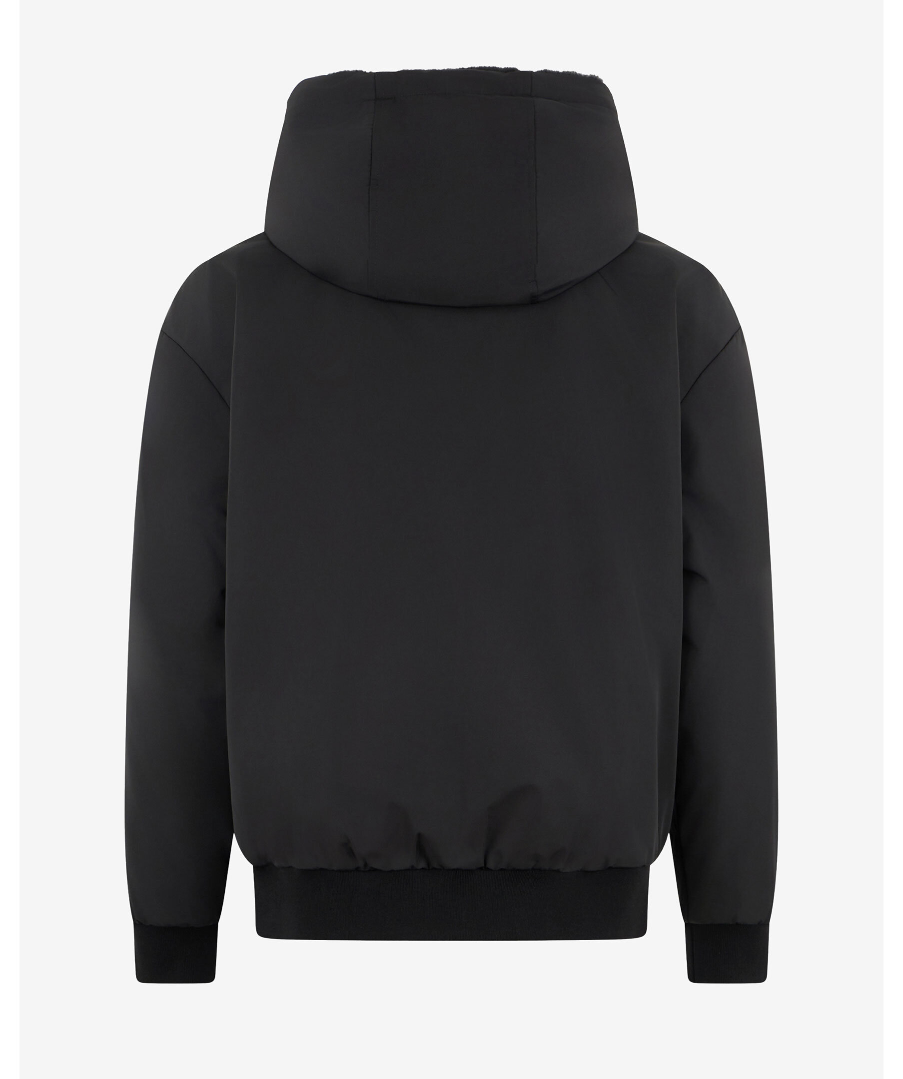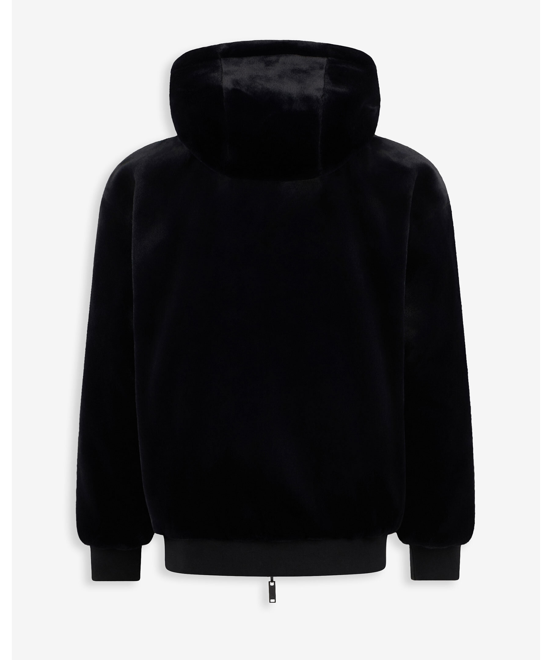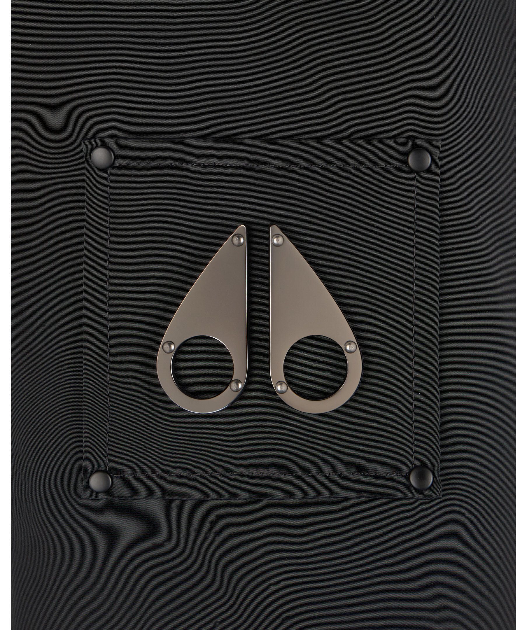 Jacka från Moose Knuckles som kan vändas ut och in. Den har lyxig fuskpäls på ena sidan och ett högpresterande yttertyg på den andra. Jackan har en justerbar huva, passpoalfickor på tygsidan, två fickor med dragkedja på fuskpälssidan samt en präglad logotyp på sidan.