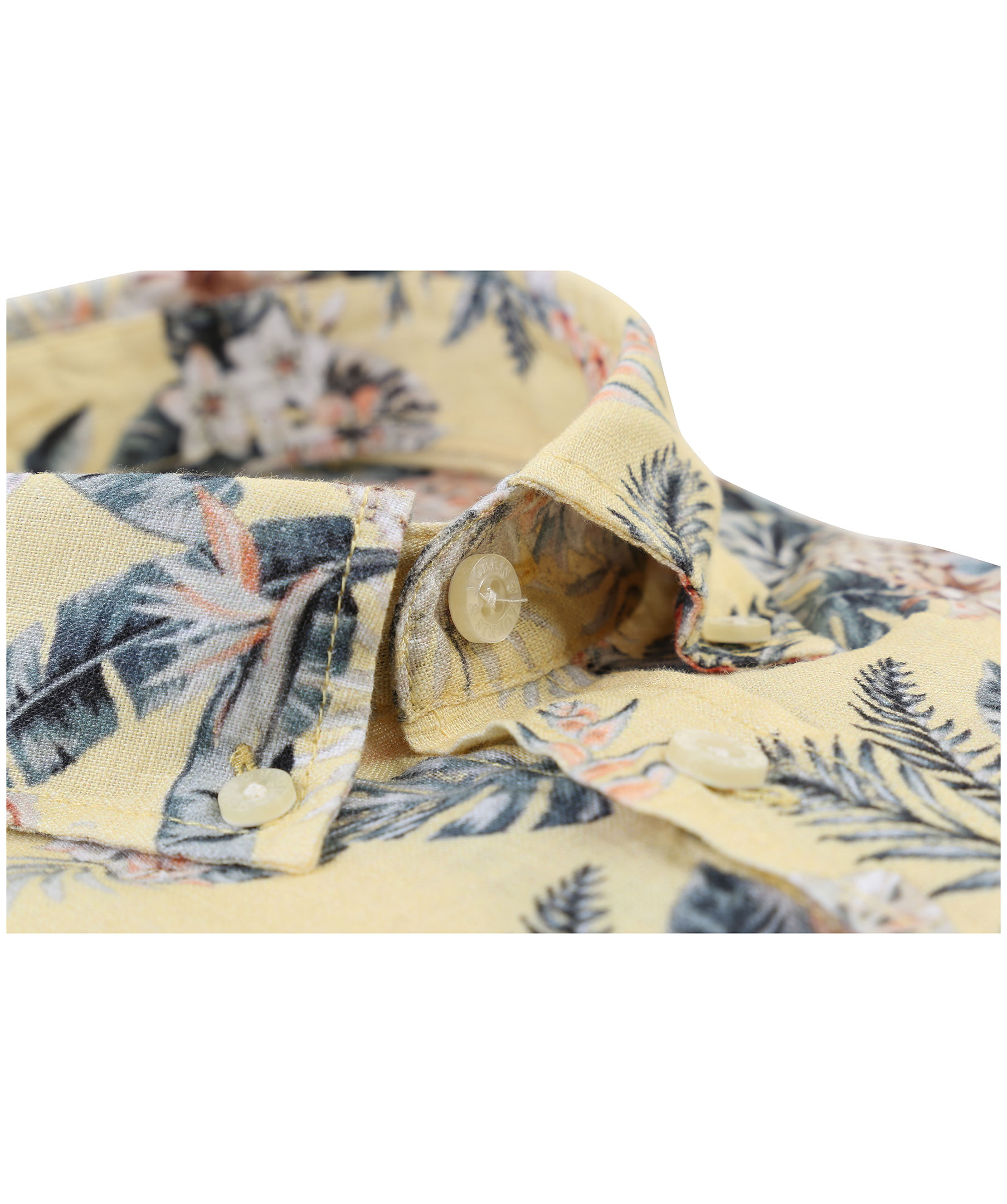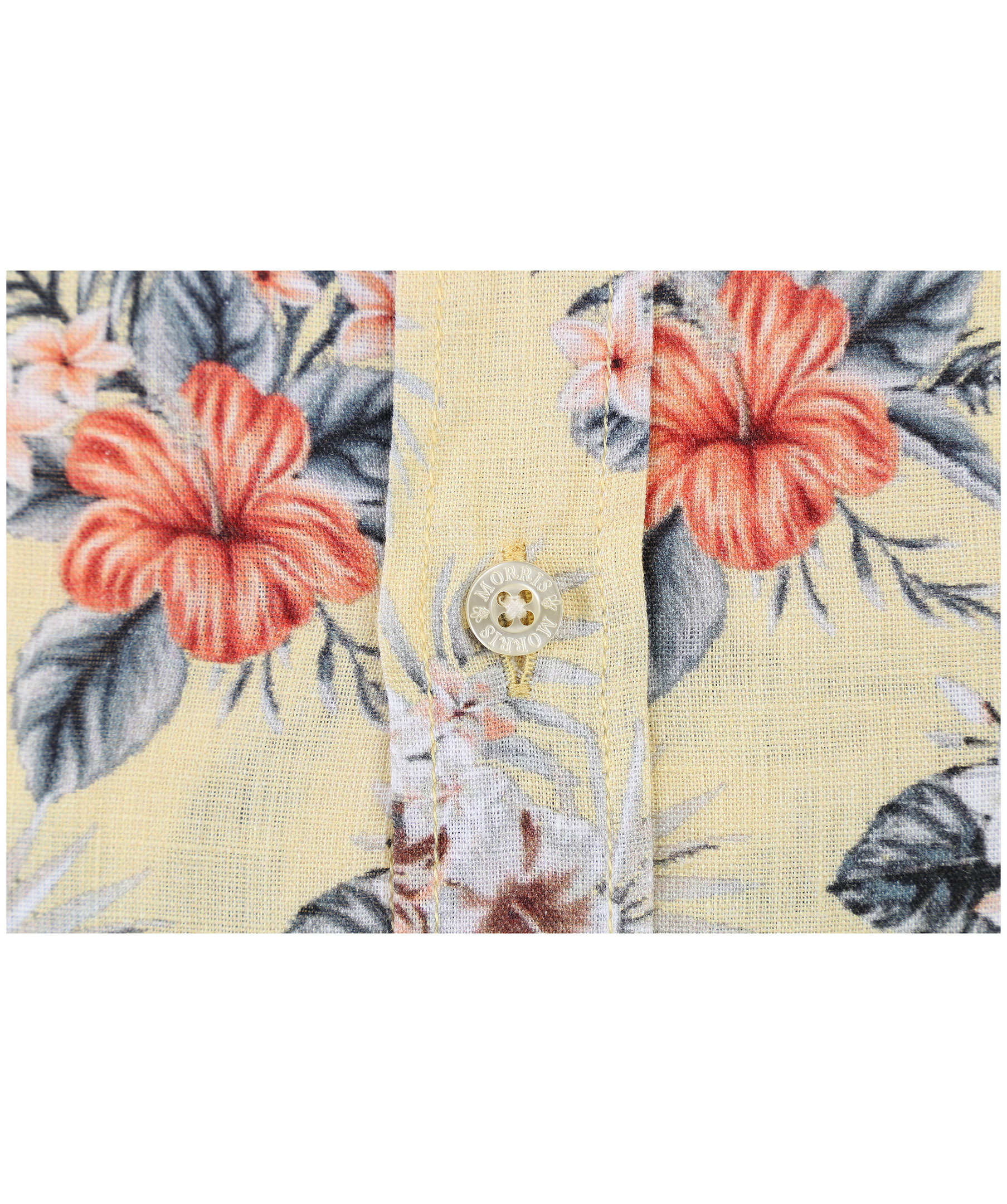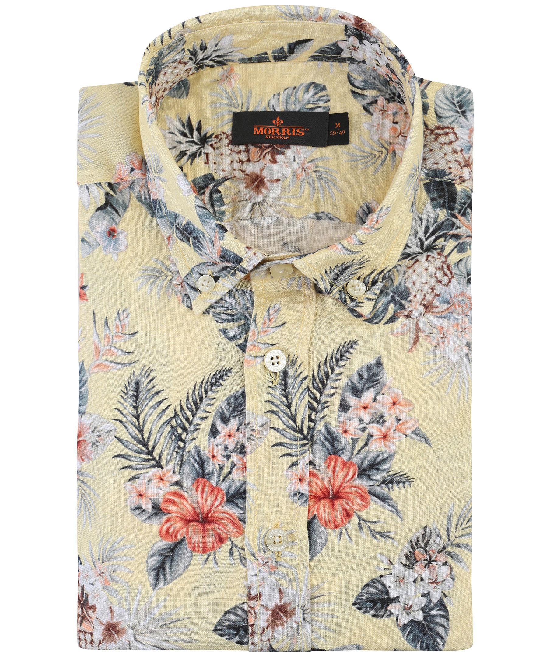 Gul, mönstrad linneskjorta från Morris. Normal passform, långa ärmar och button down krage. Broderad logotyp på vänster bröst.