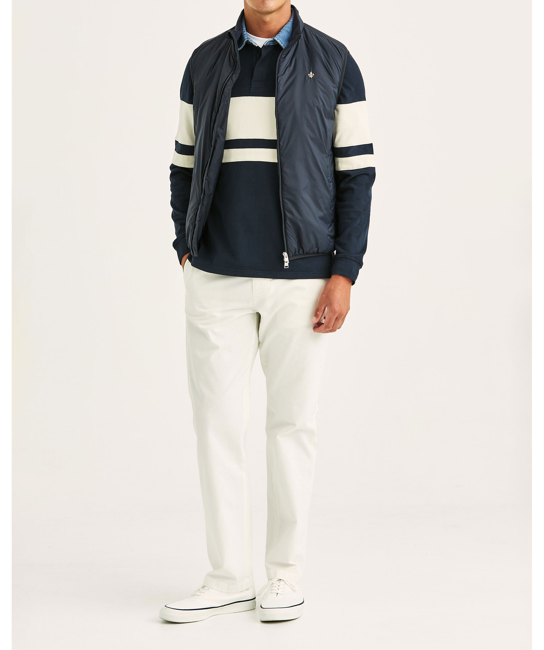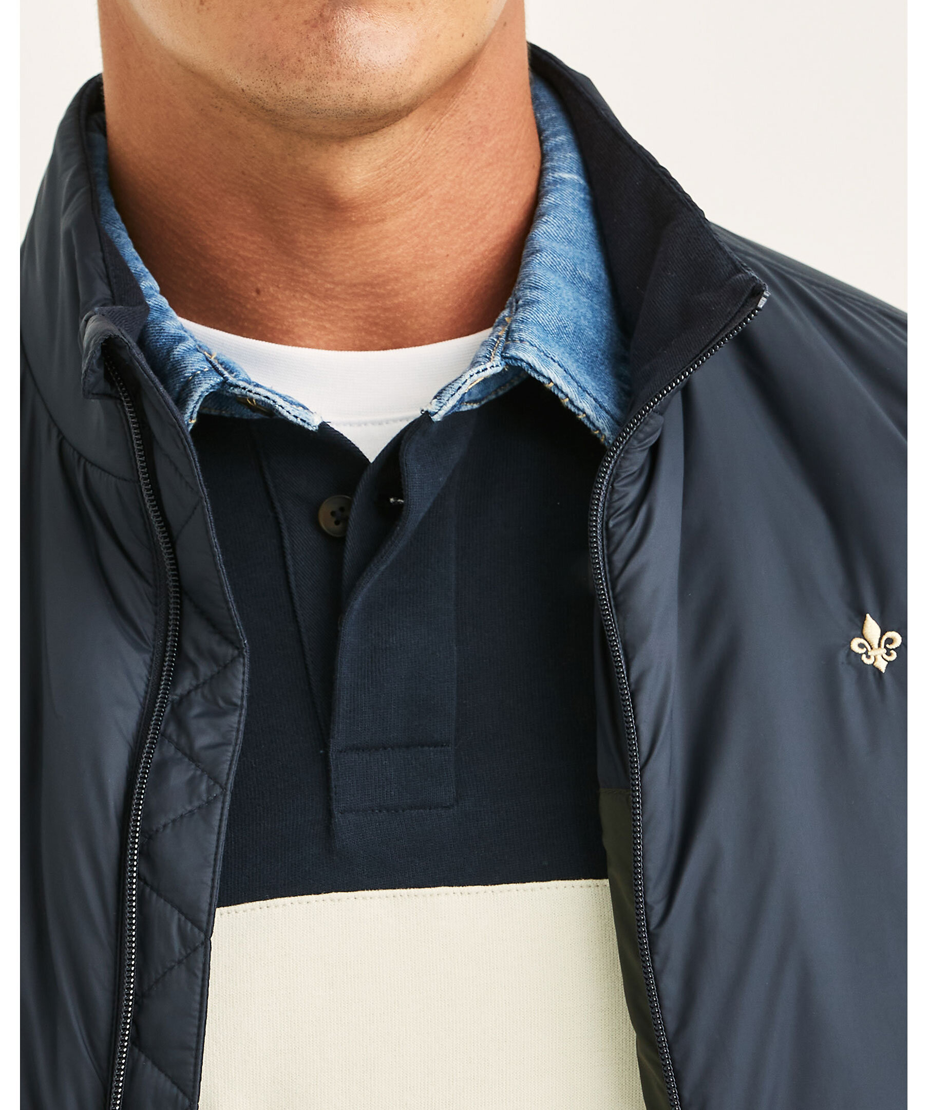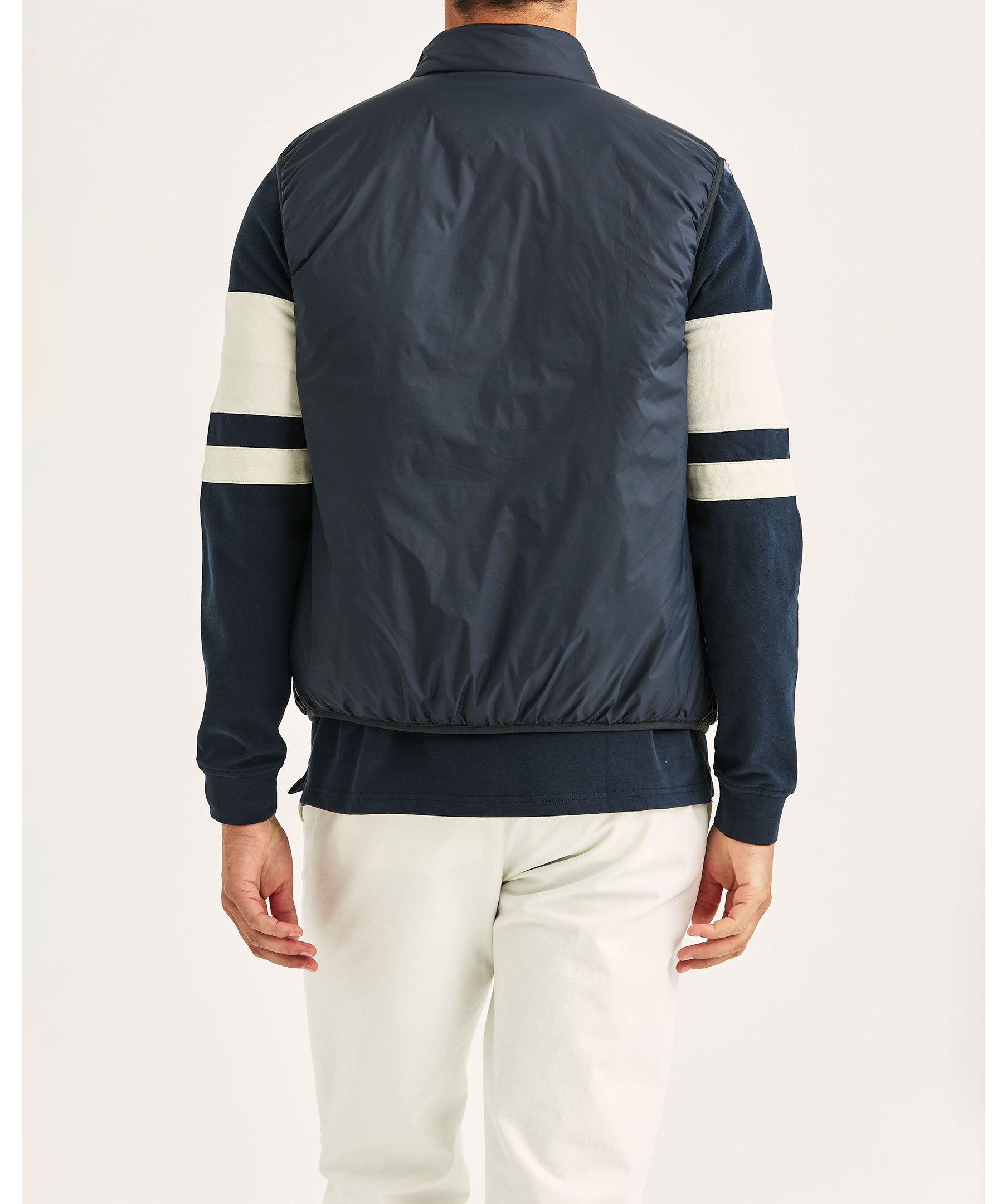 Bradley Padded Vest från Morris är en lätt vadderad väst i nylon som ger värme utan att skapa volym. Med normal passform, två sidfickor och en diskret broderad Morris-lilja på bröstet blir den både praktisk och stilren. Perfekt att bära över stickat eller under rocken när temperaturen sjunker, med tidlös elegans i varje detalj.