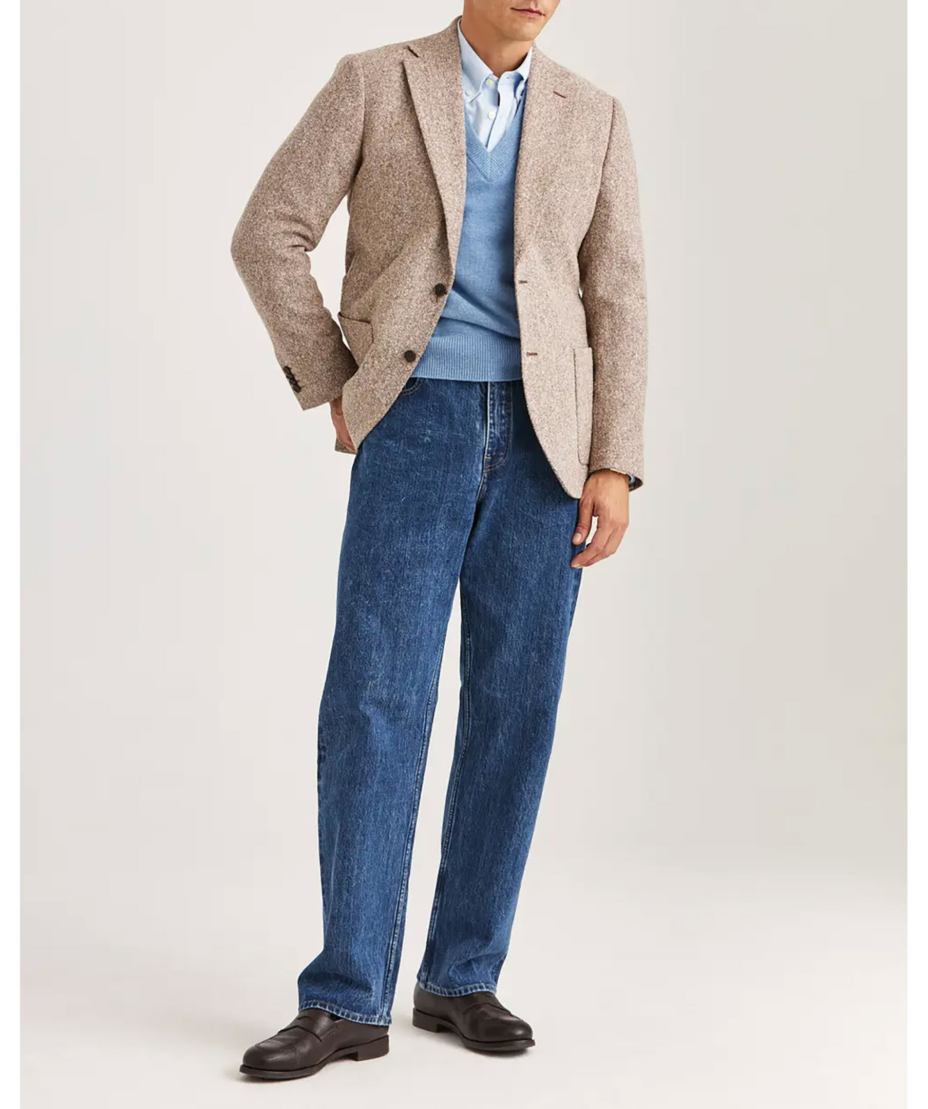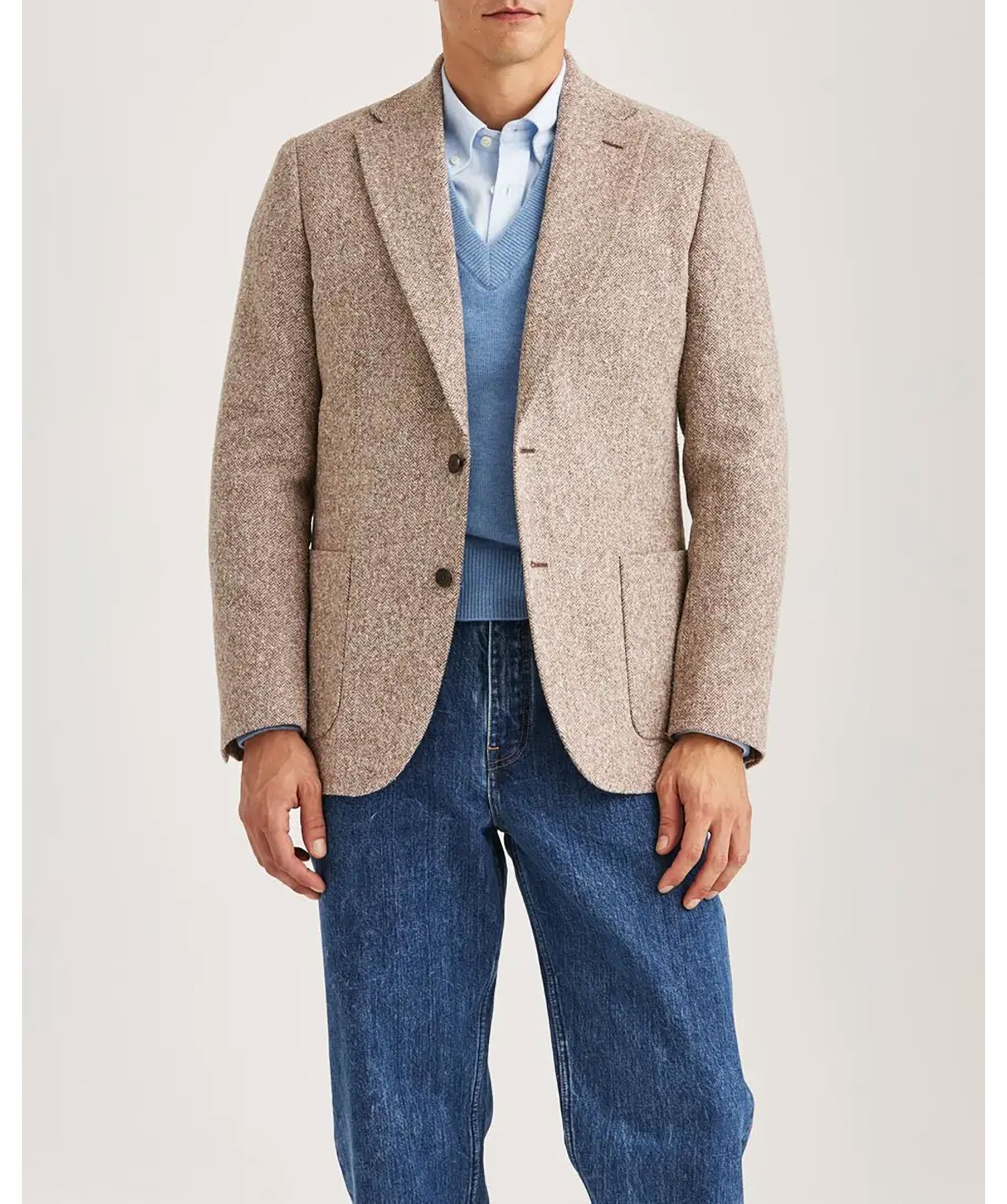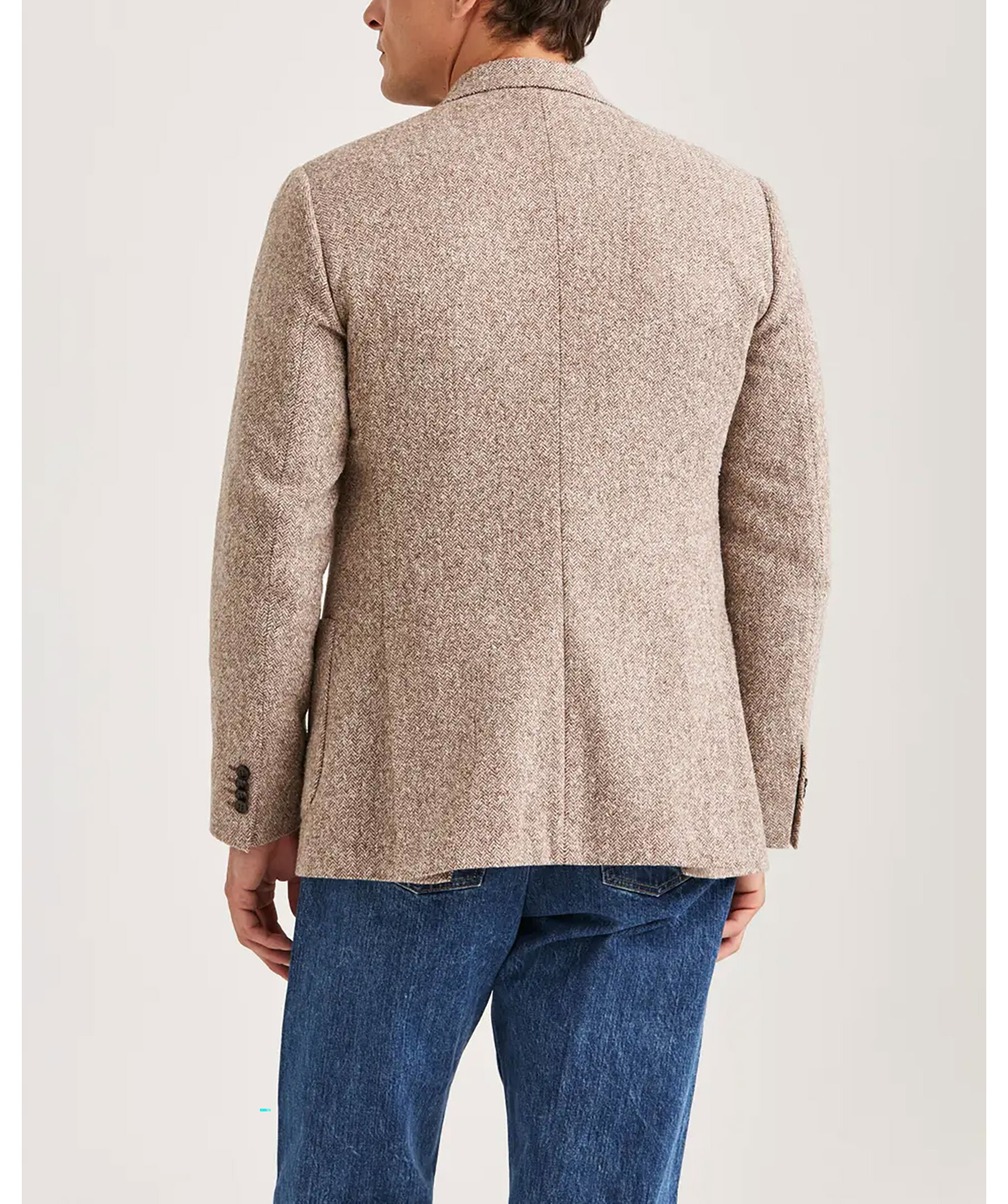 Brun fiskbensmönstrad kavaj från Morris. Det strukturerade tyget ger en unik yta och de påsydda fickorna ger ett modernare uttryck. Passar lika bra över en skjorta som att bäras för sig själv.