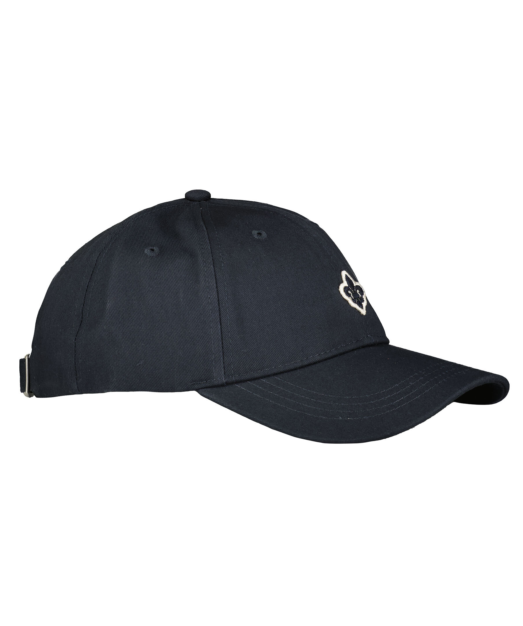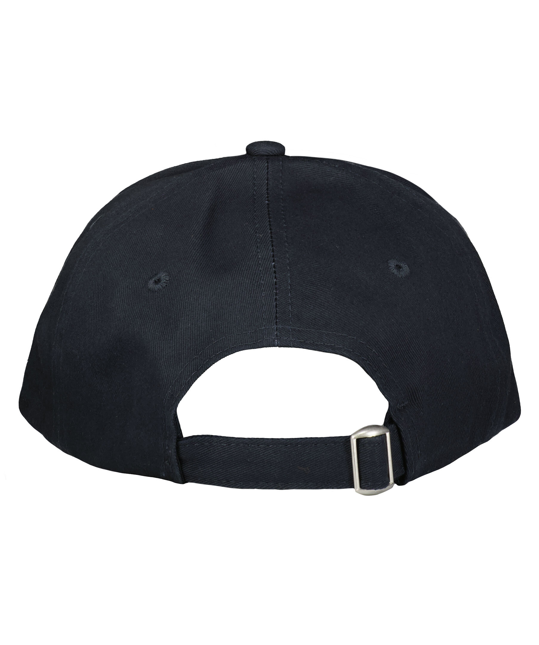 Marinblå keps från Morris. Tillverkad i 100% bomull. Broderad logotyp framtill och justerbar rem i tyg bak med spänne i metall. Lätt böjd skärm.