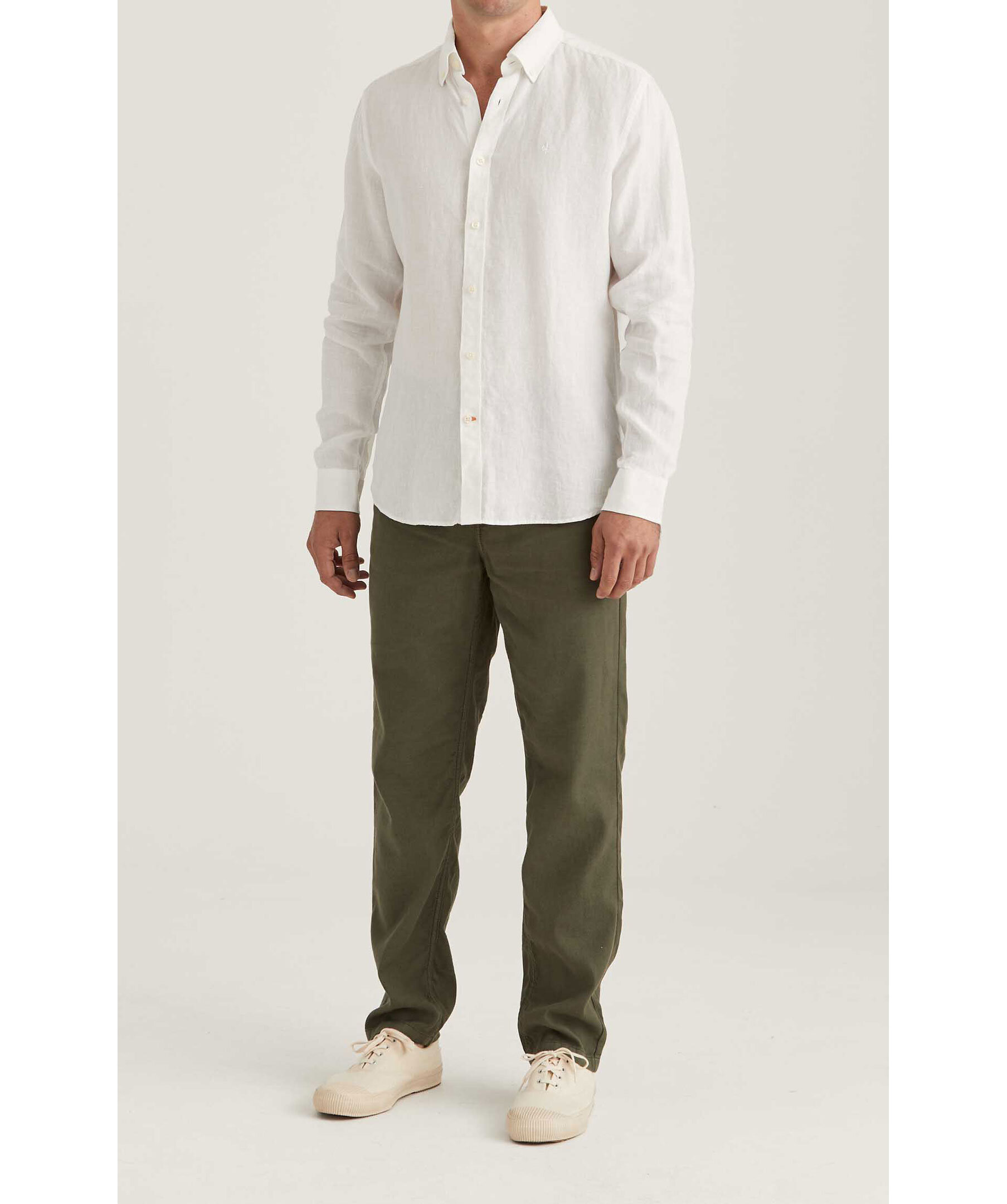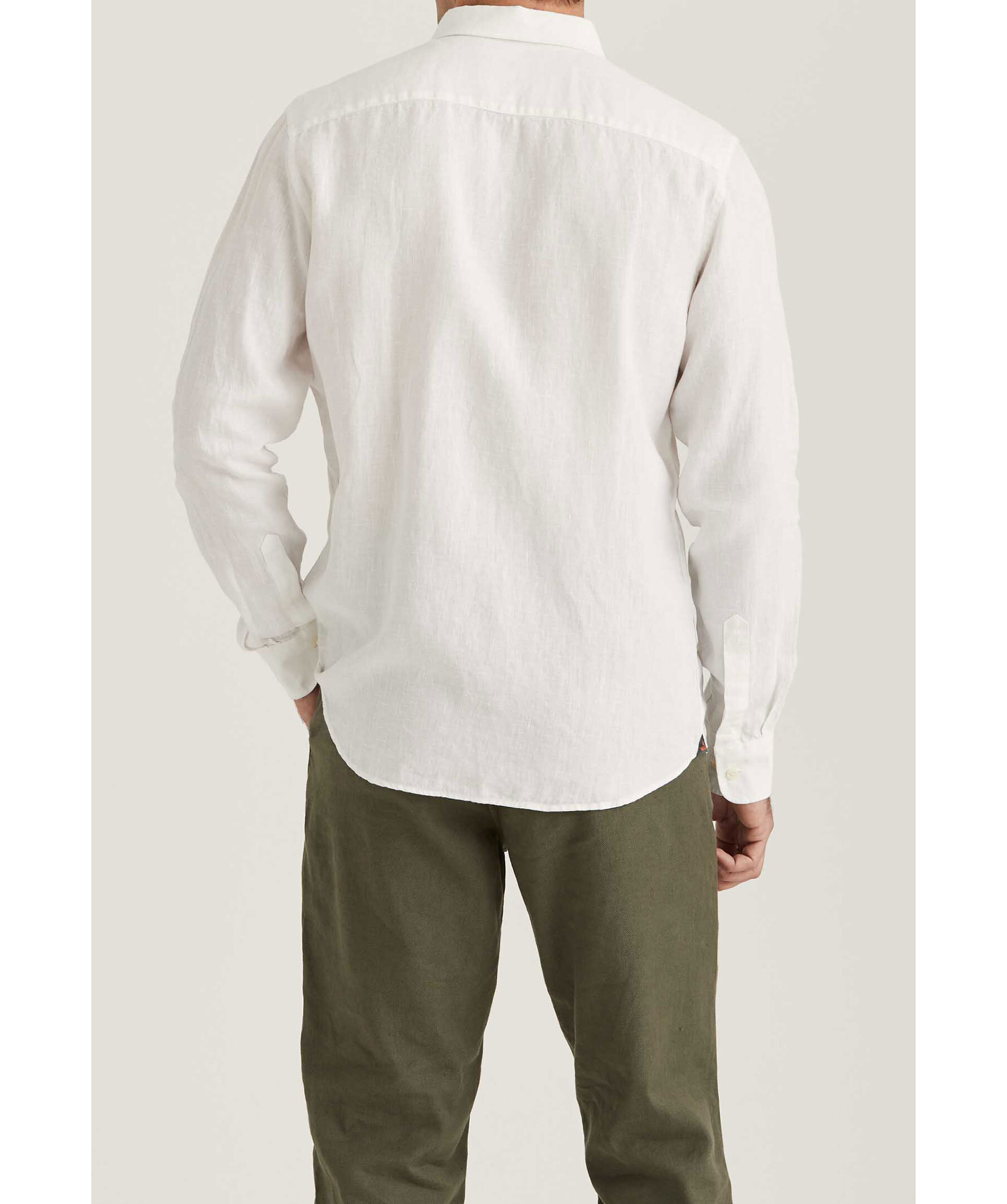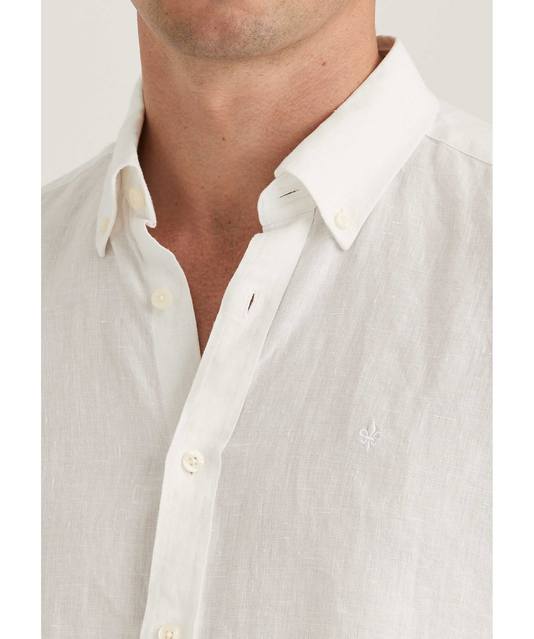Vit långärmad linneskjorta från Morris. Skjortan är gjord i 100% linne och har en button-down krage. Broderad lilja på bröstet. Enkel manschett.