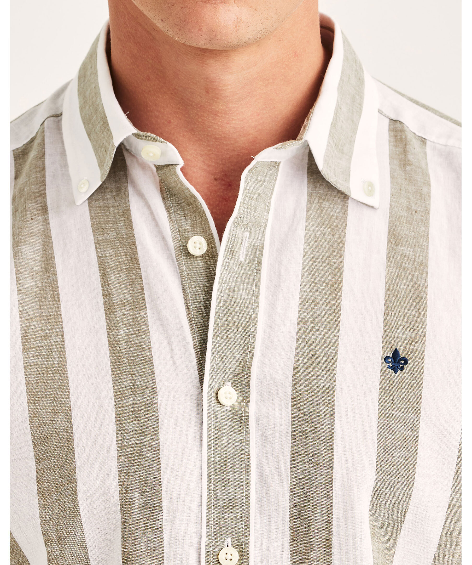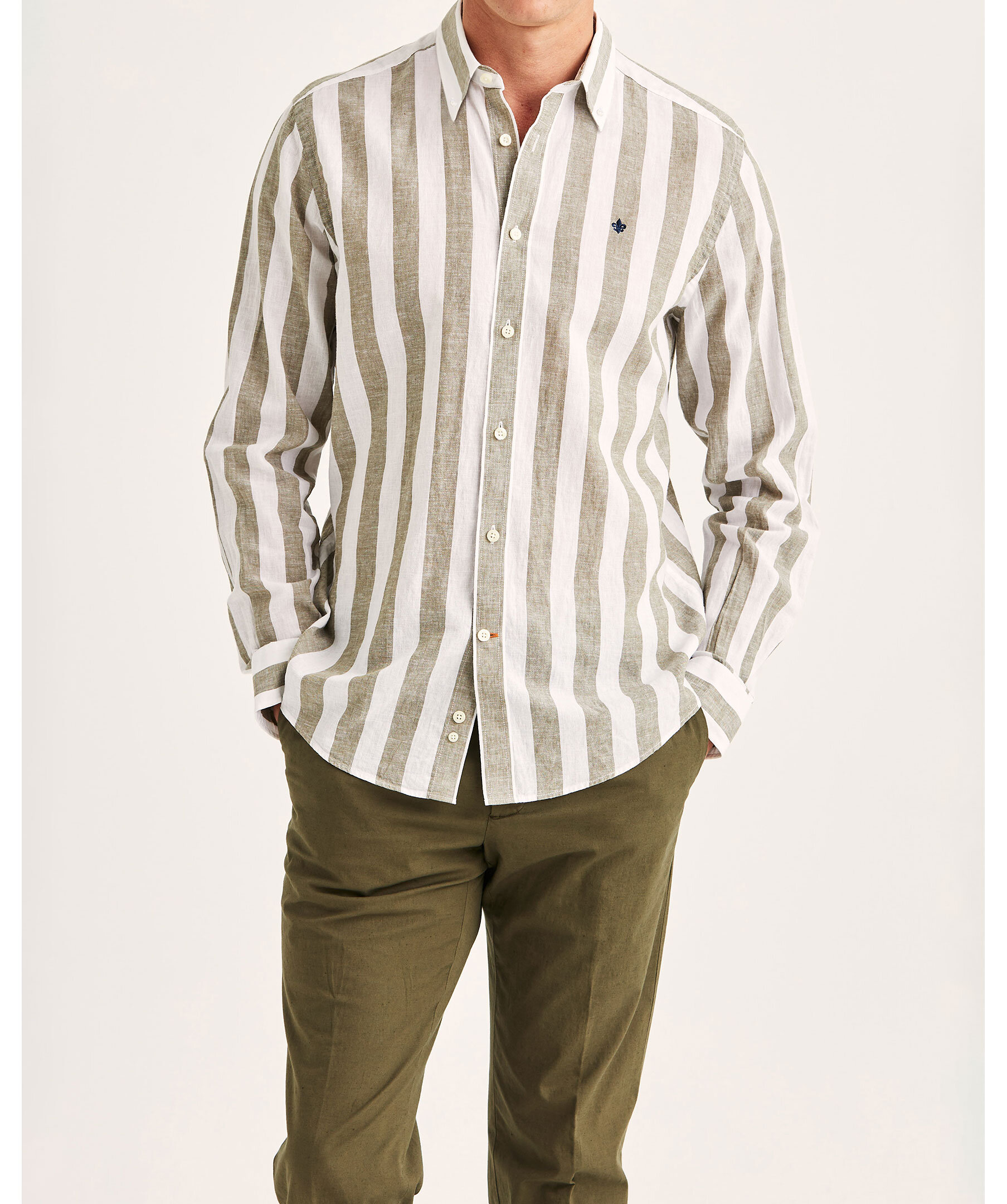Randig skjorta från Morris i linneblandning. Skjortan har en klassisk passform och button down-krage. Den broderade Morris-liljan tillför en elegant signatur.