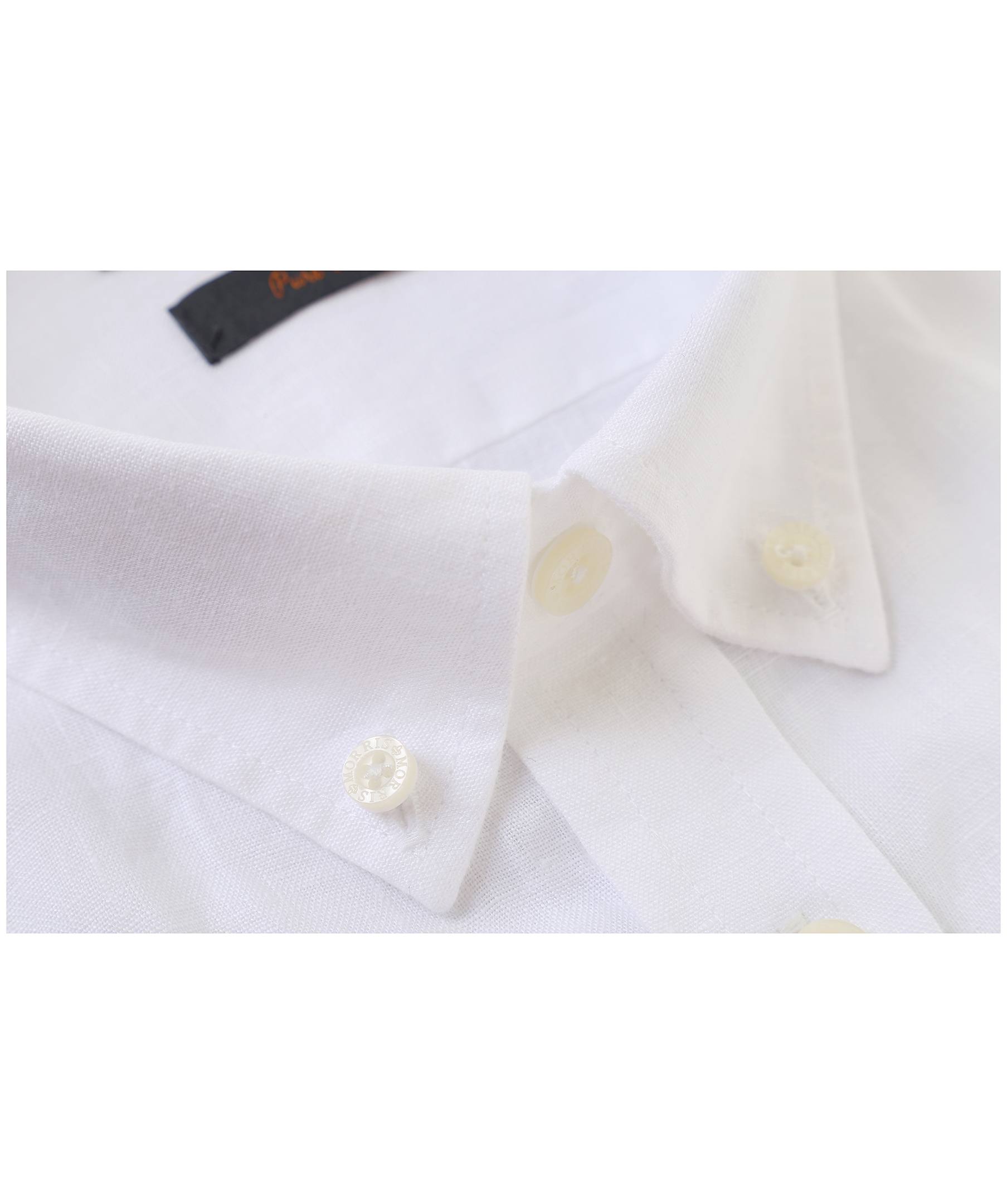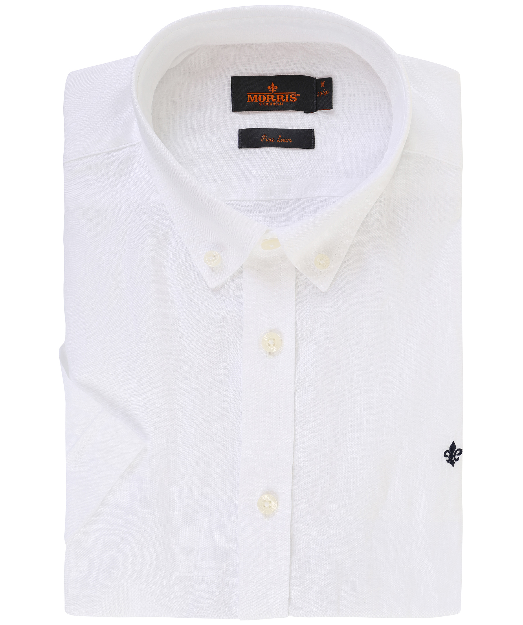Vit, kortärmad linneskjorta från Morris i normal passform. Broderad logotyp på bröstet, button down krage.