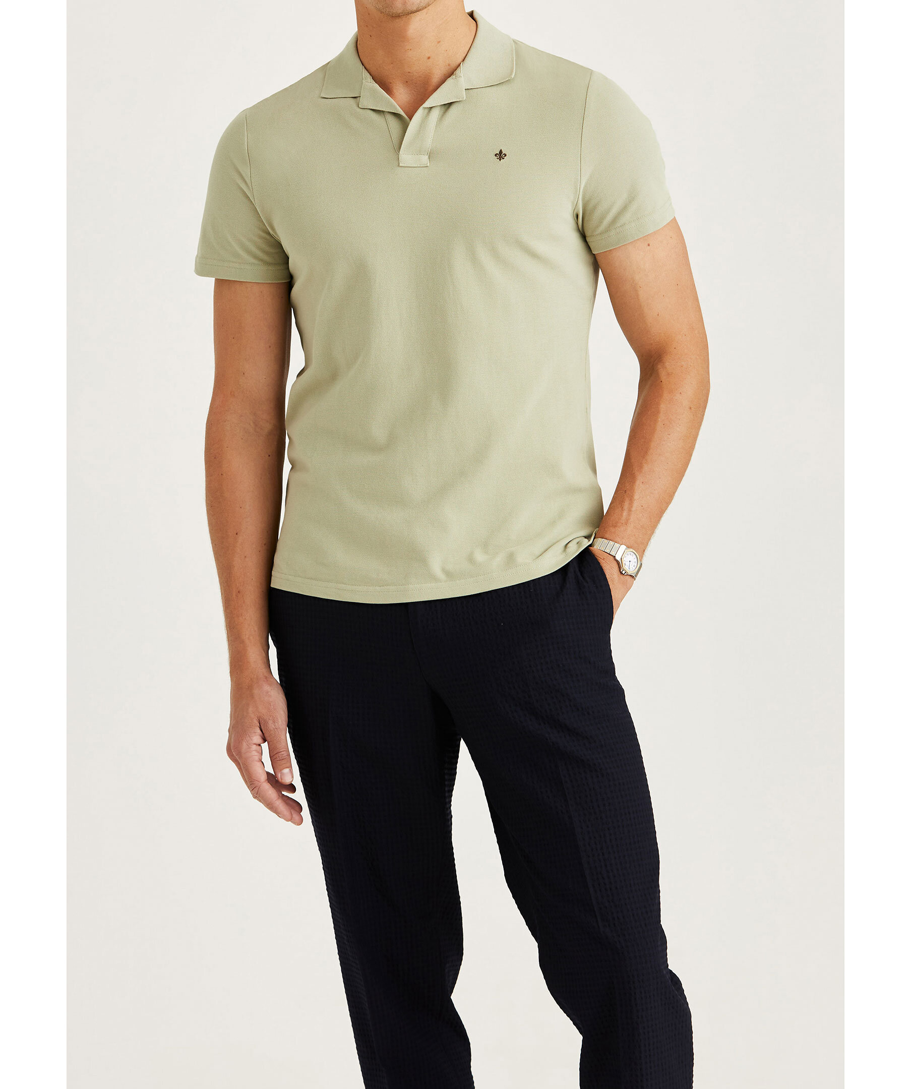 Ljusgrön, kortärmad pikétröja från Morris. Pikén har en broderad logotyp på bröstet och är tillverkad i bomull.