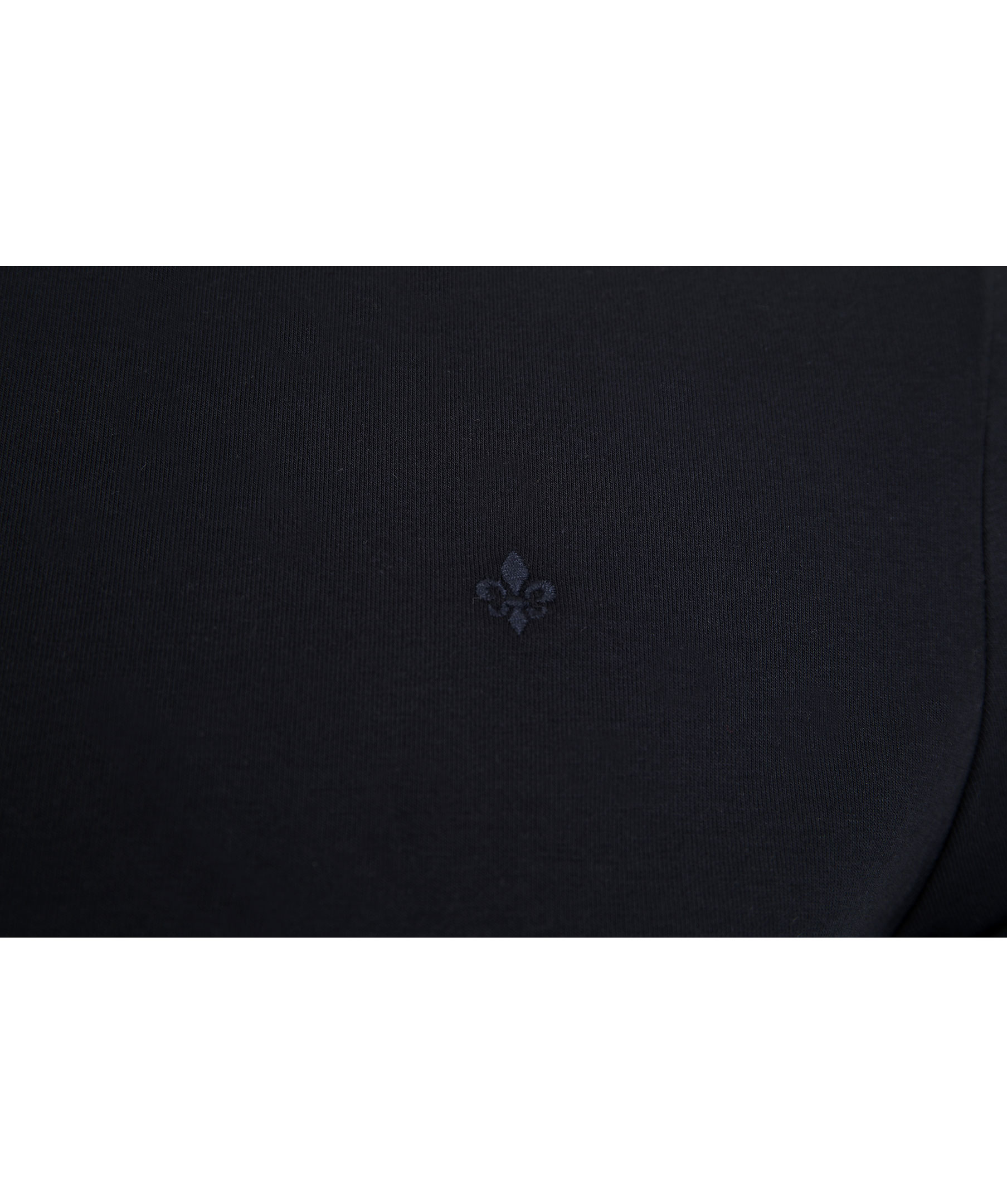Marinblå t-shirt från Morris. Tillverkad i 100% bomull. Liten, broderad lilja på sidan av bröstet, normal passform. Rundad halsringning.