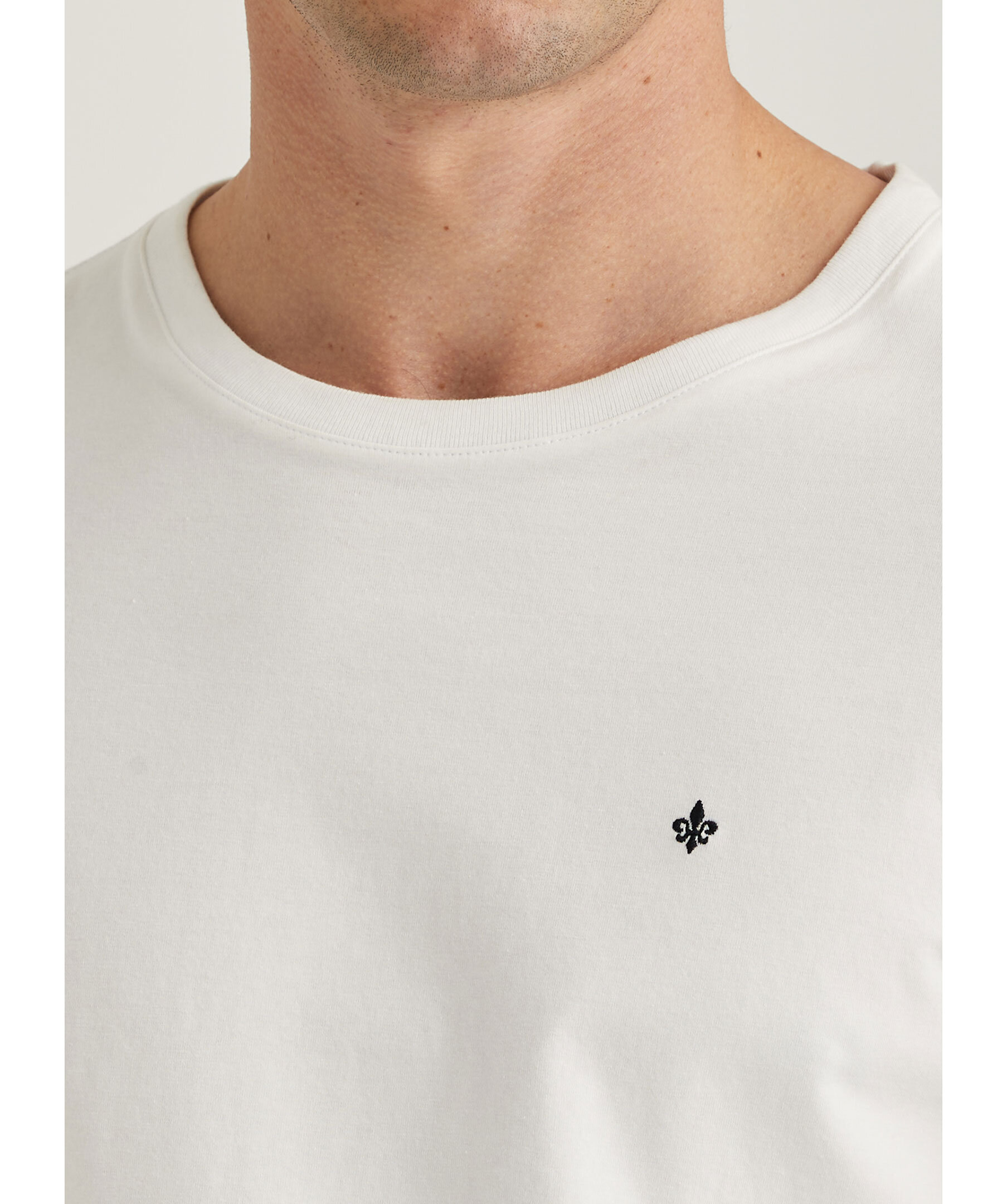Vit t-shirt från Morris med smal passform. Liten, broderad lilja på sidan av bröstet, normal passform. Rundad, ribbad halsringning. Tillverkad i 100% bomull.