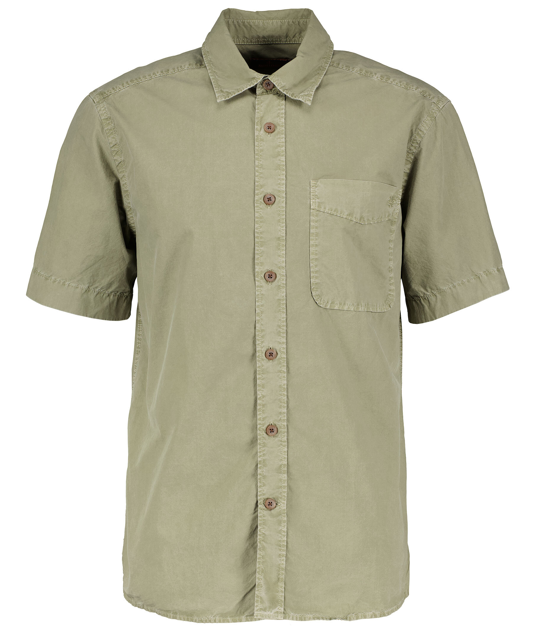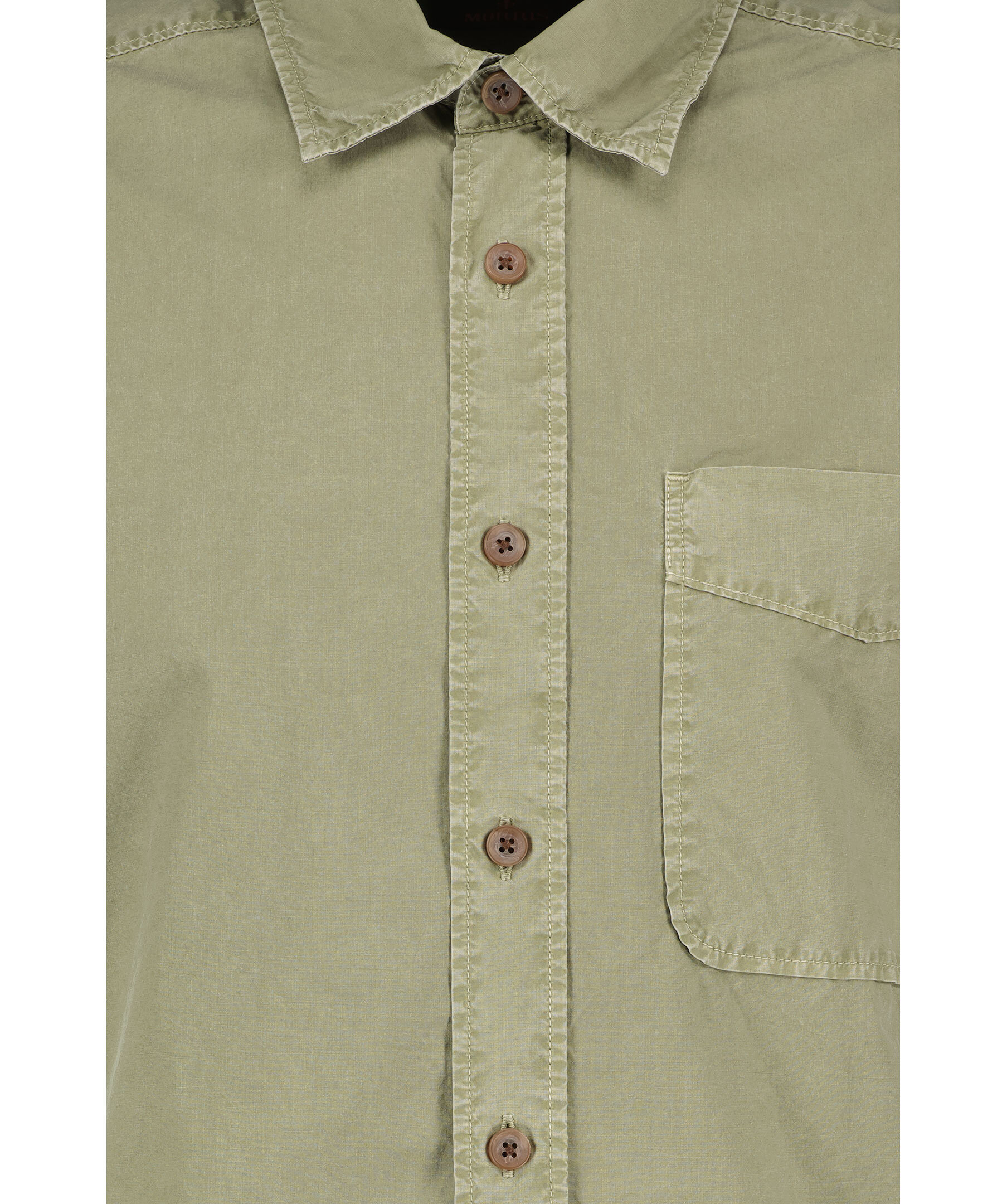 Olivgrön, kortärmad skjorta från Morris. Tillverkad i bomull med solblekt look. Naturfärgade knappar fram och en bröstficka med broderad logotyp i ton-i-ton. Ögla i nacken för upphängning på krok.